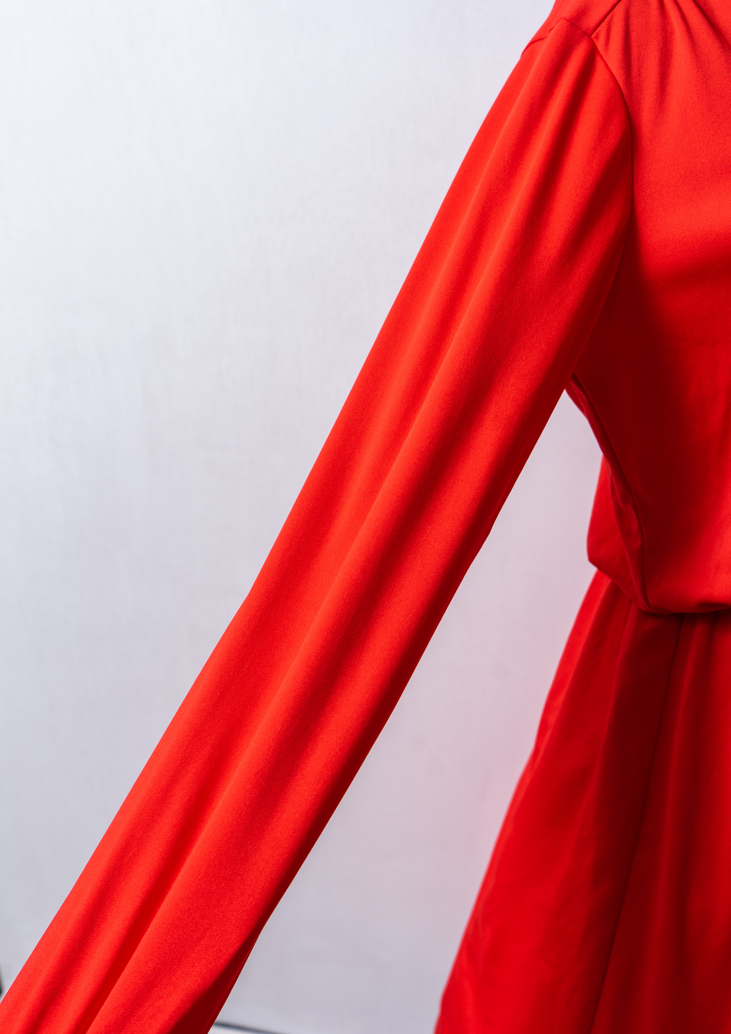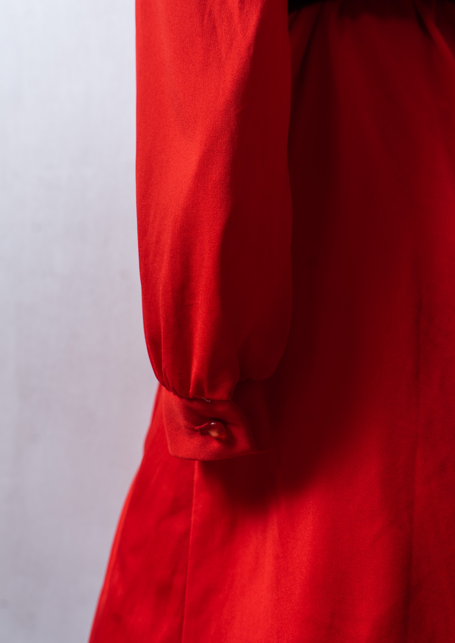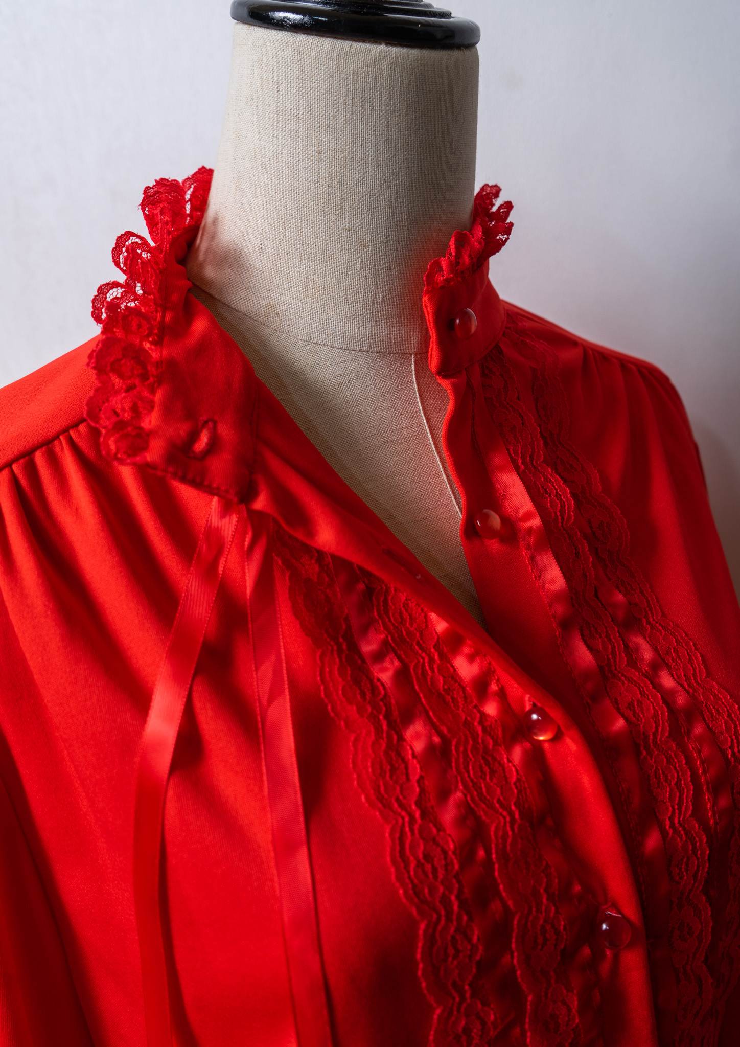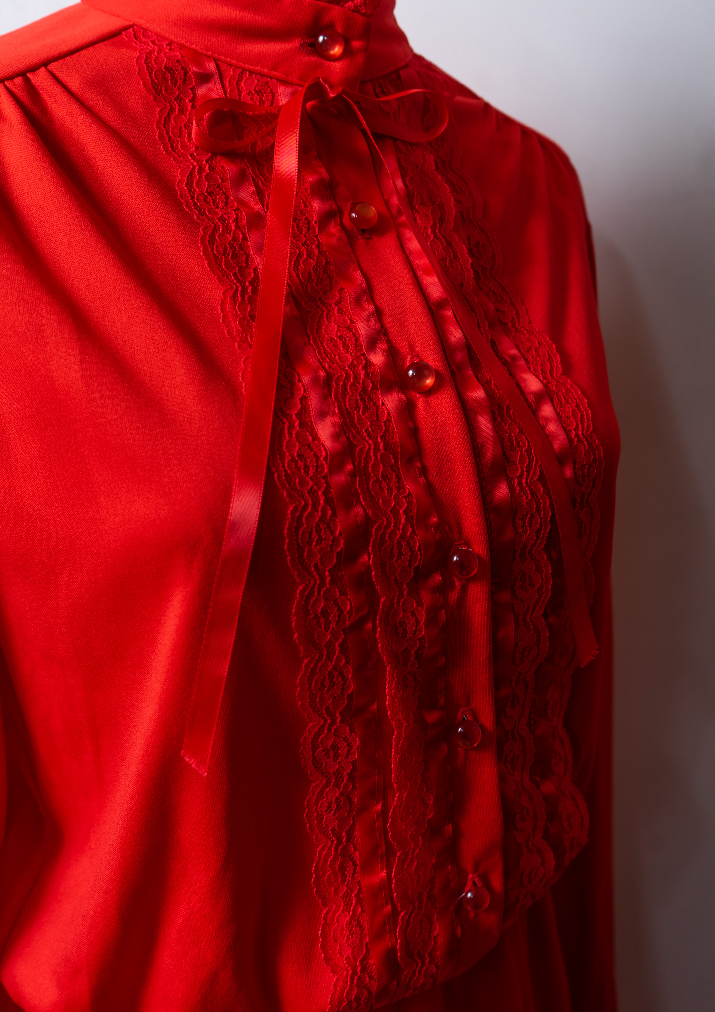 70's USA JC Penney Ribbon × Frill Design Red Dress