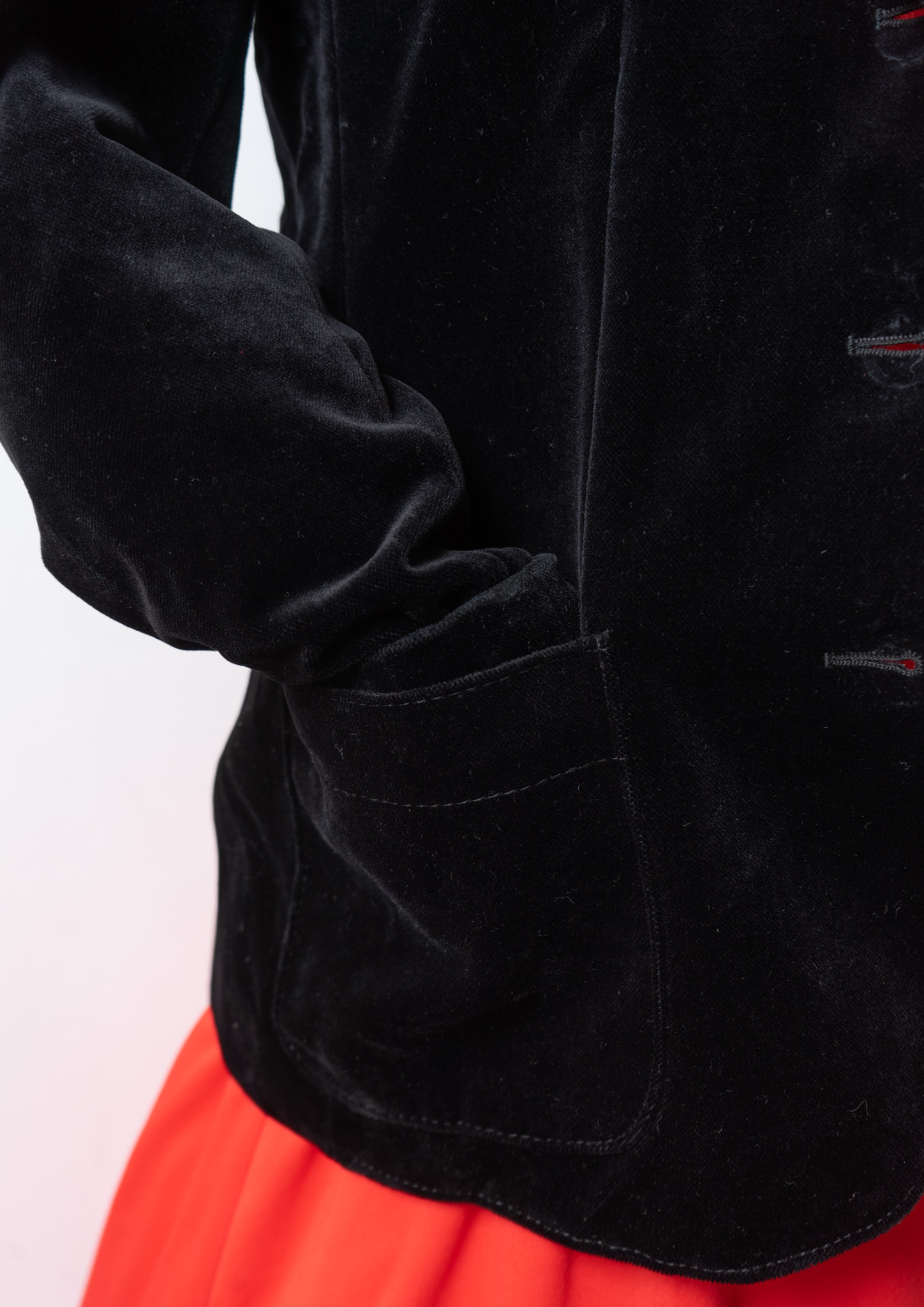 80's Double Pocket Design Point Leopard Pattern Black Wool Jacket
