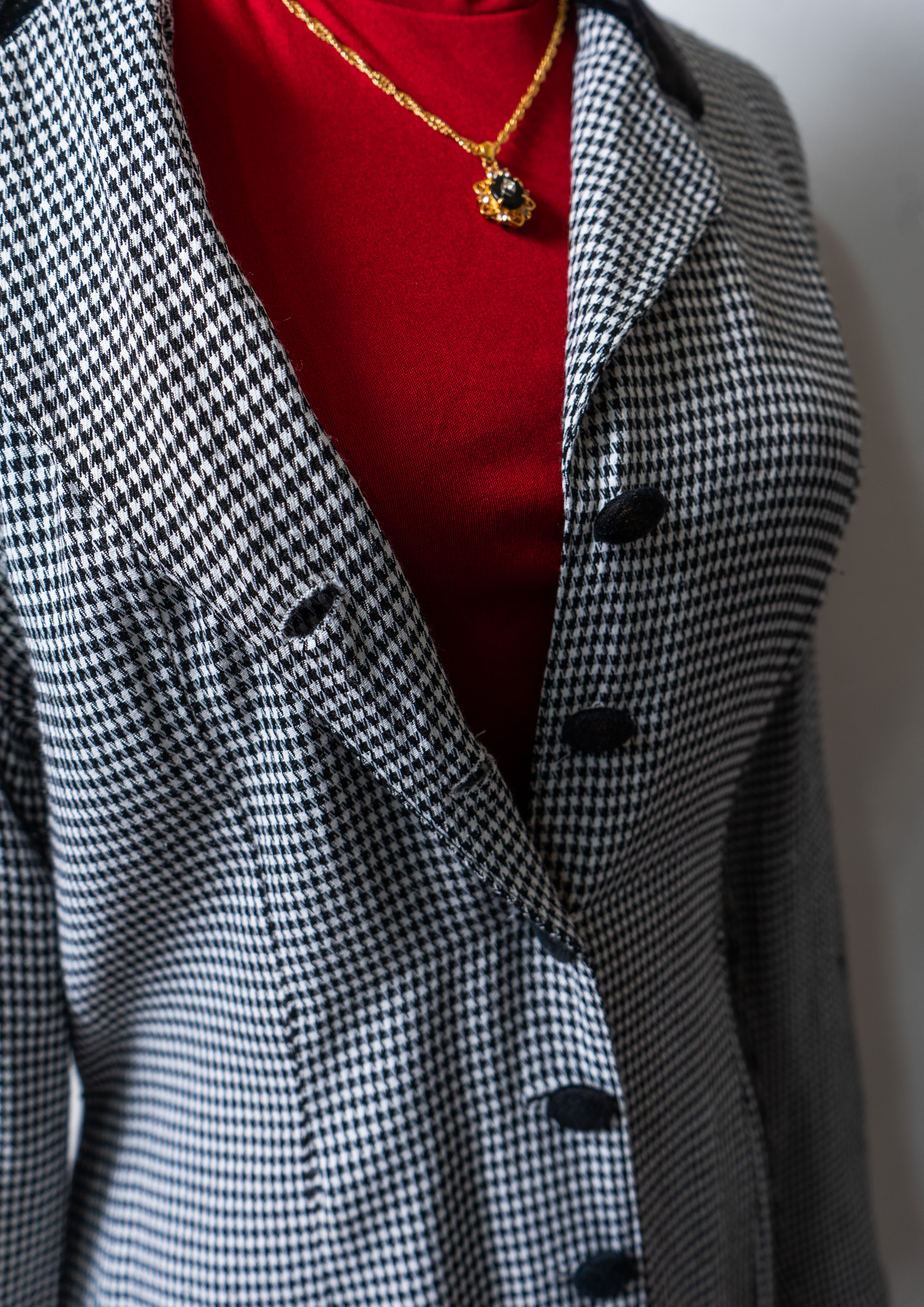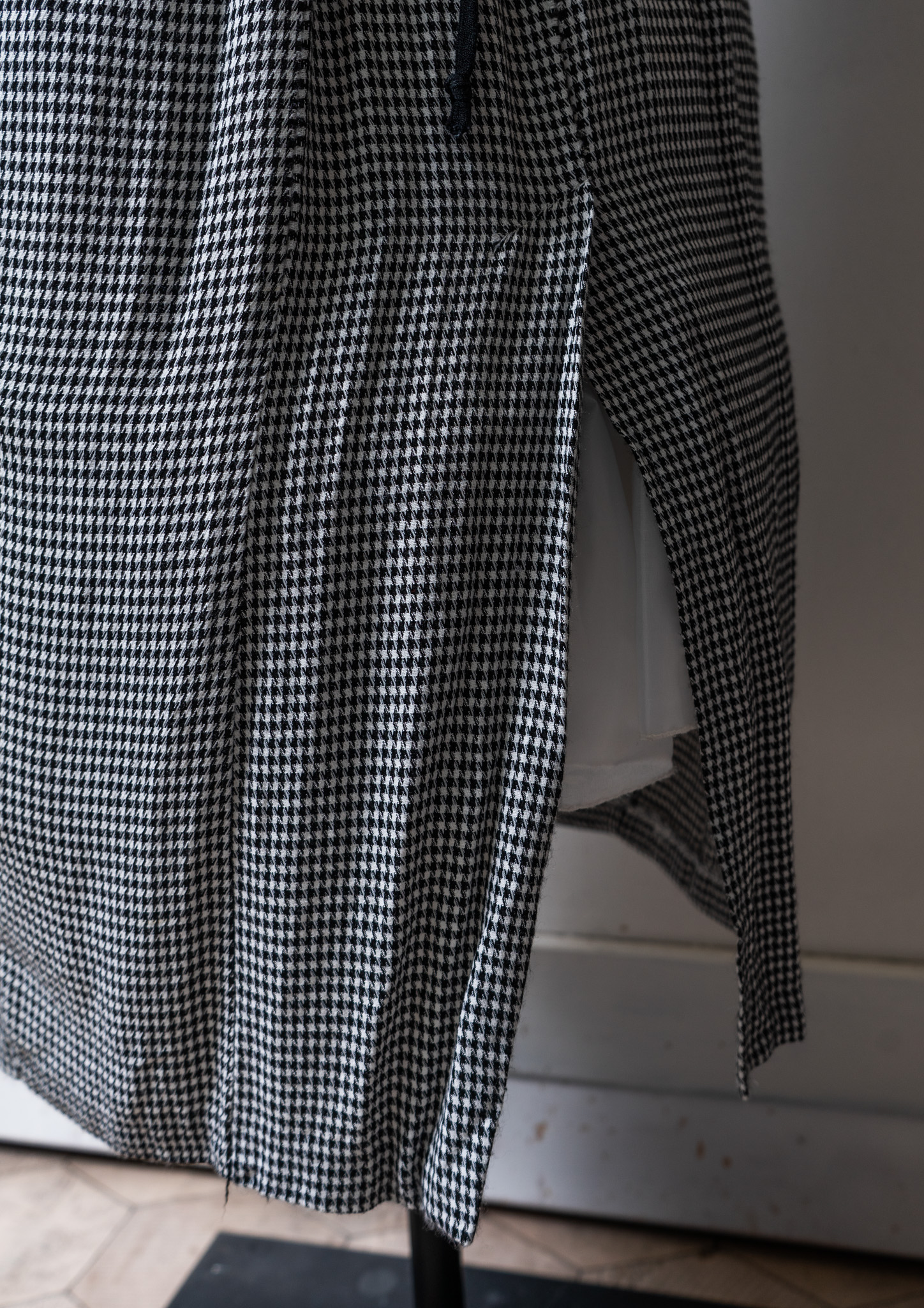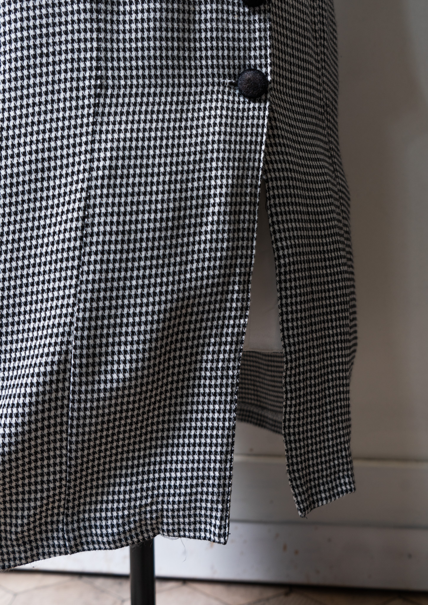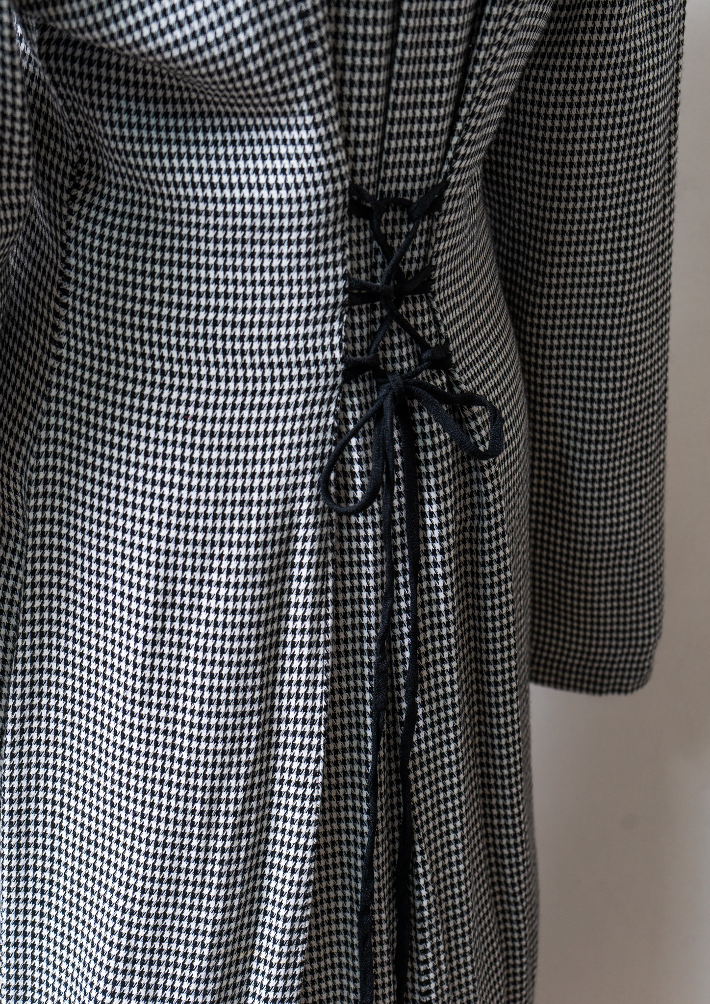 80's USA Houndstooth Pattern Velour Collar × Button Dress