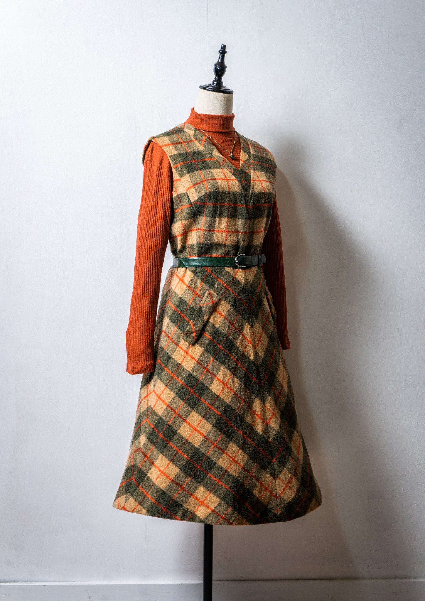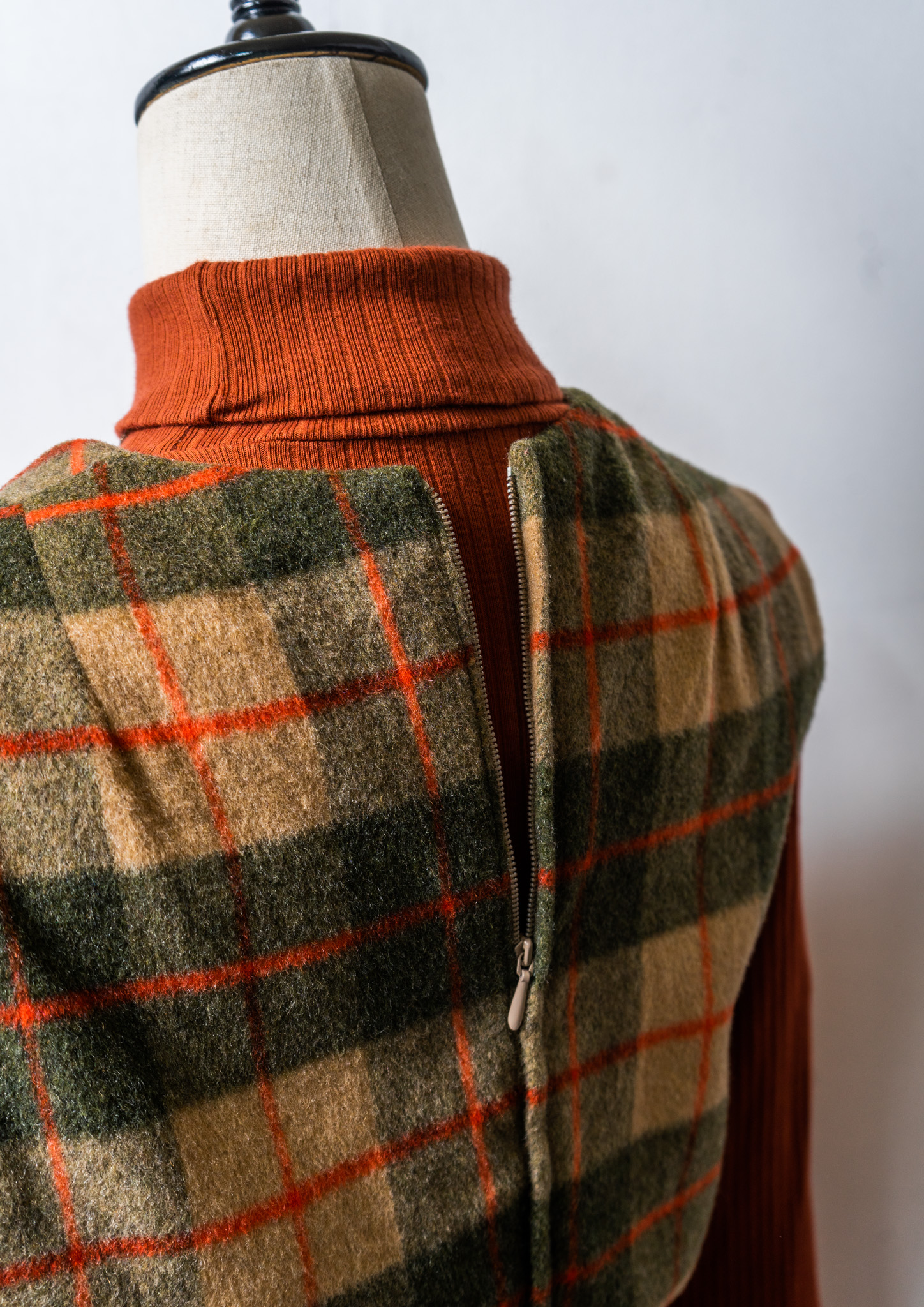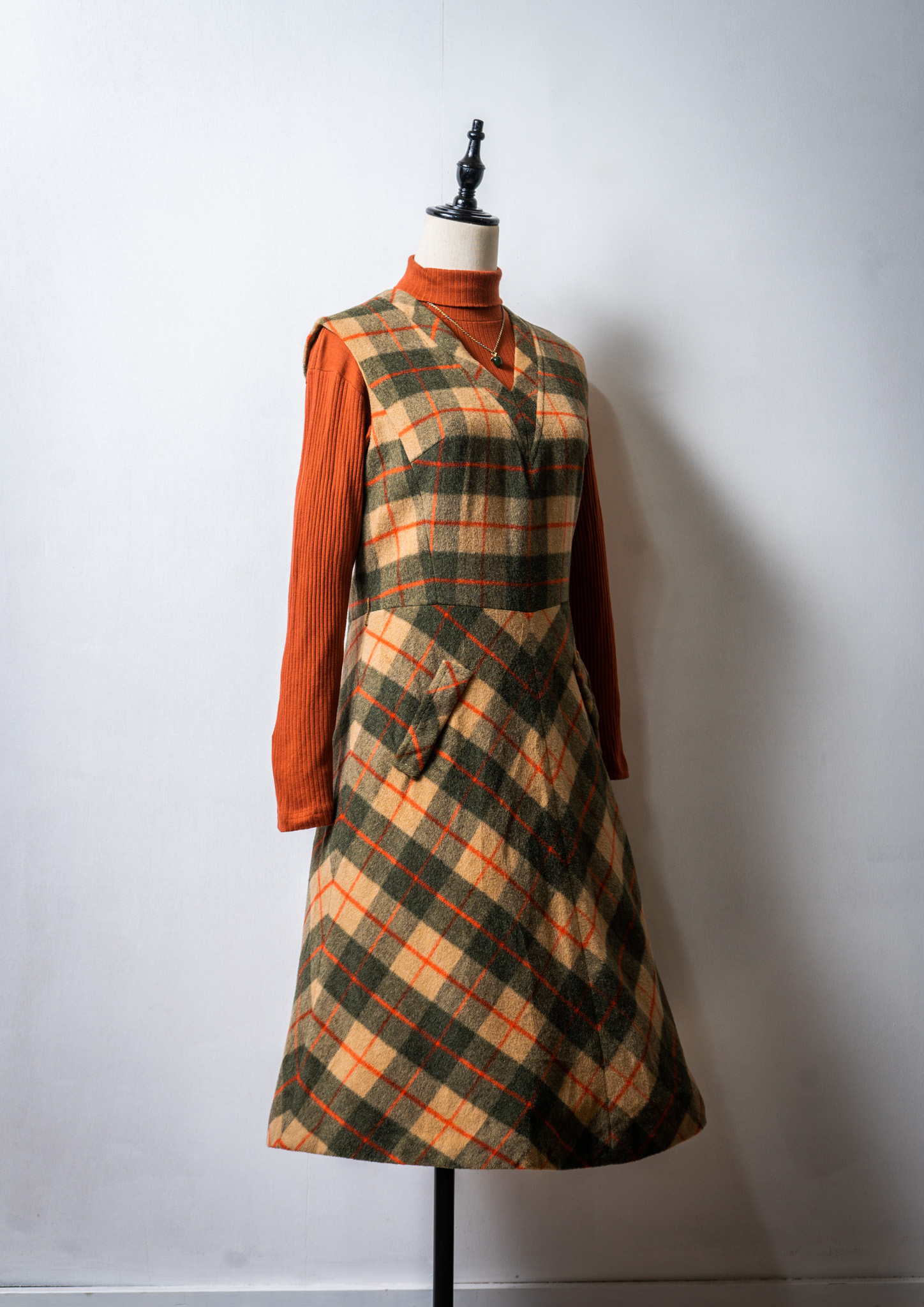 70's Check Pattern Wool Sleeveless Dress