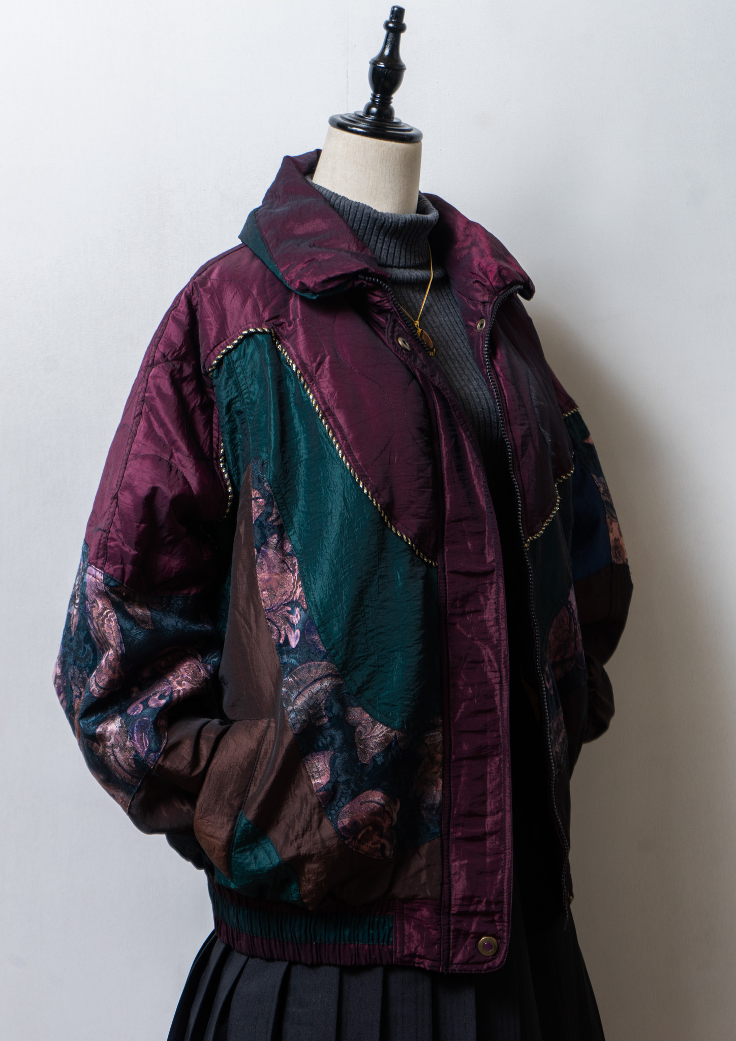 Leaf Embroidery × Double Pocket Design Point Corduroy Pattern Light Purple Boa Jacket