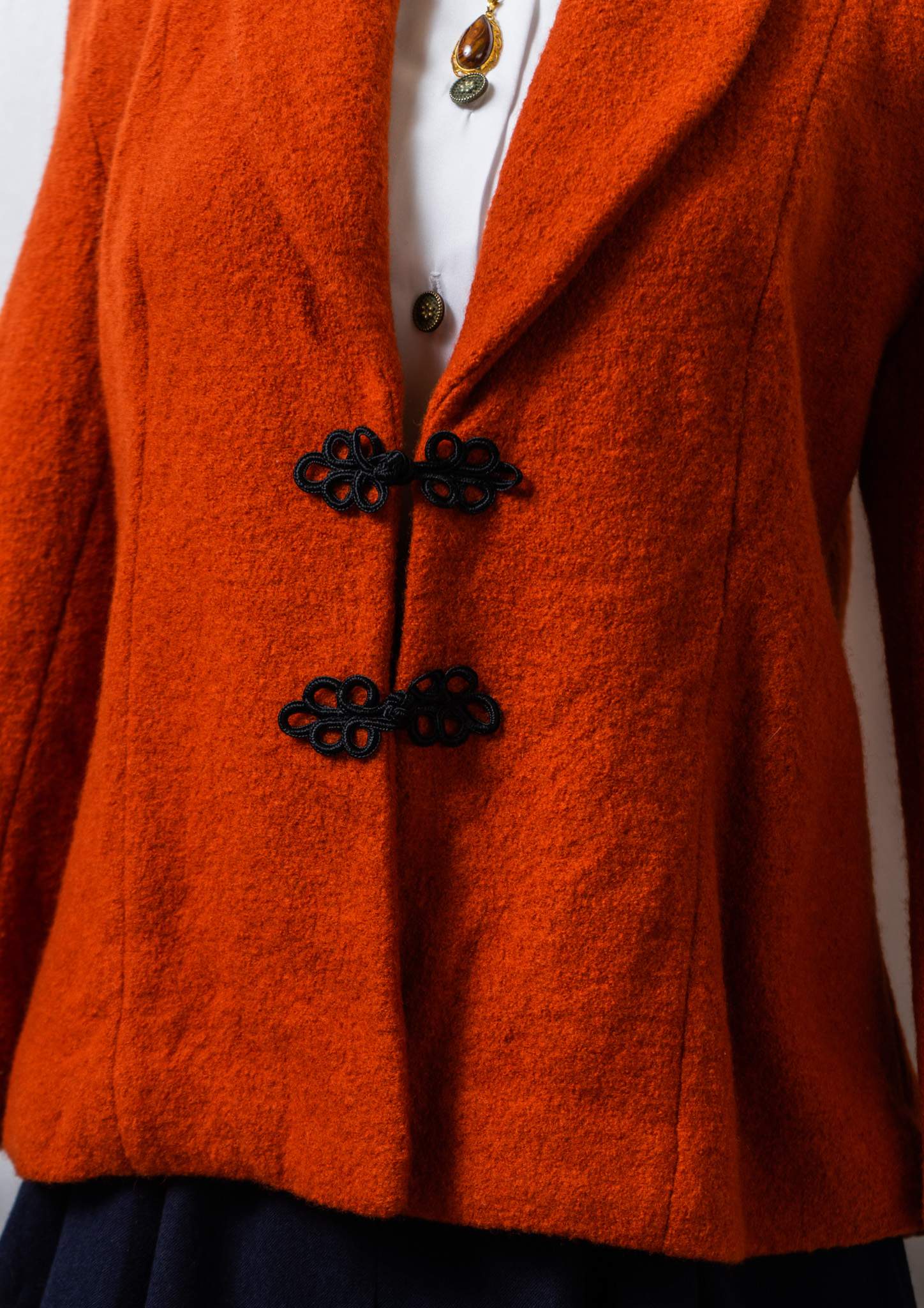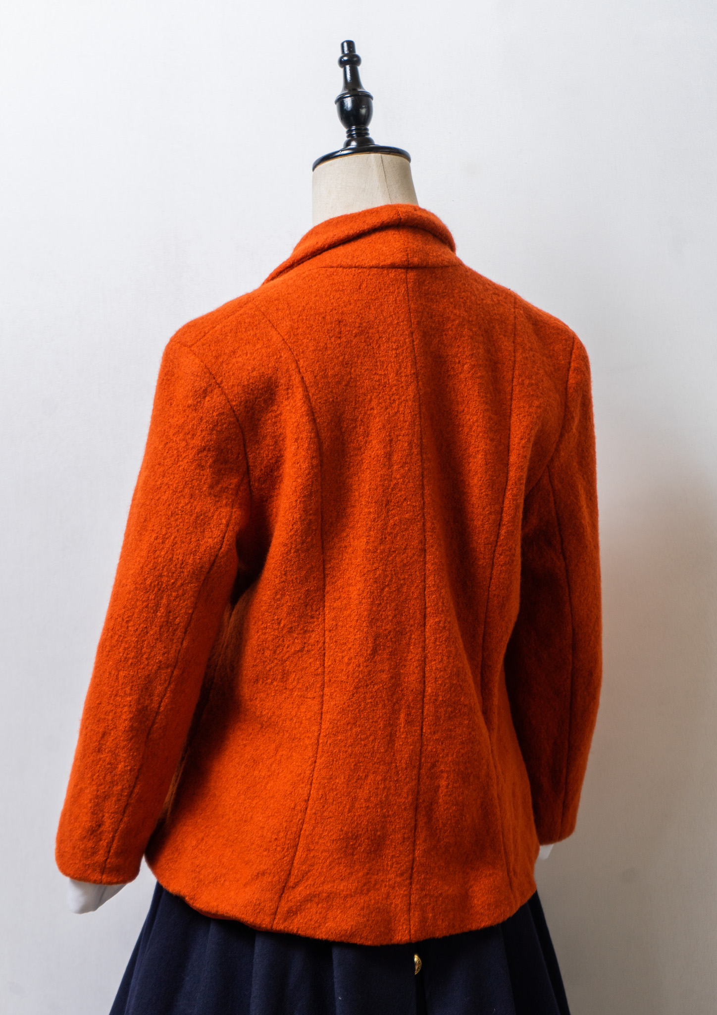 80's Double Pocket Design Point Leopard Pattern Black Wool Jacket