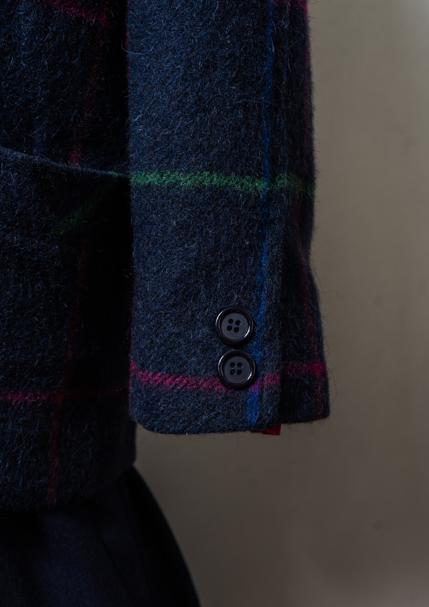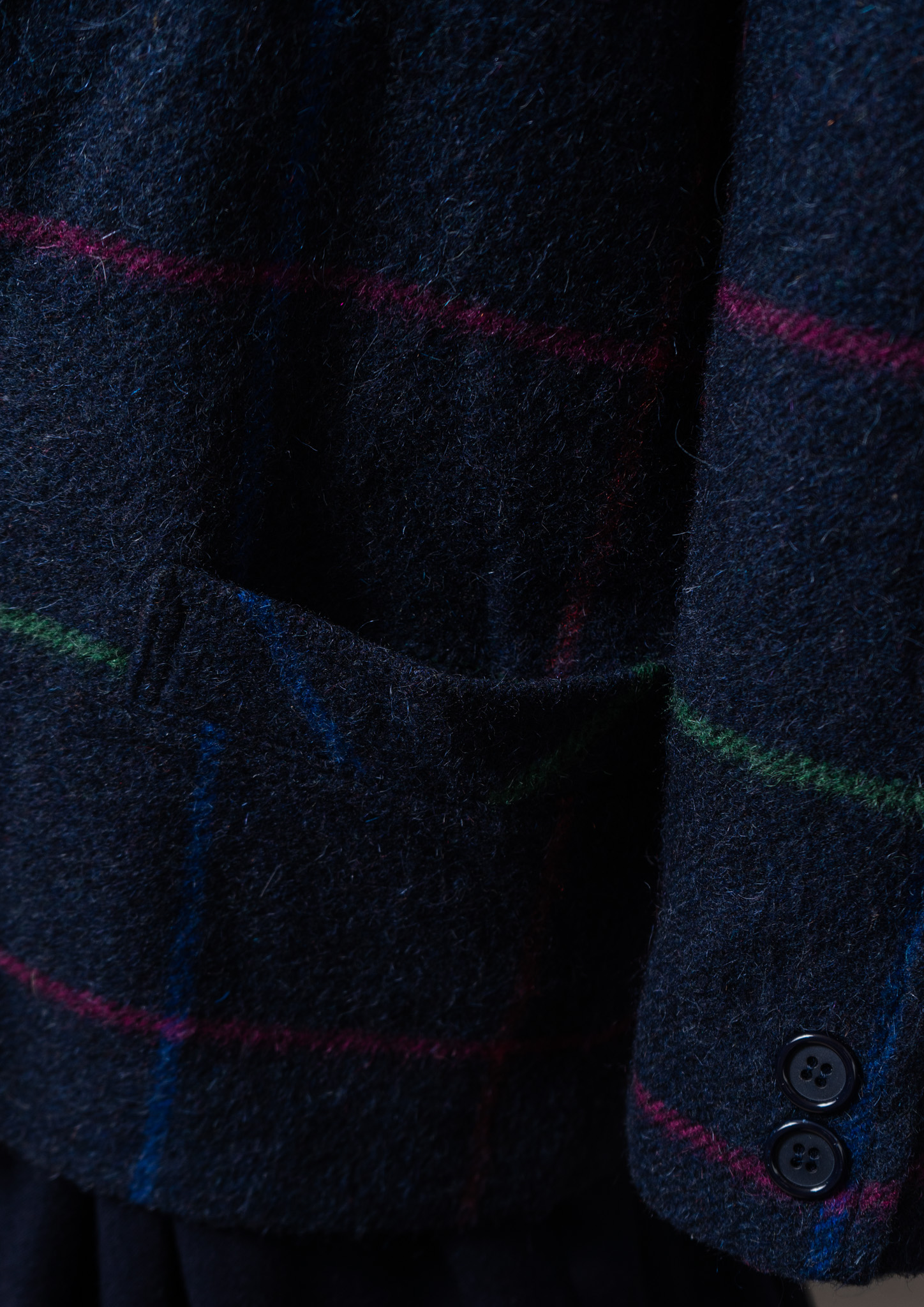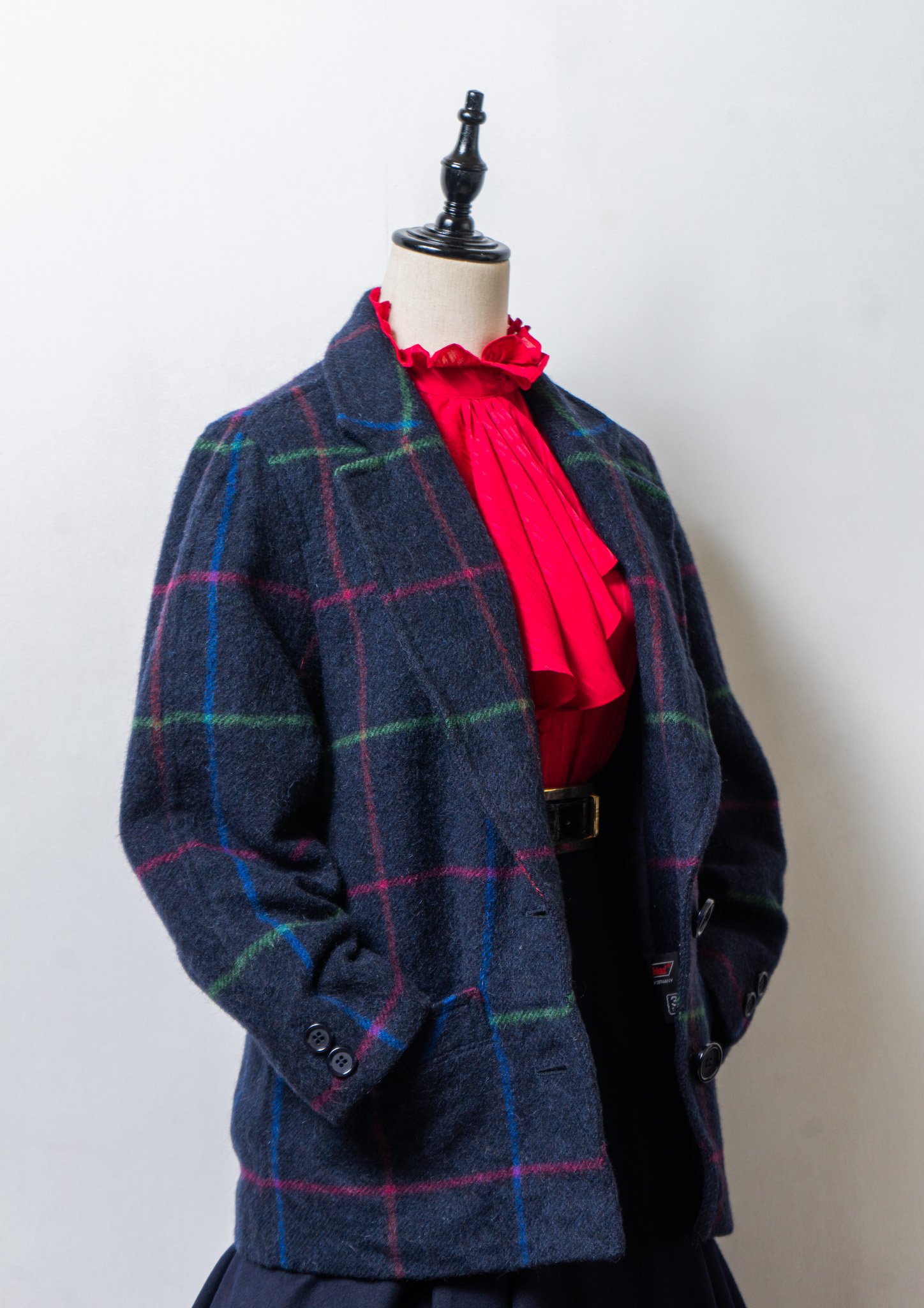 80~90's W-Germany Colorful Check Pattern Navy Tailored jacket