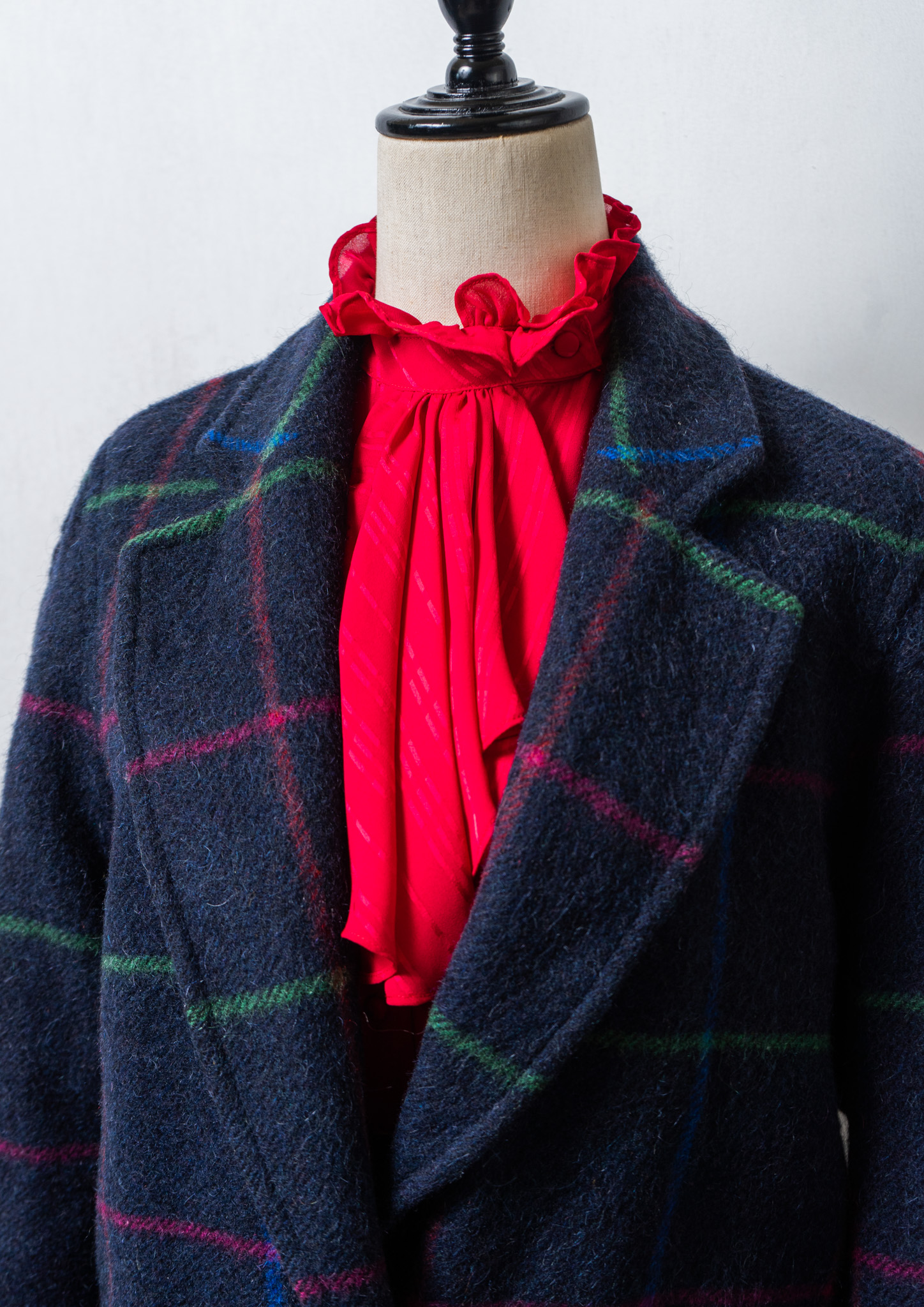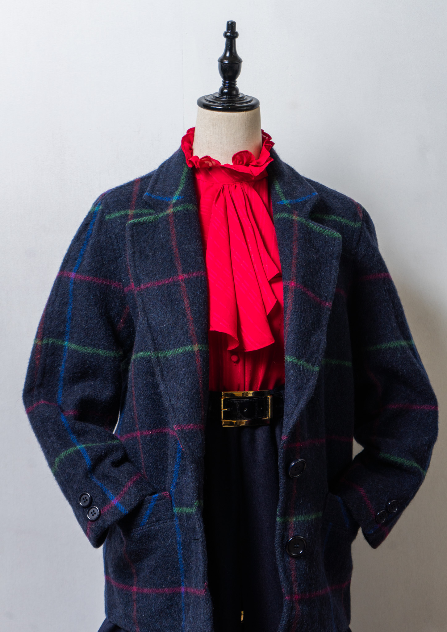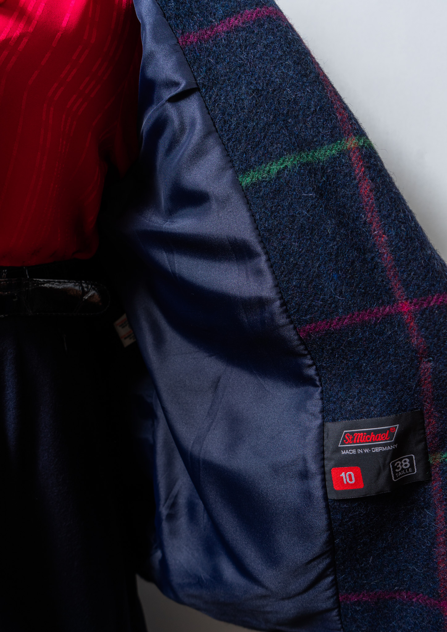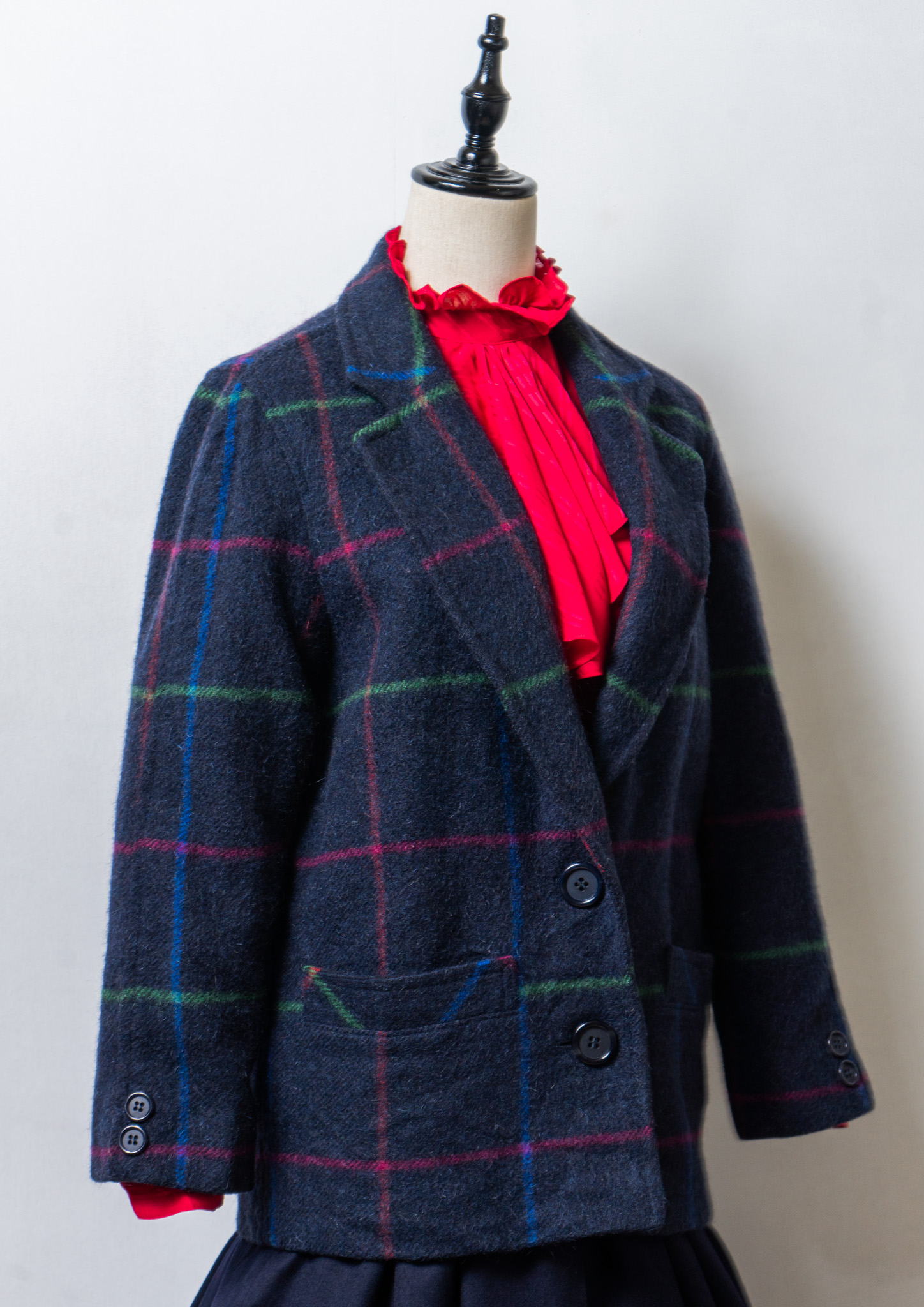 80~90's W-Germany Colorful Check Pattern Navy Tailored jacket