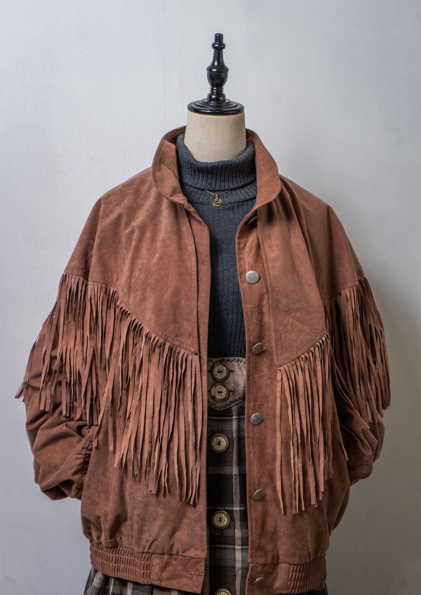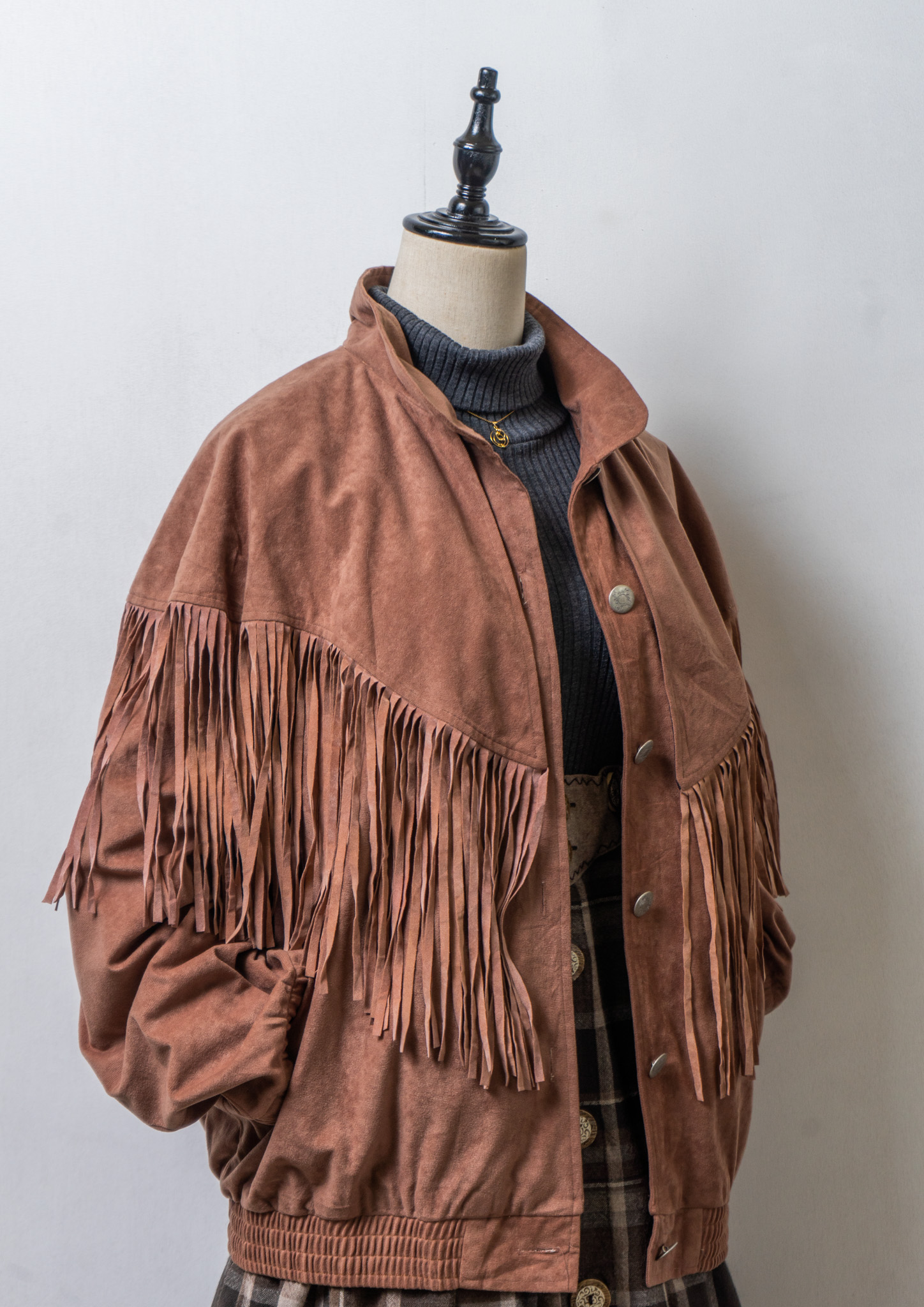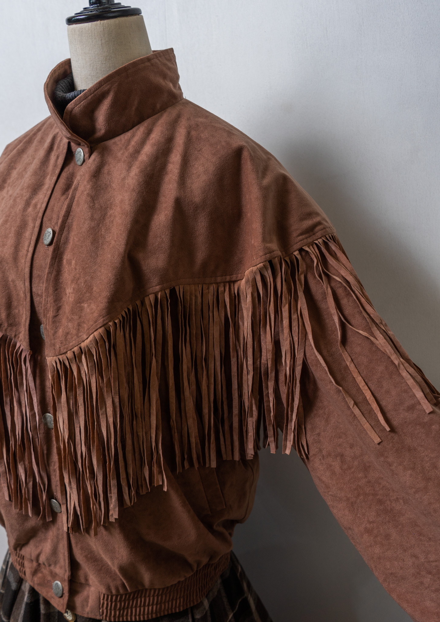 70~80's USA Back Horse Embroidery Design Fringe Jacket