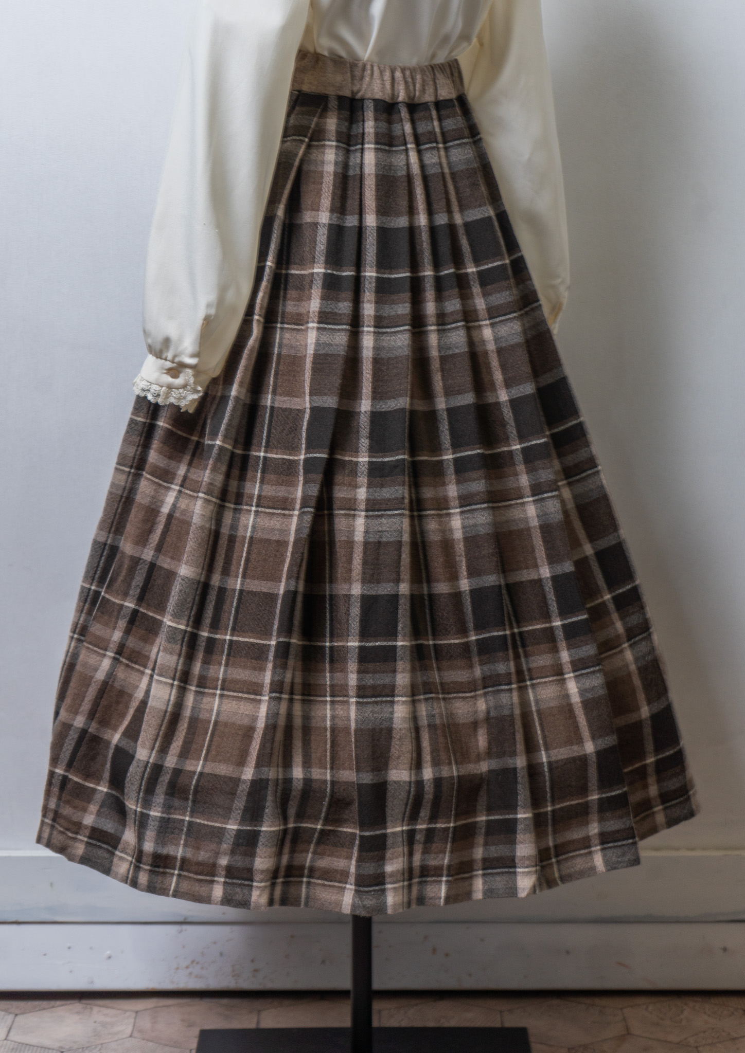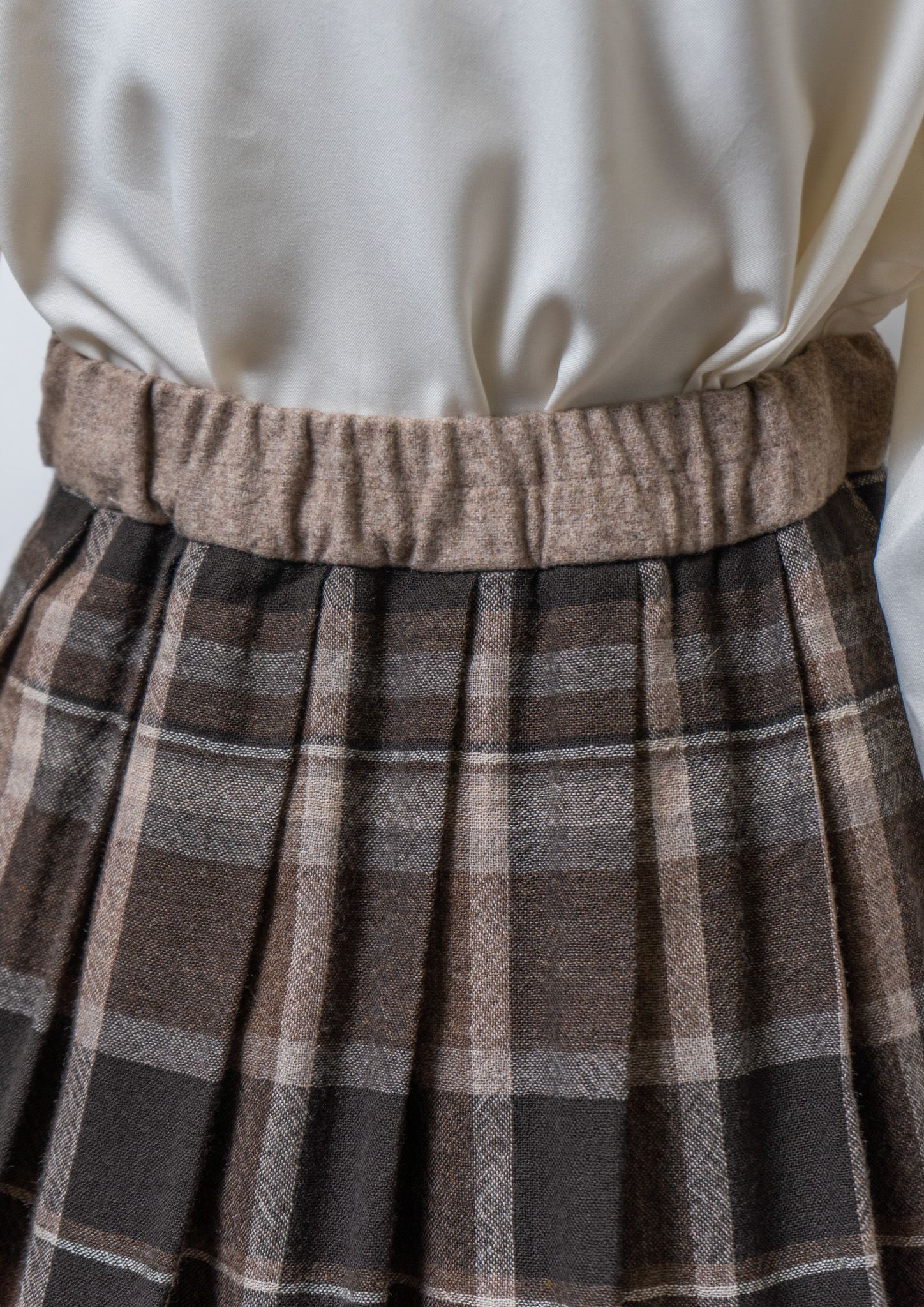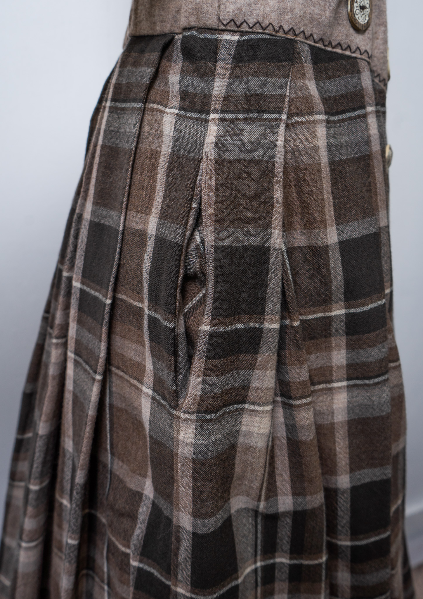 90's Euro Front Uique Big Button Design Check Pattern Brown Tyrol Skirt