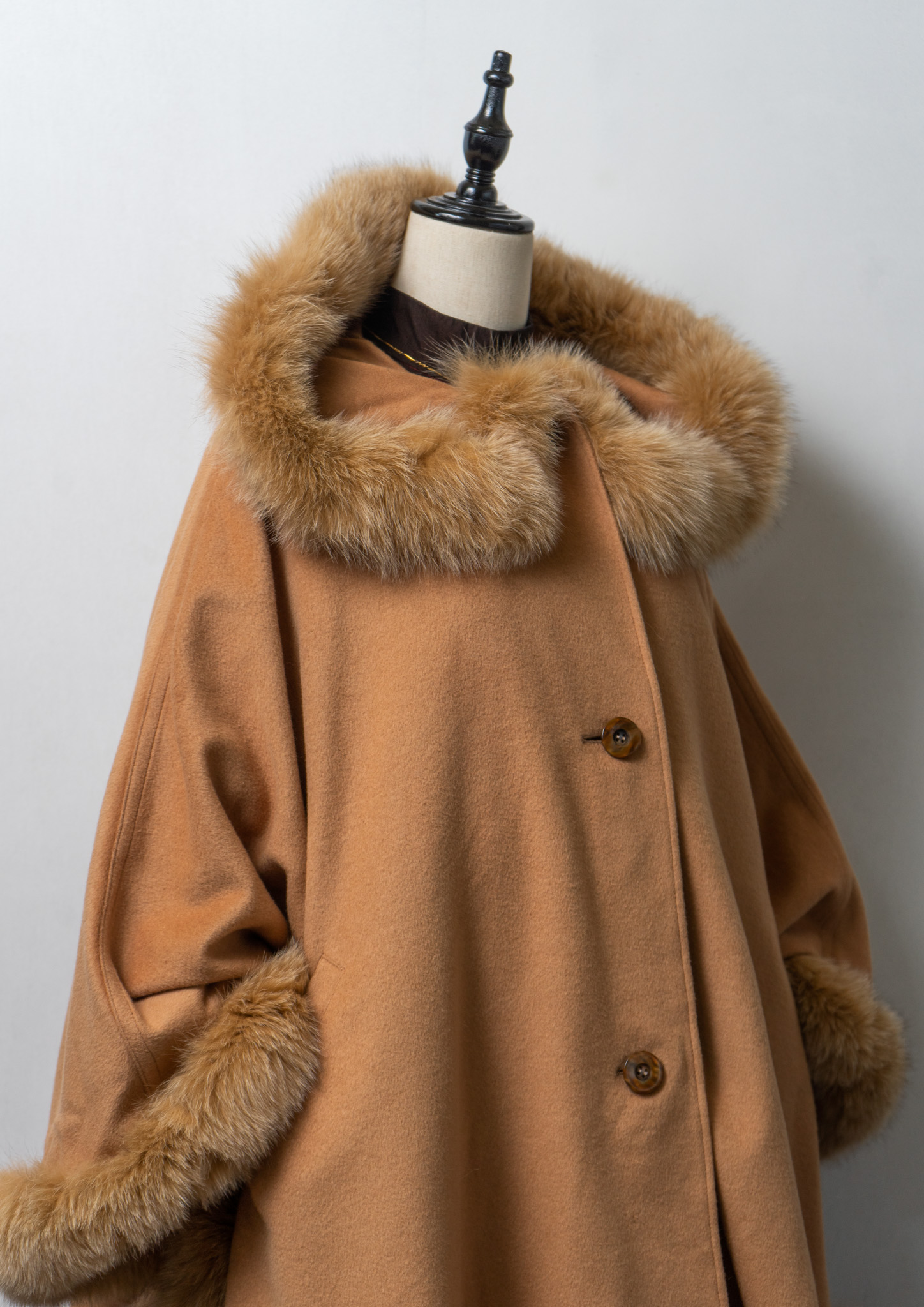 80's Double Gold Button × Fur Design Black Leather Jacket