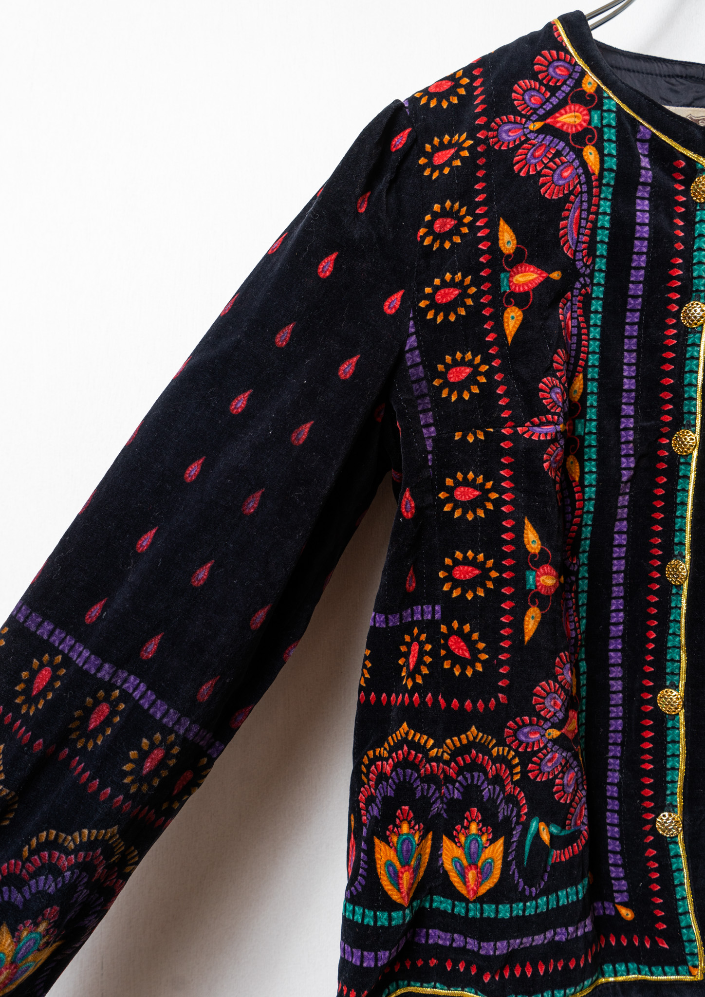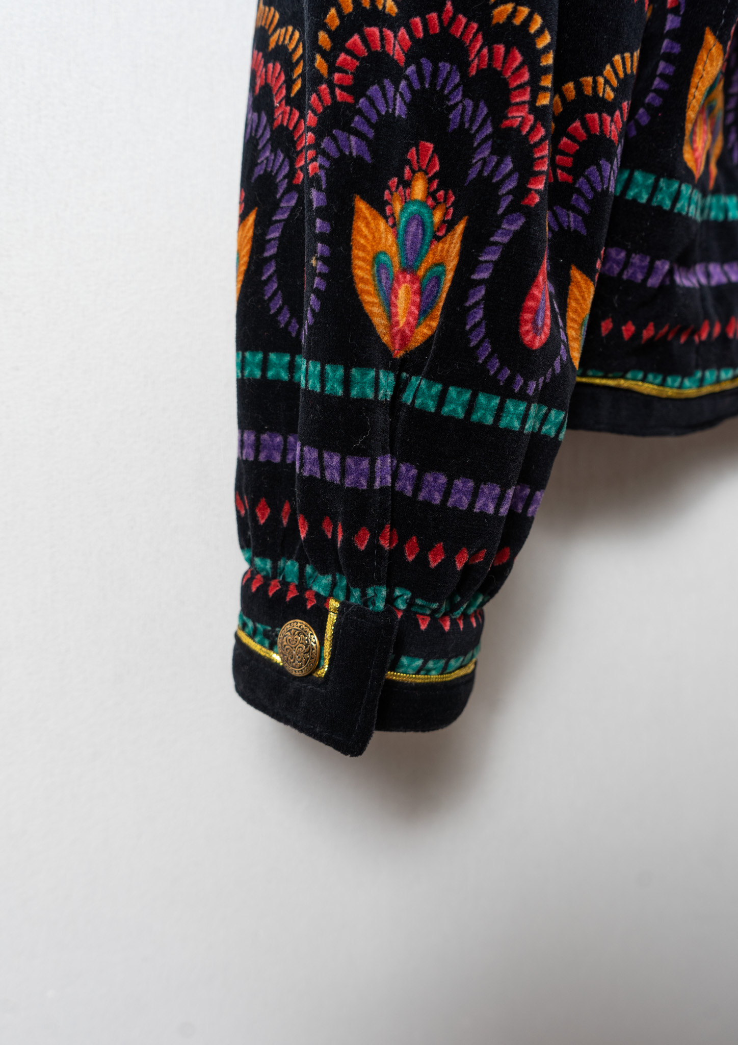 80's Double Pocket Design Point Leopard Pattern Black Wool Jacket