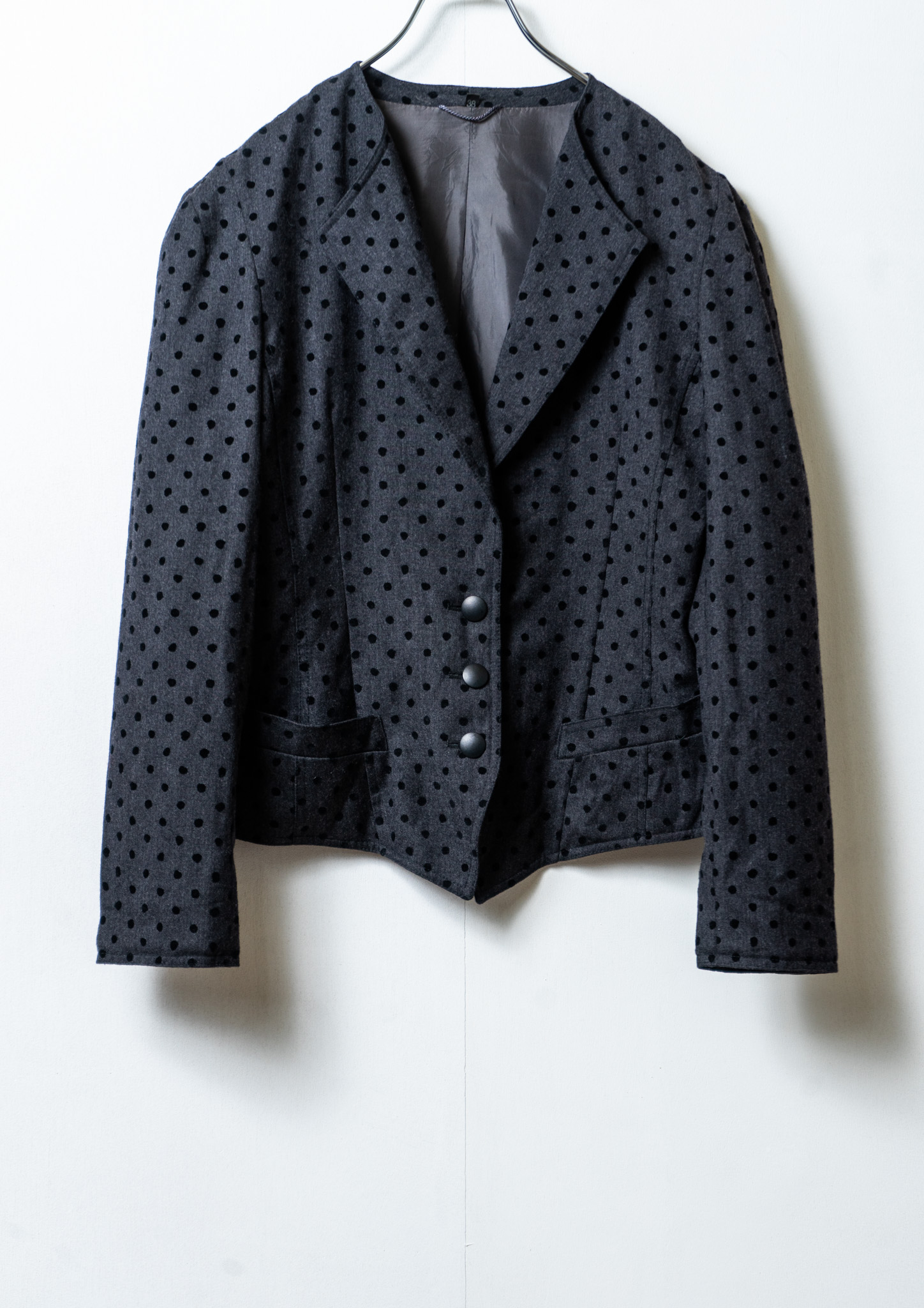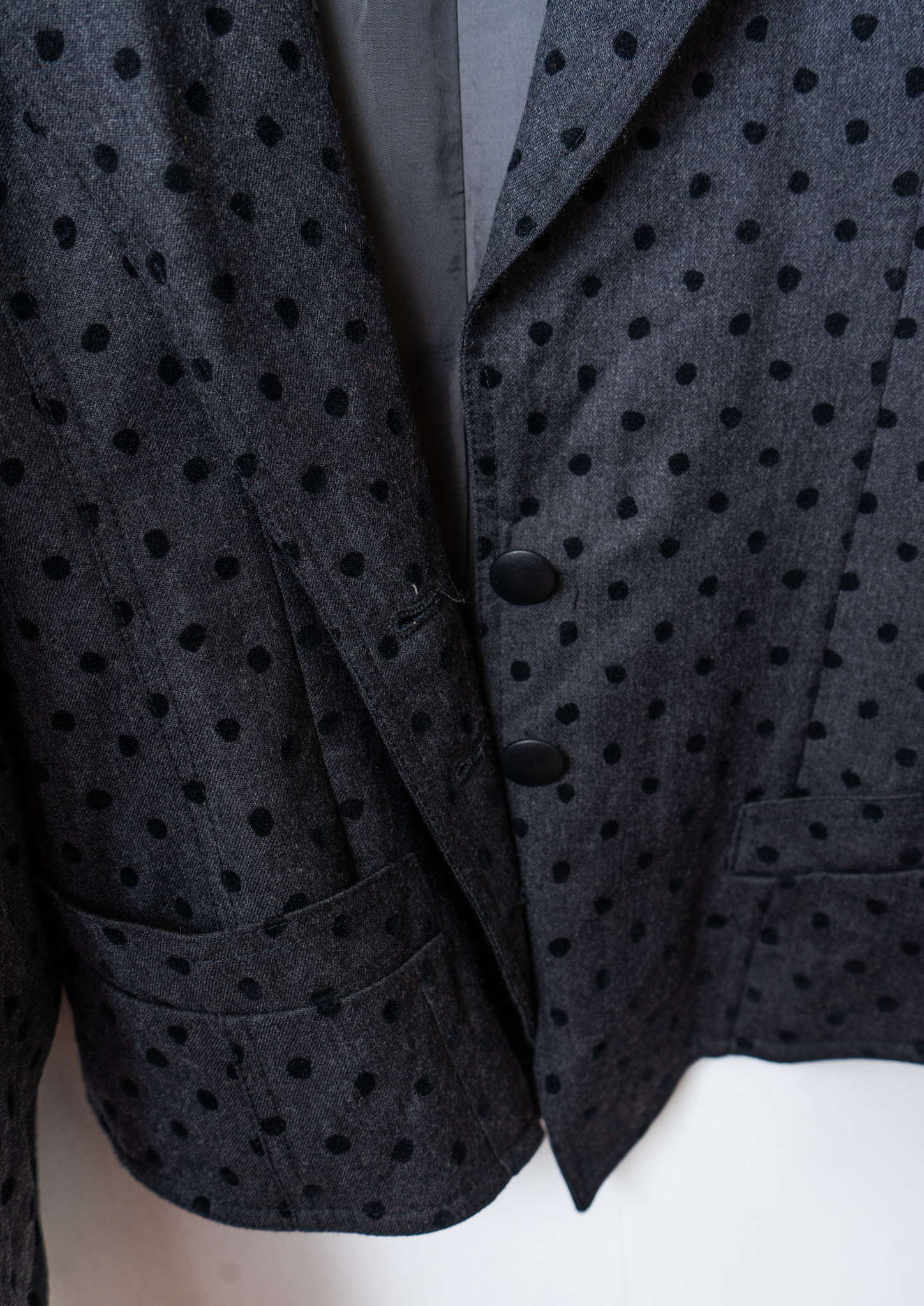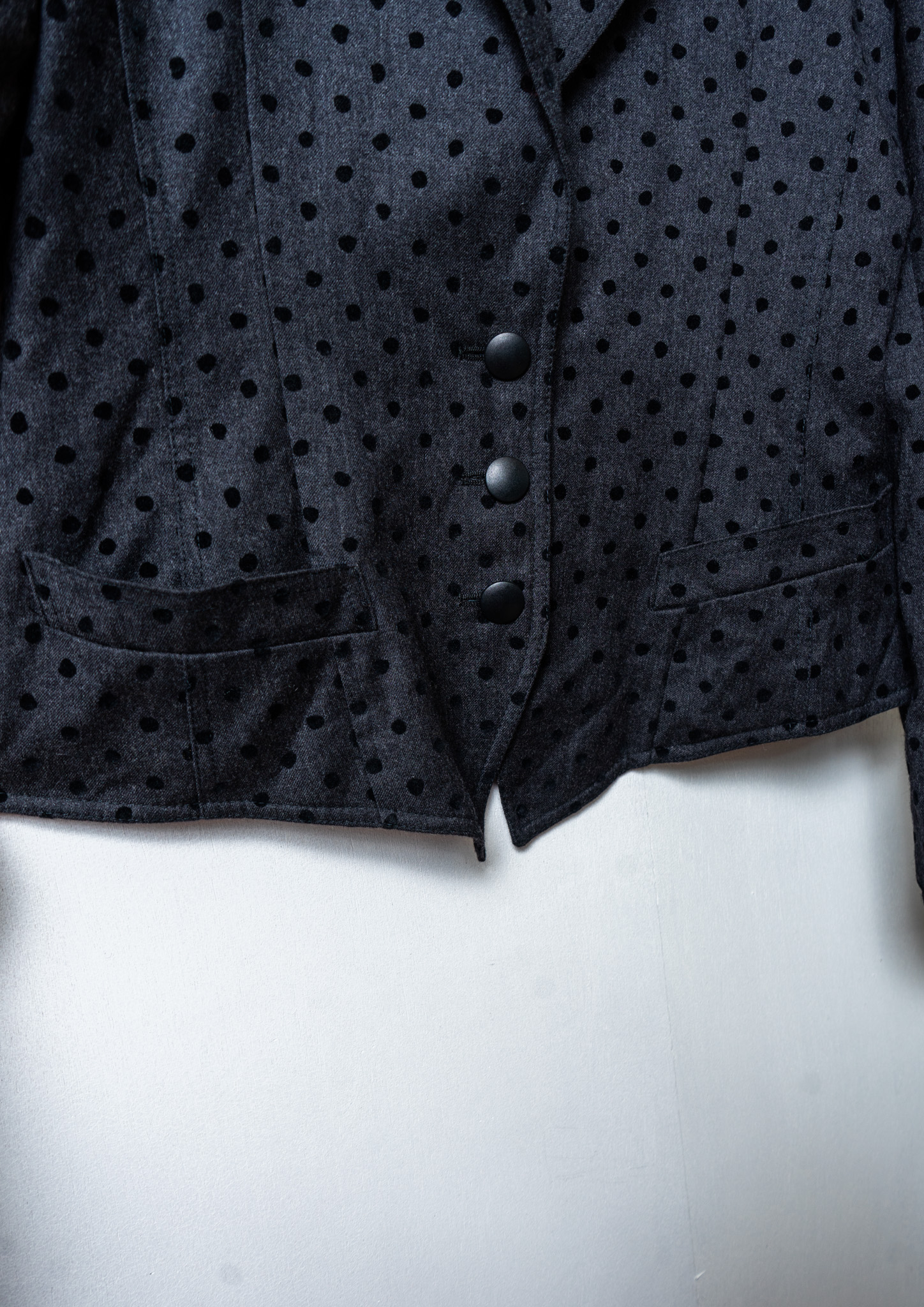 80~90's Euro Double Pocket Design Flocky Dot Pattern Black Jacket
