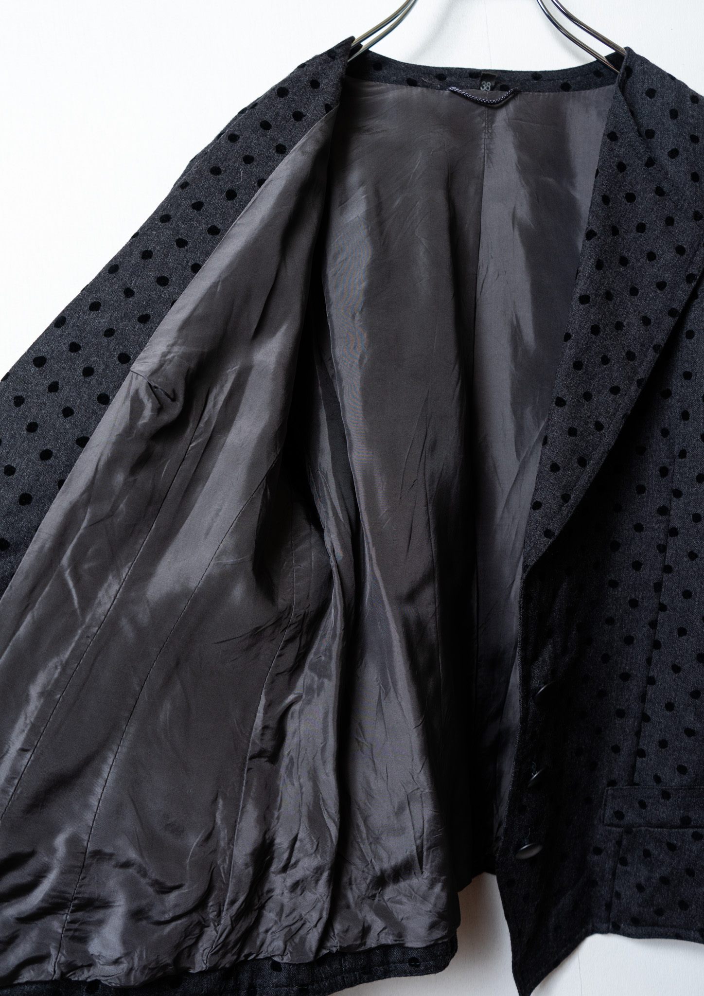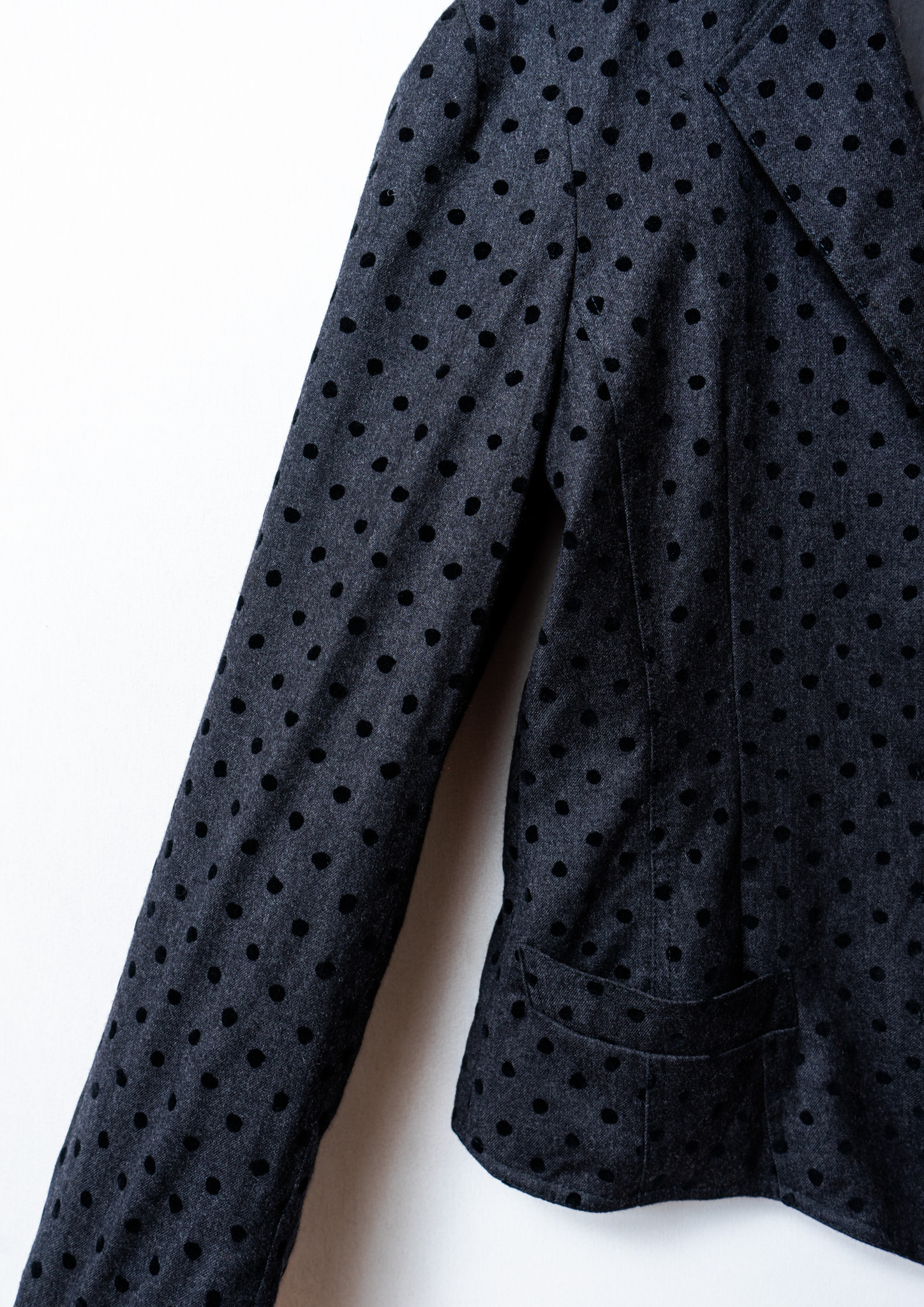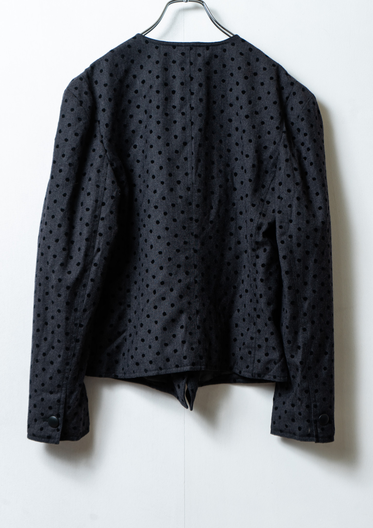 80~90's Euro Double Pocket Design Flocky Dot Pattern Black Jacket