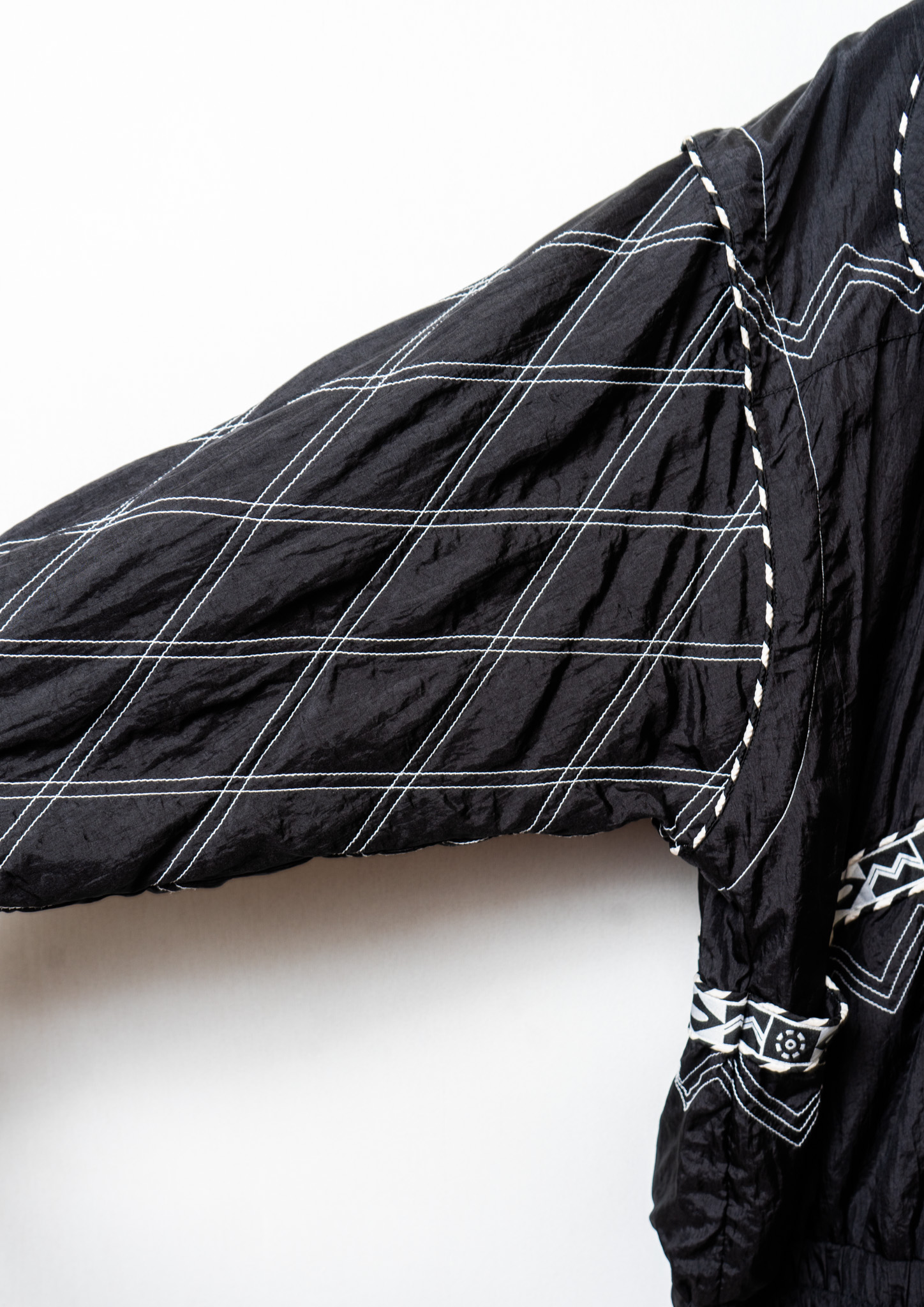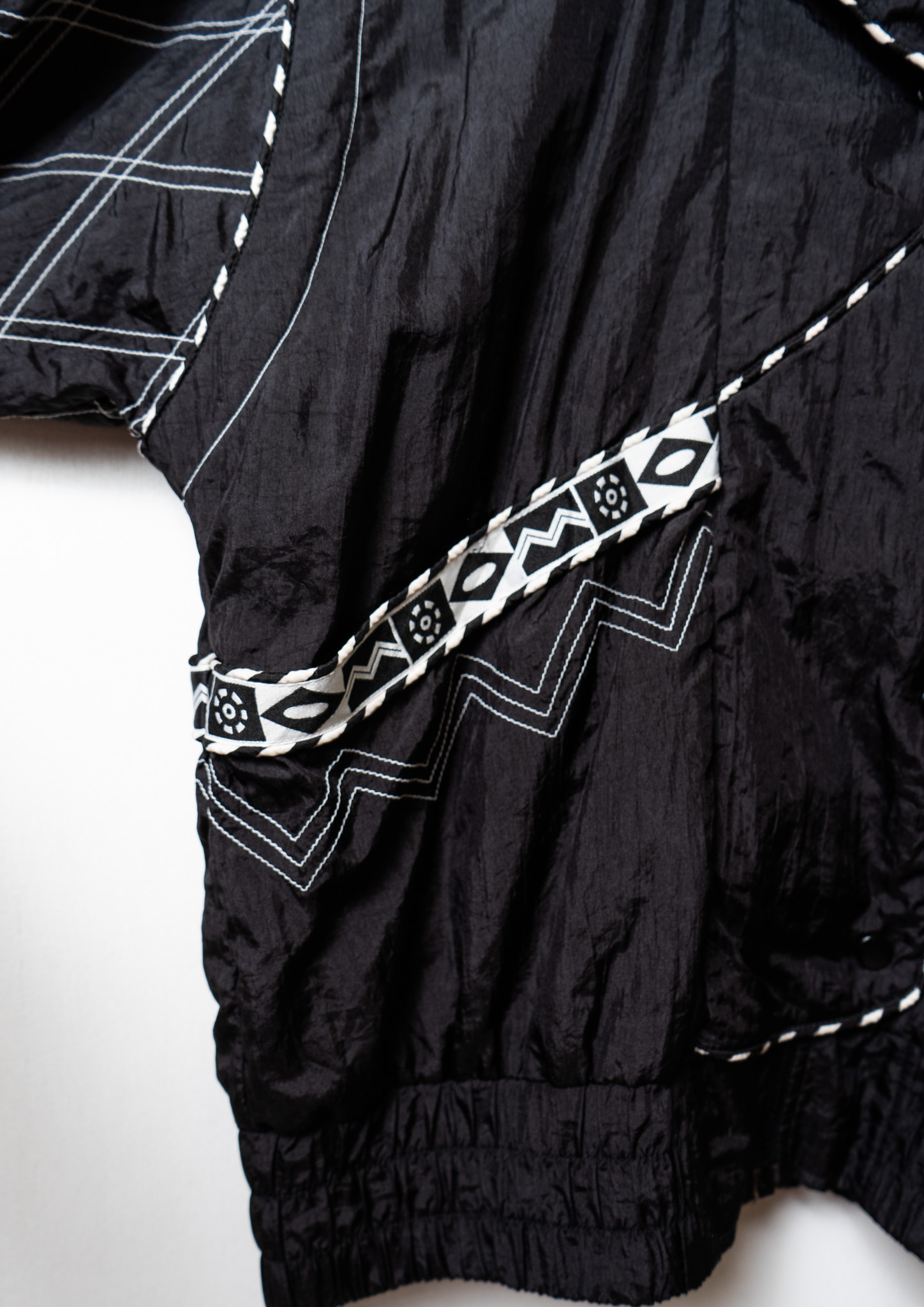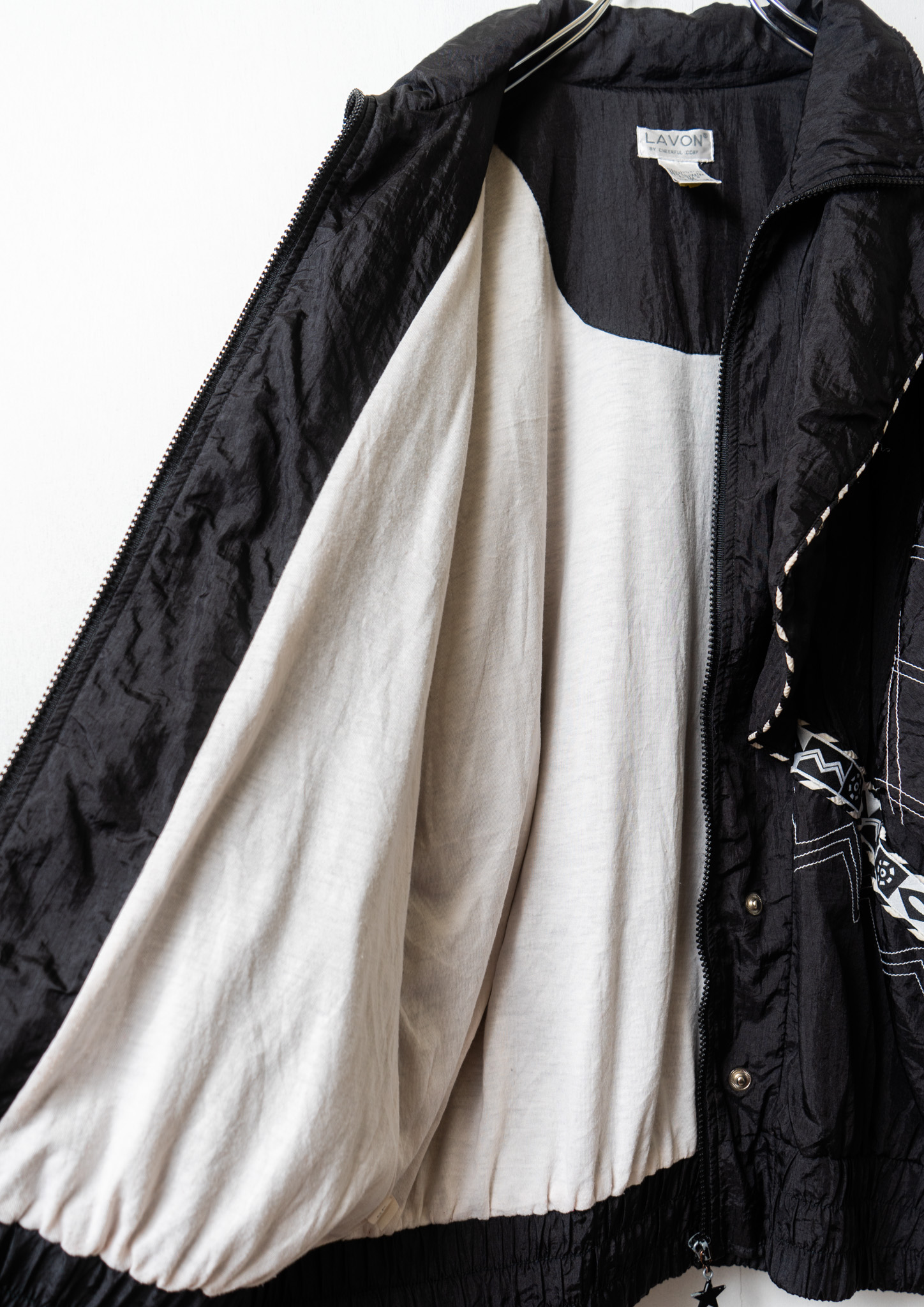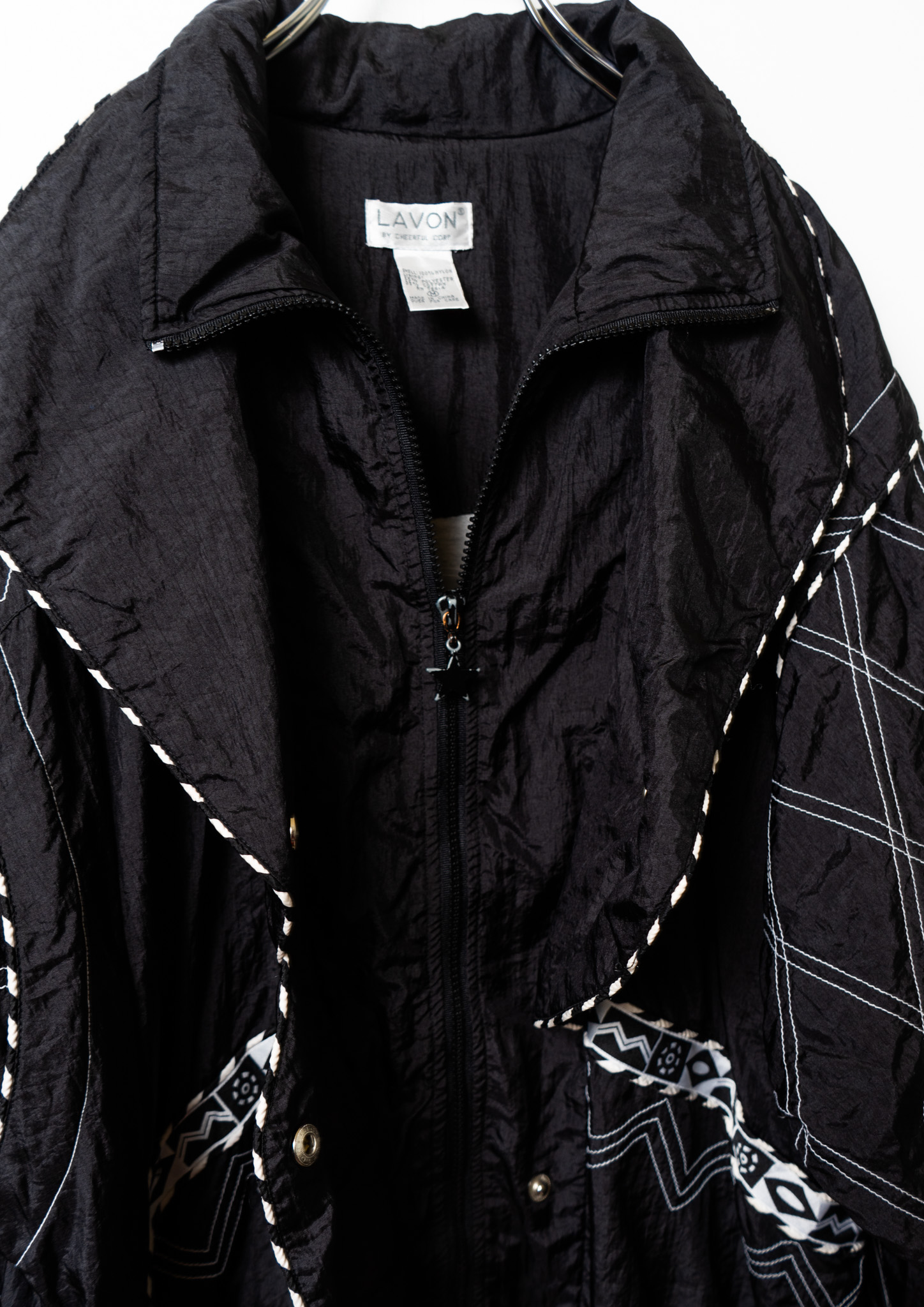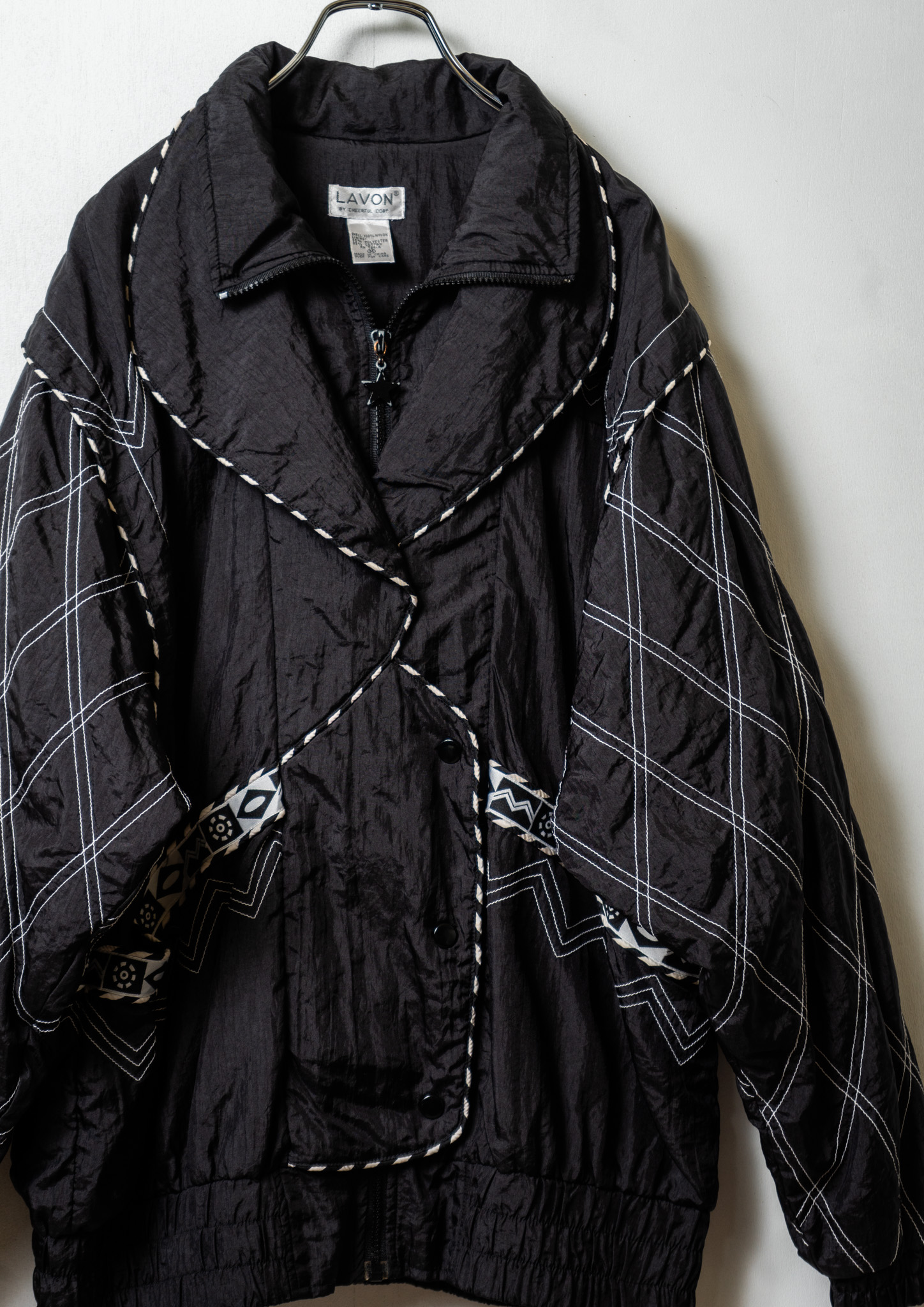 80's Austria Double Pocket Design Stitch Pattern Black Jacket