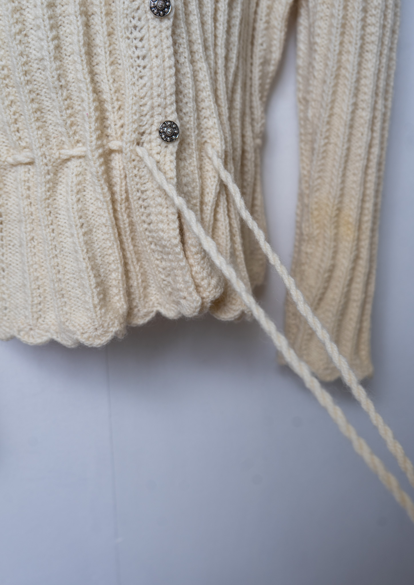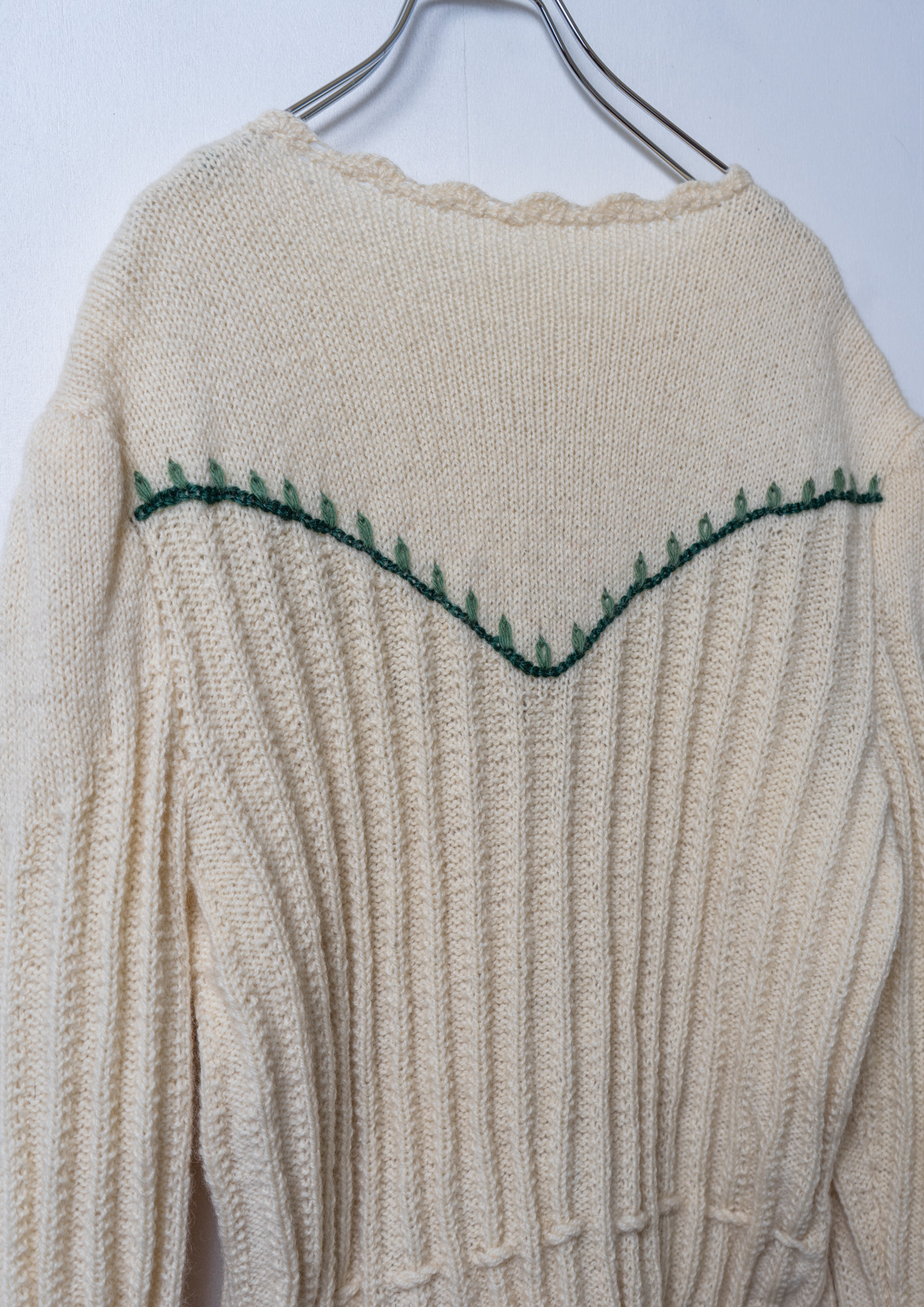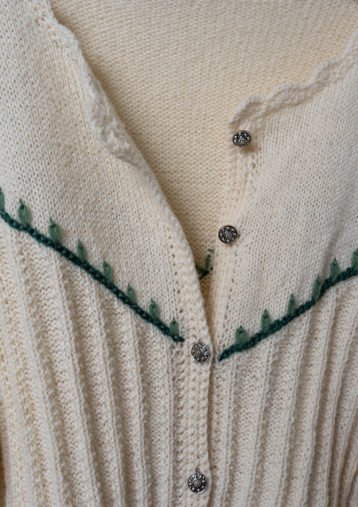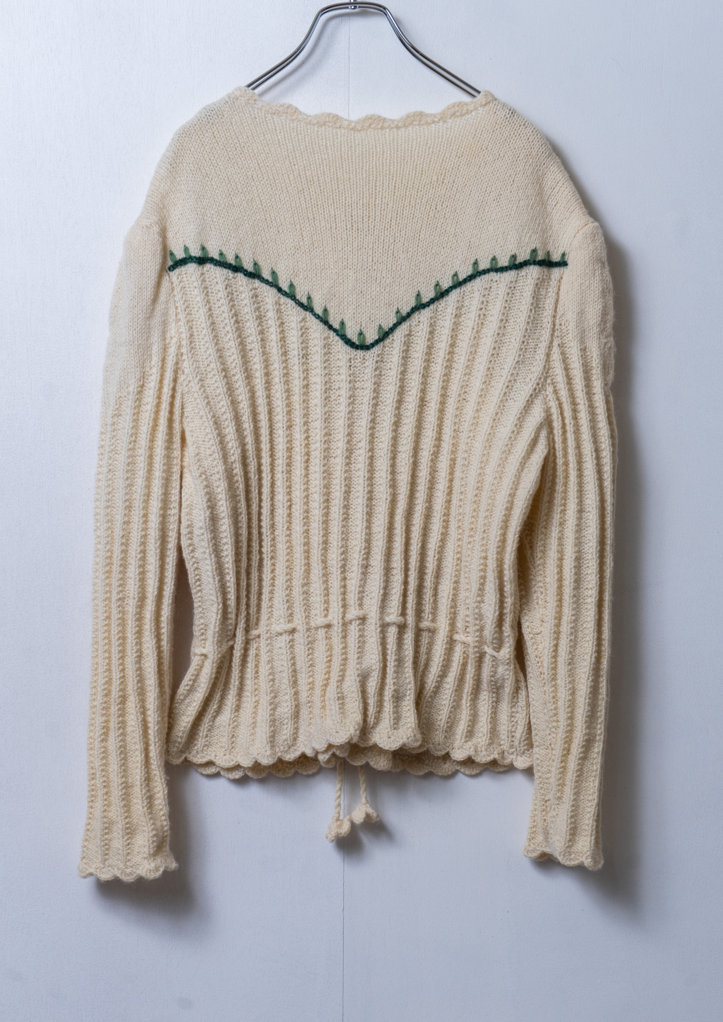 Leaf Embroidery × Waist Ribbon Design Off-White Tyrol Cardigan