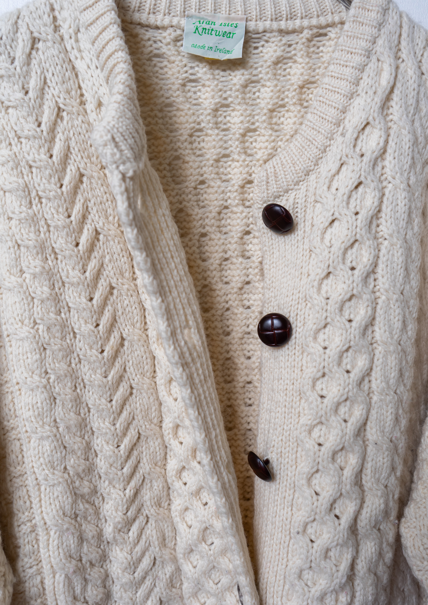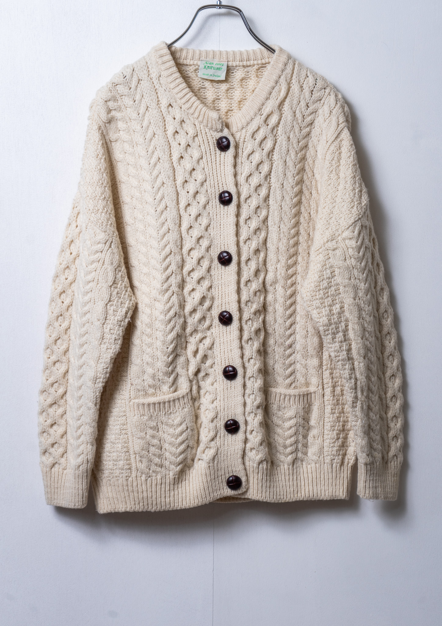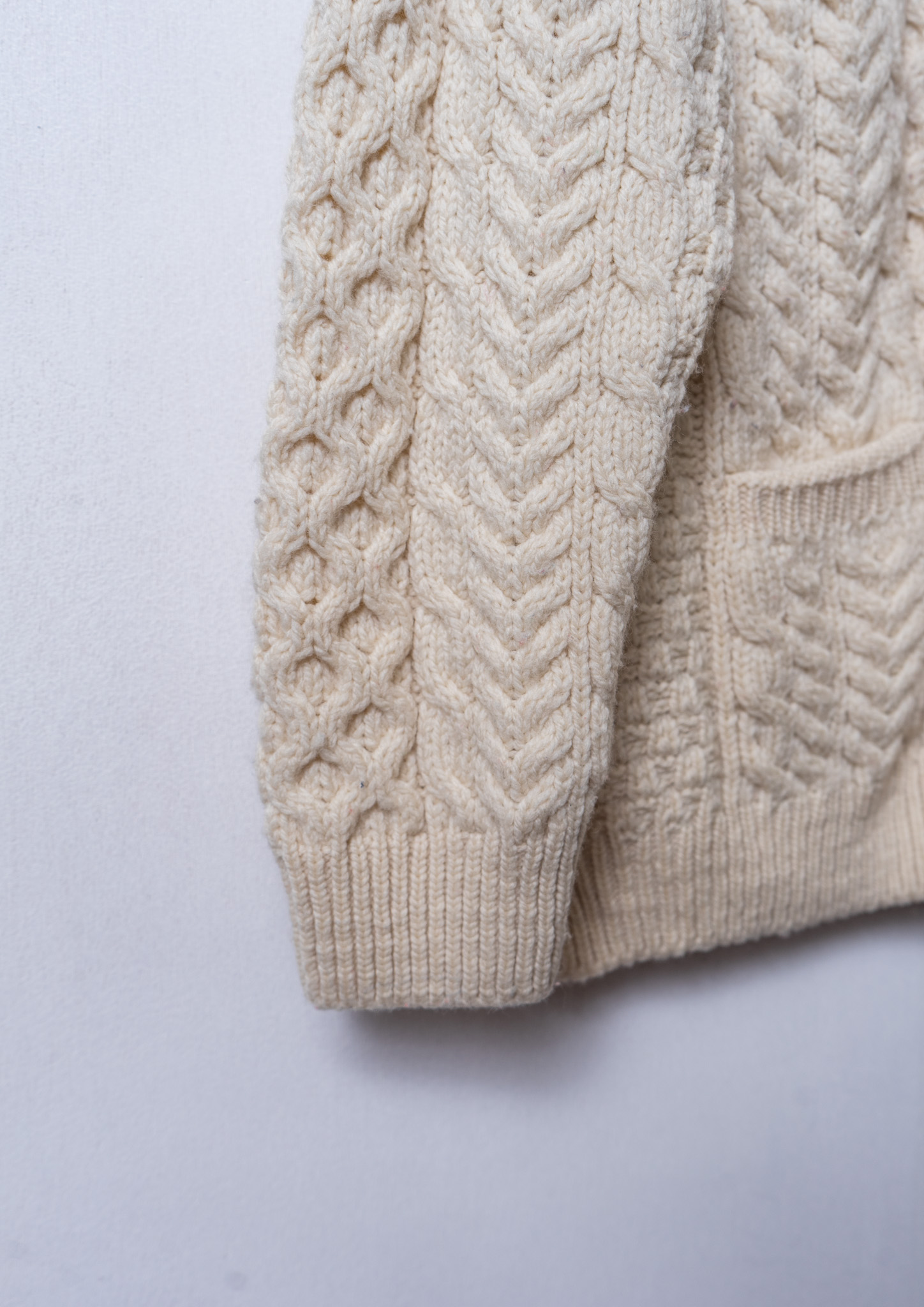 80~90's Ireland Double Pocket Design Off-White Cable Knit Cardigan