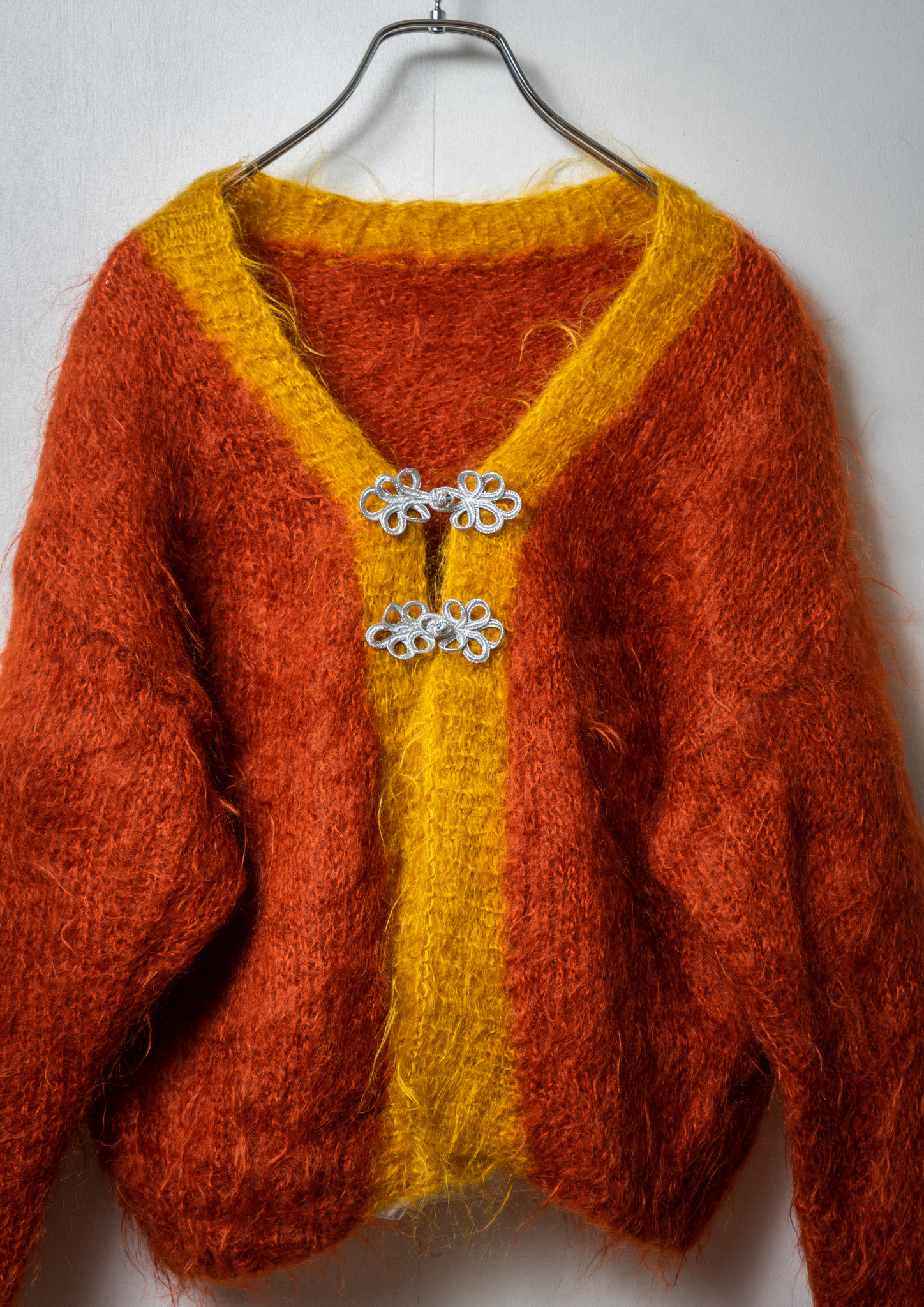 80's Austria Heat Tyrol Button Design Green × Black Knit Tyrol Cardigan
