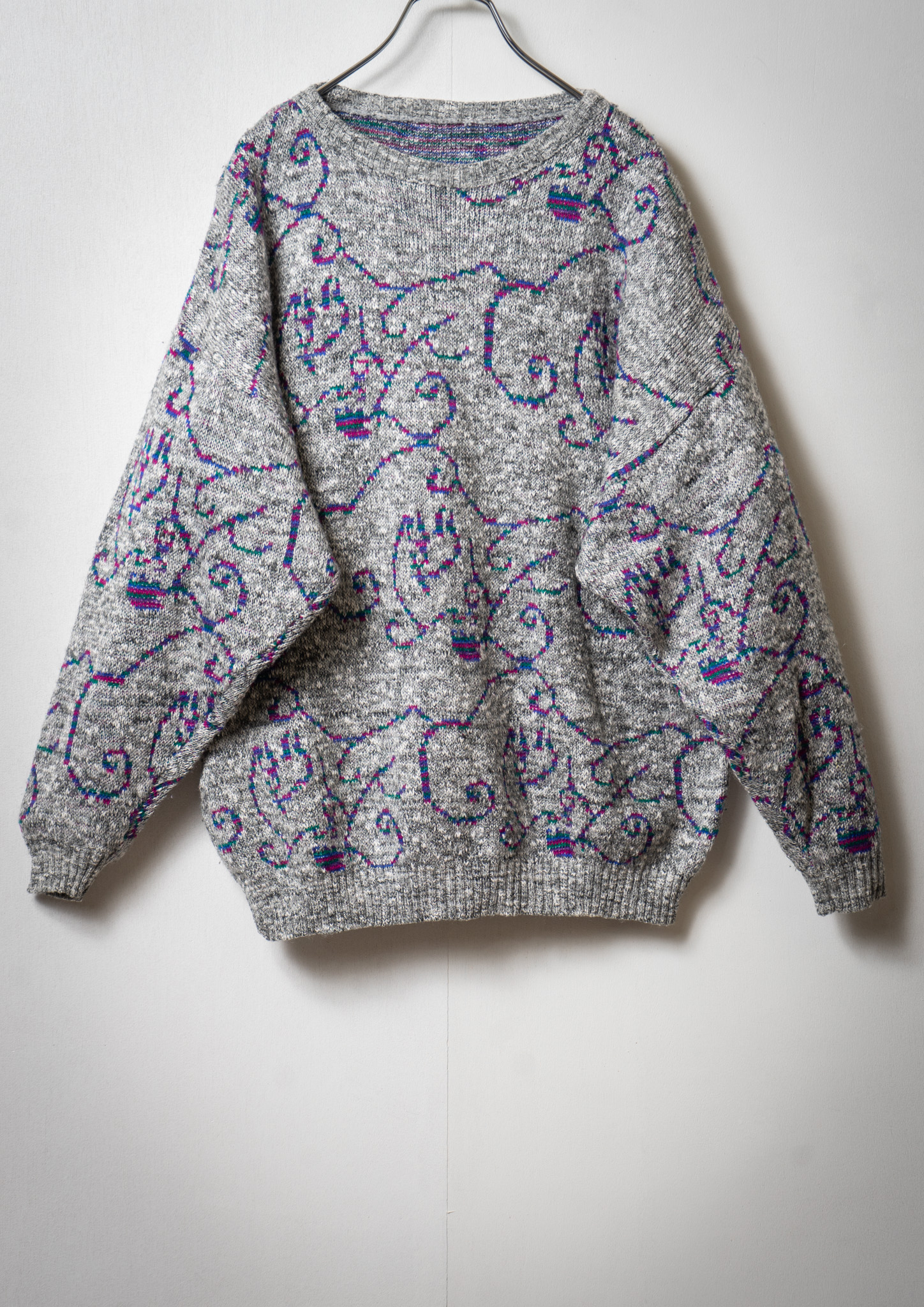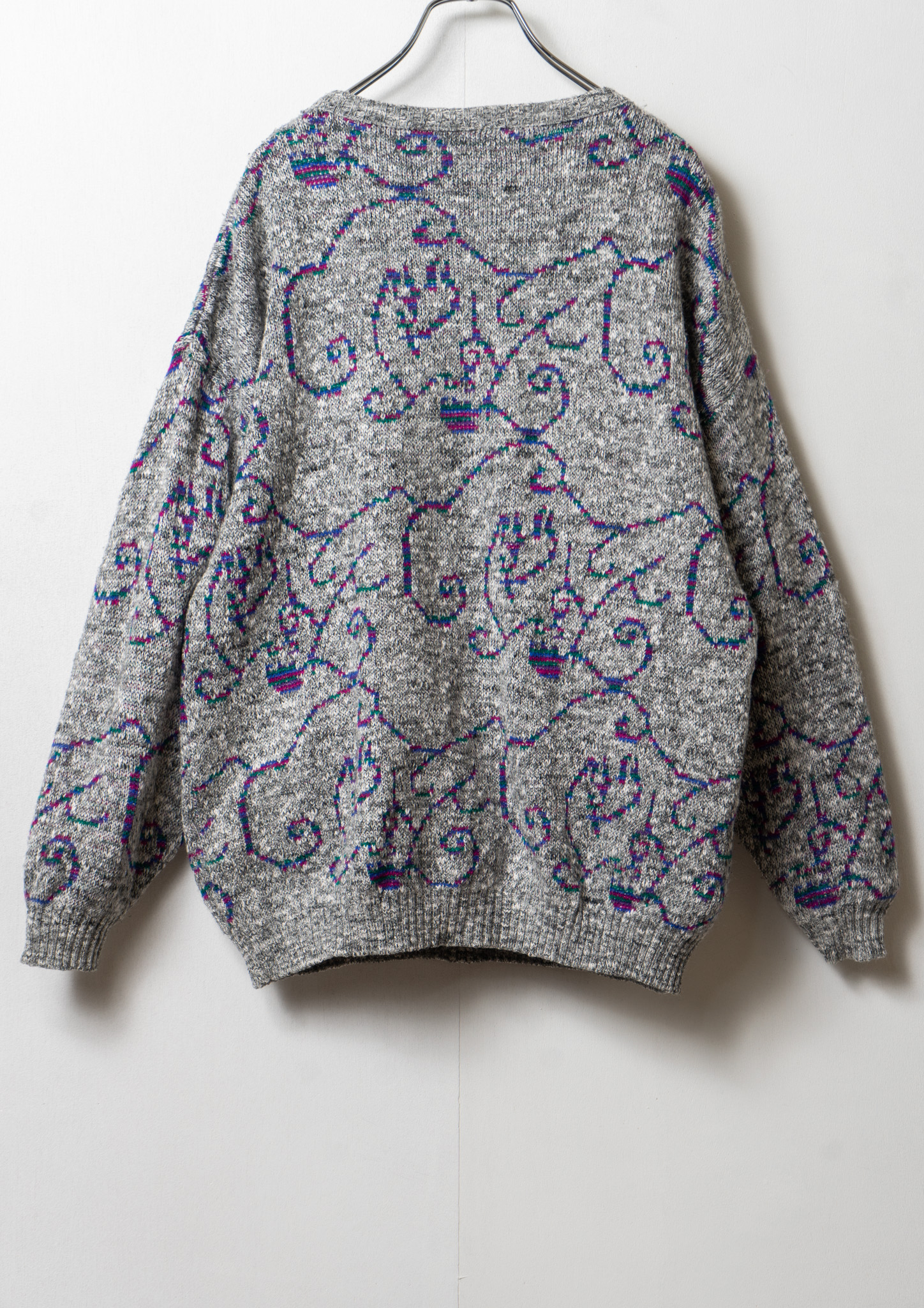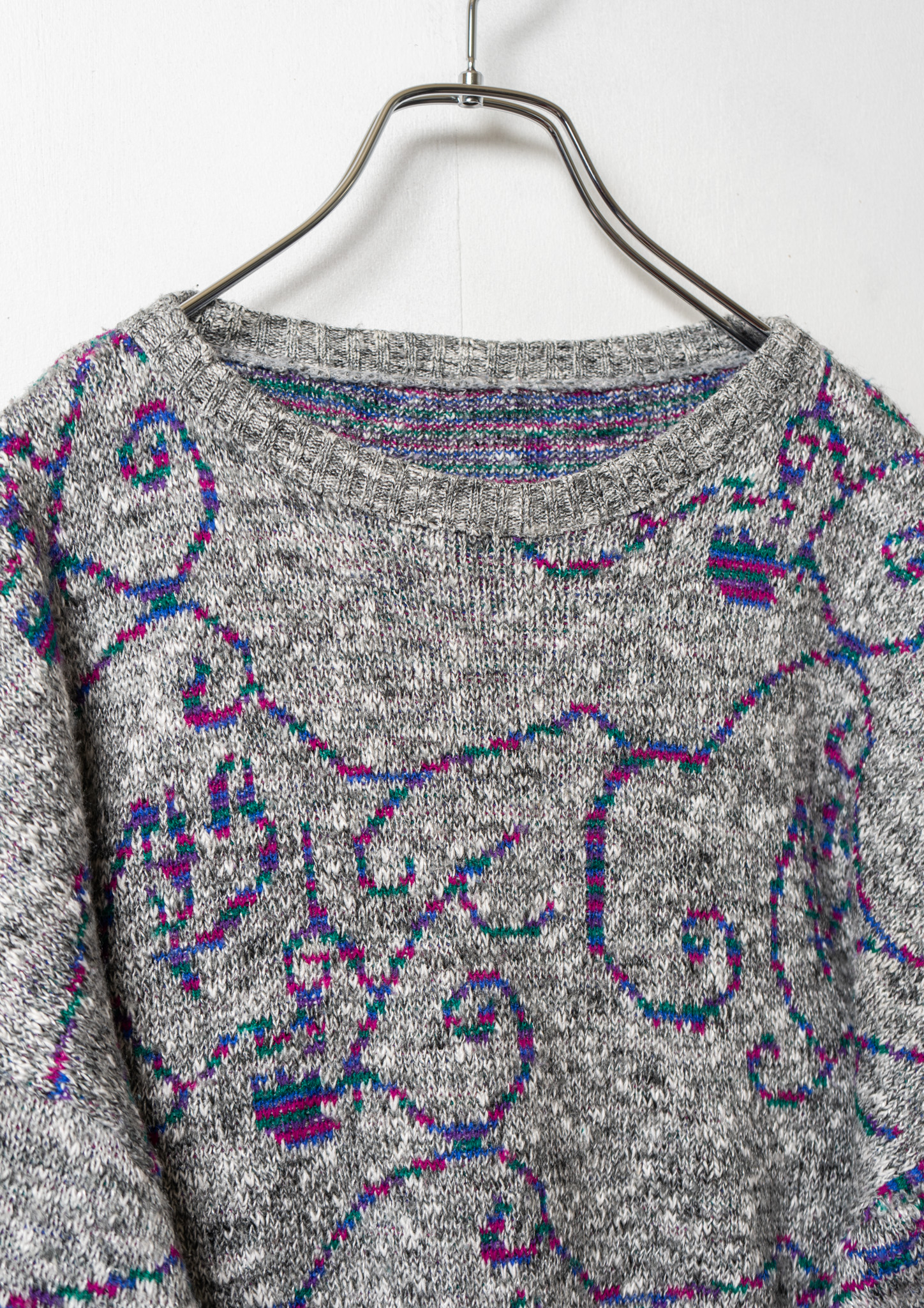 80~90's USA Tennis Art Pattern White Knit Sweater
