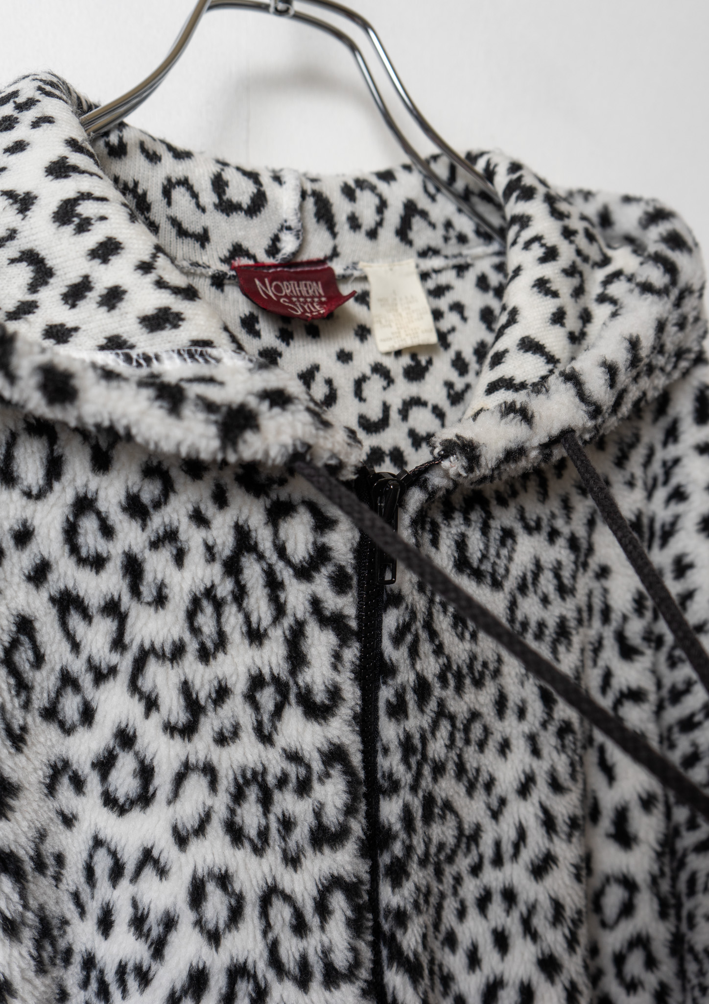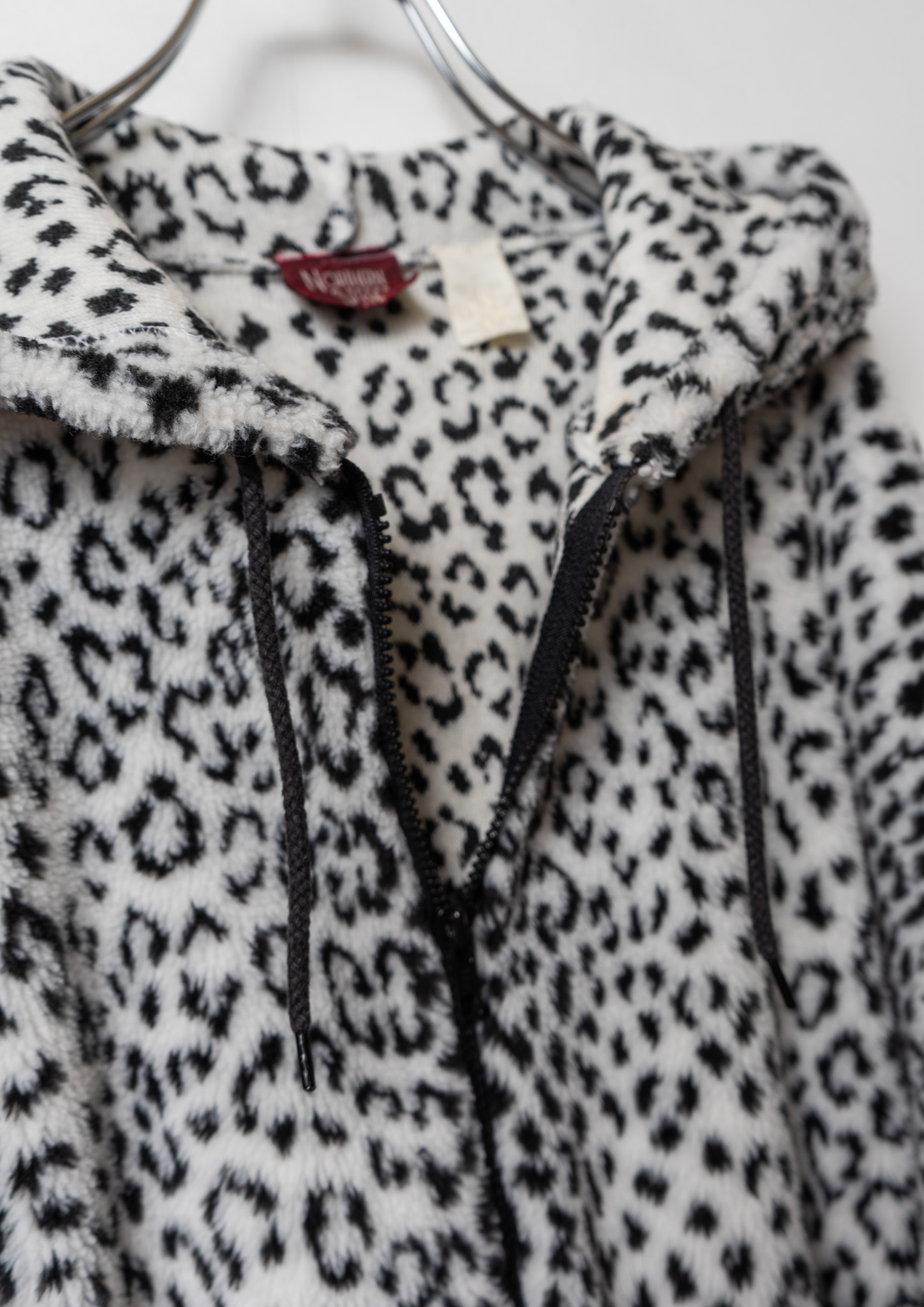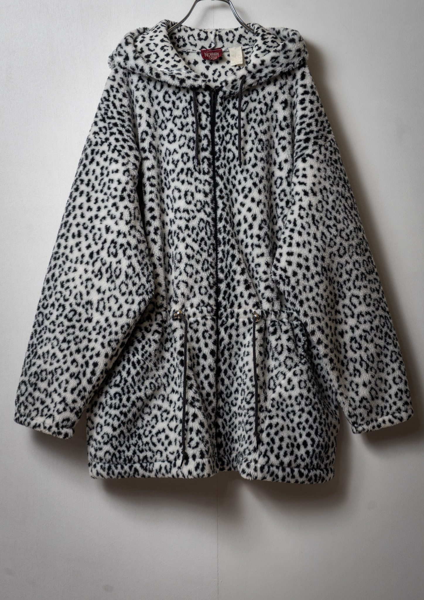 80's Double Pocket Design Point Leopard Pattern Black Wool Jacket