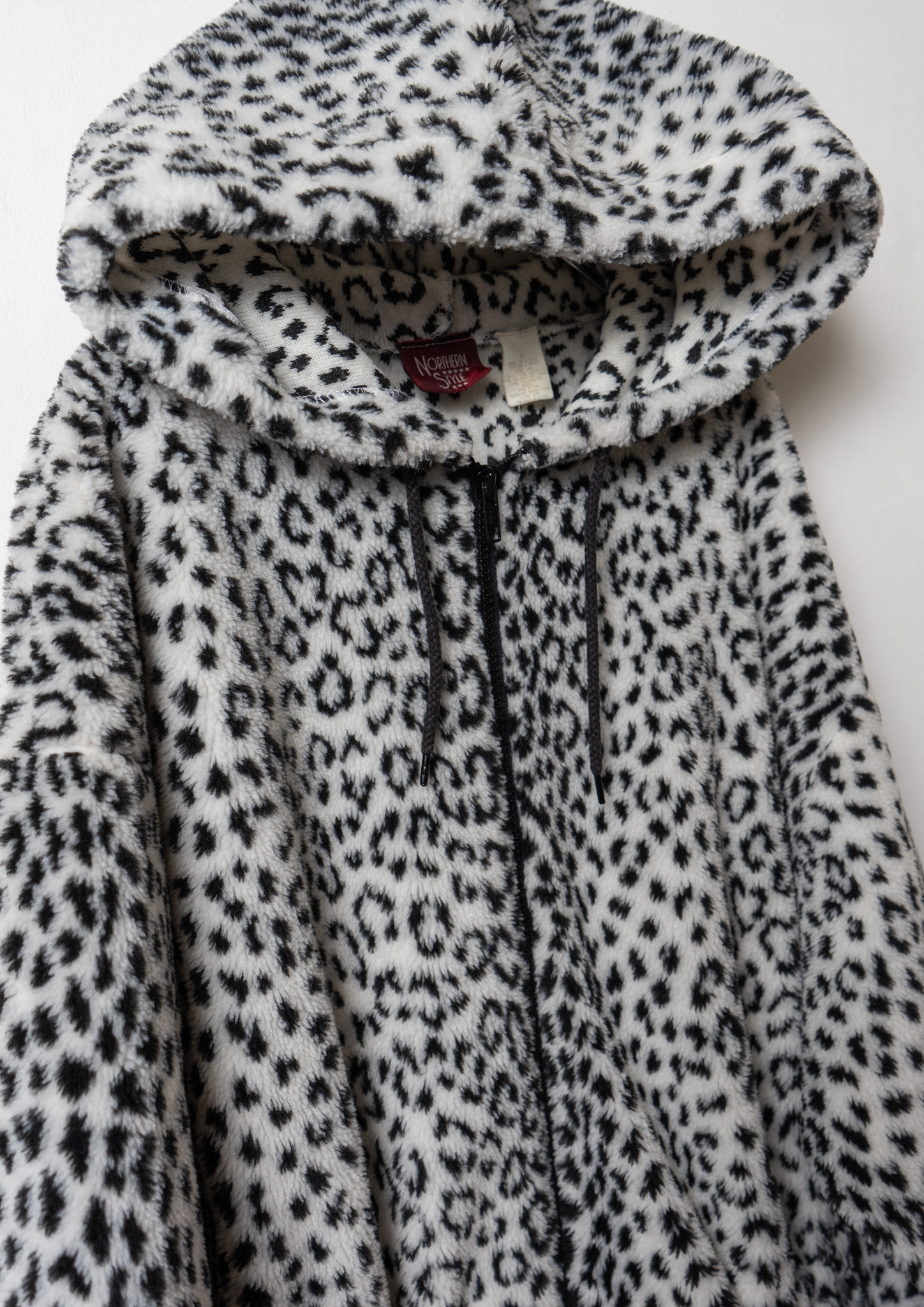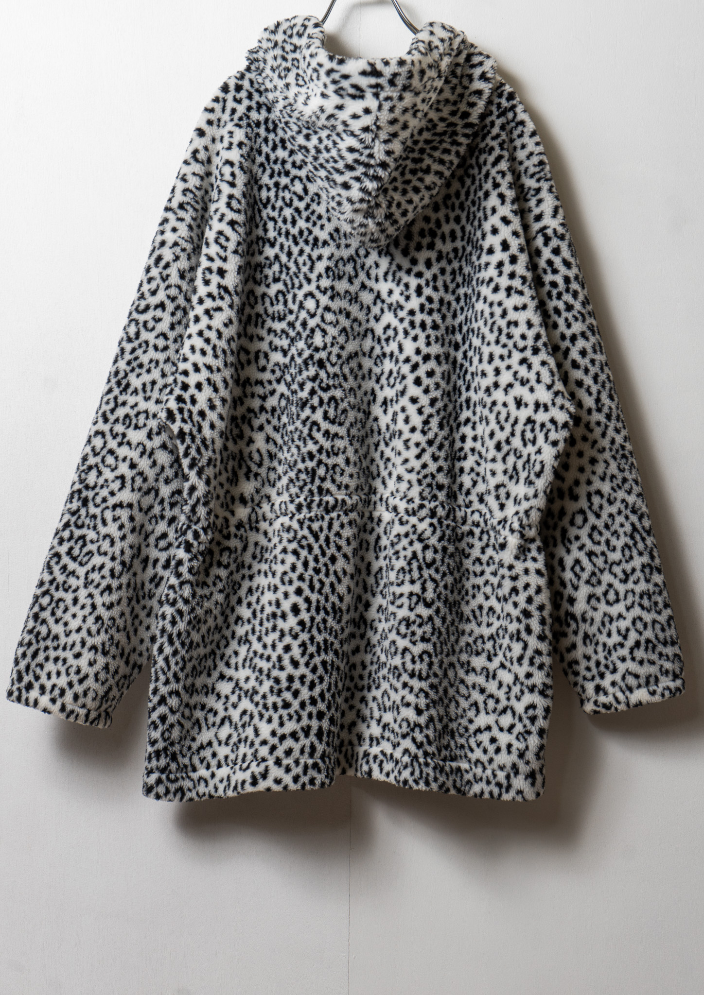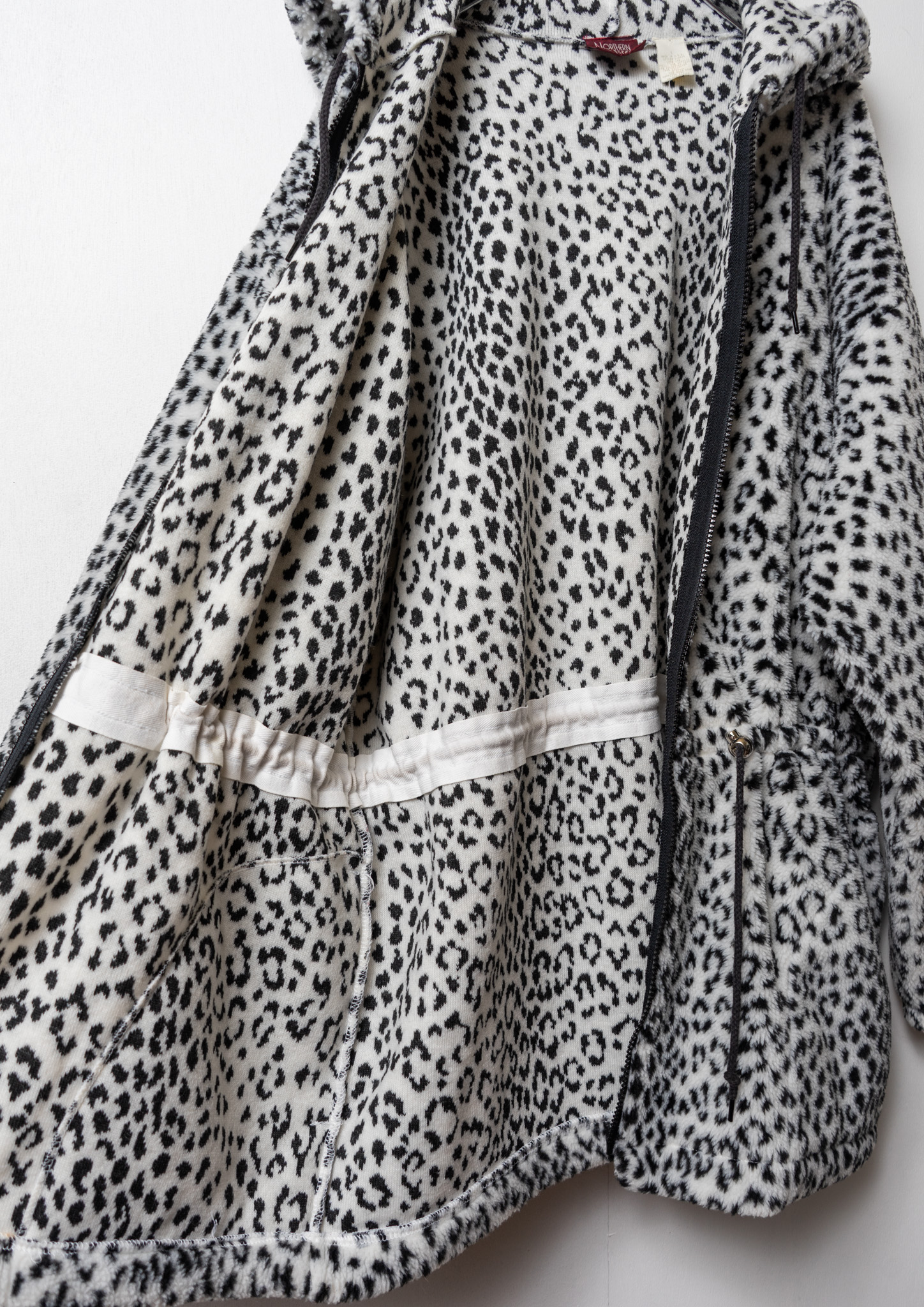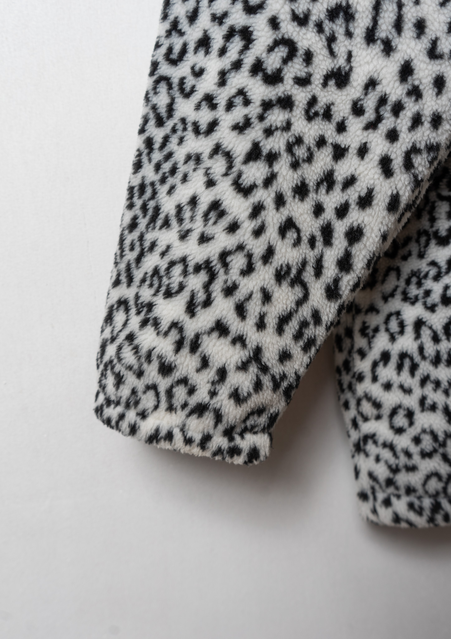 80's Double Pocket Design Point Leopard Pattern Black Wool Jacket