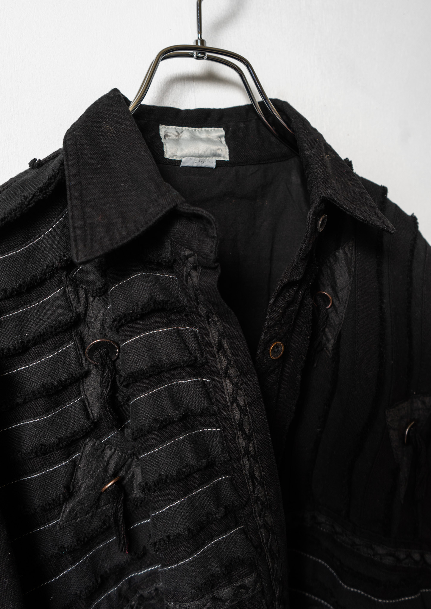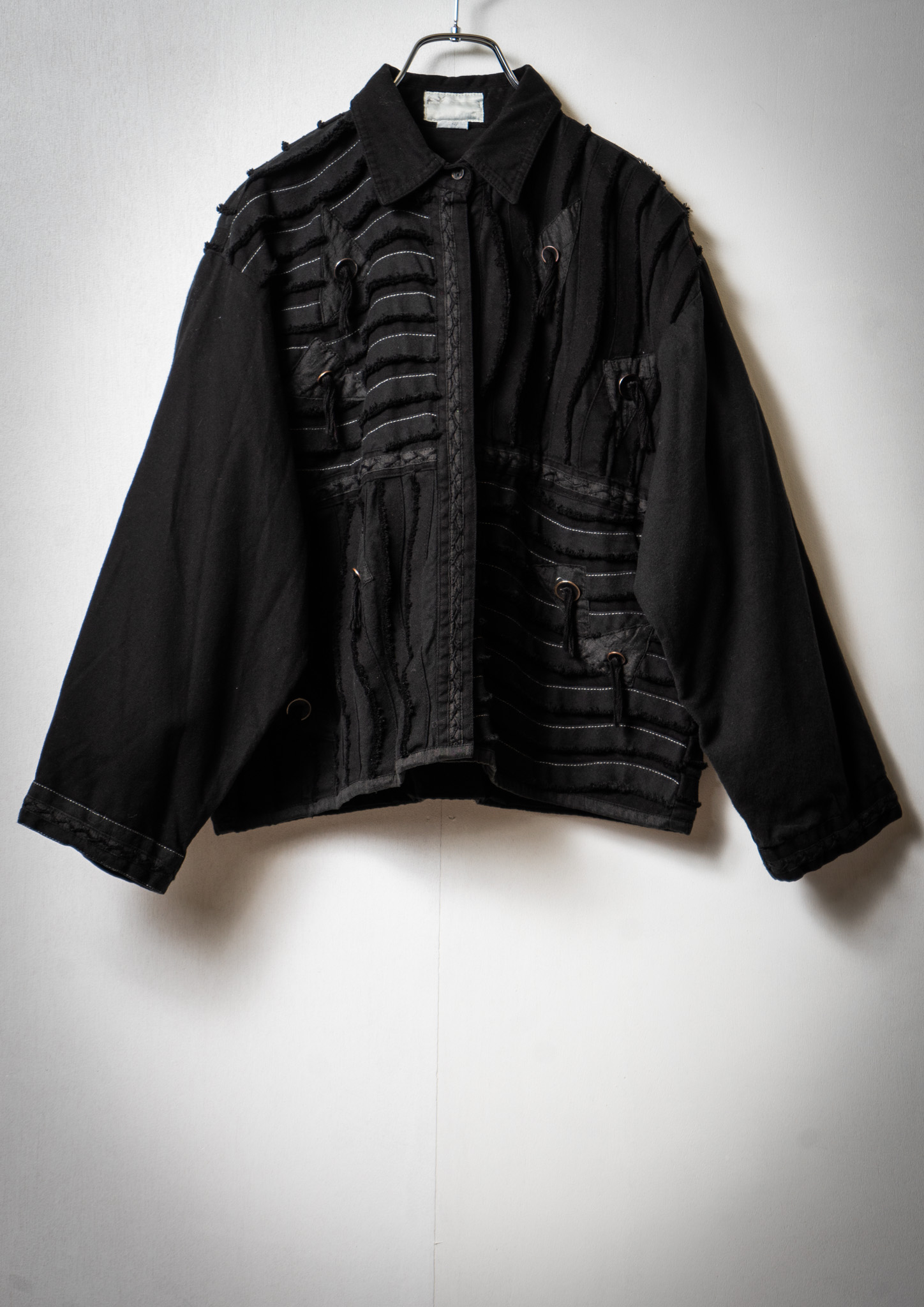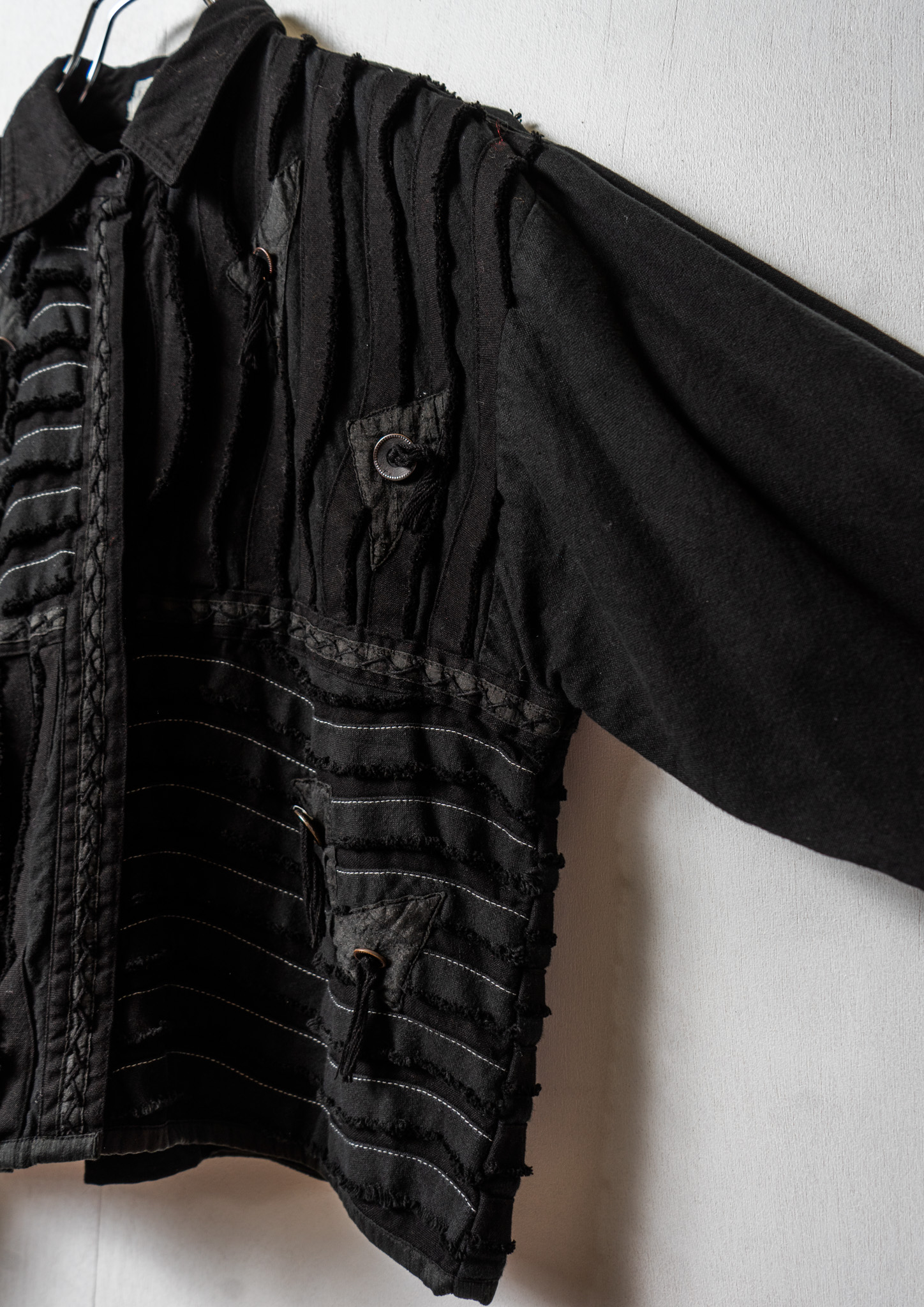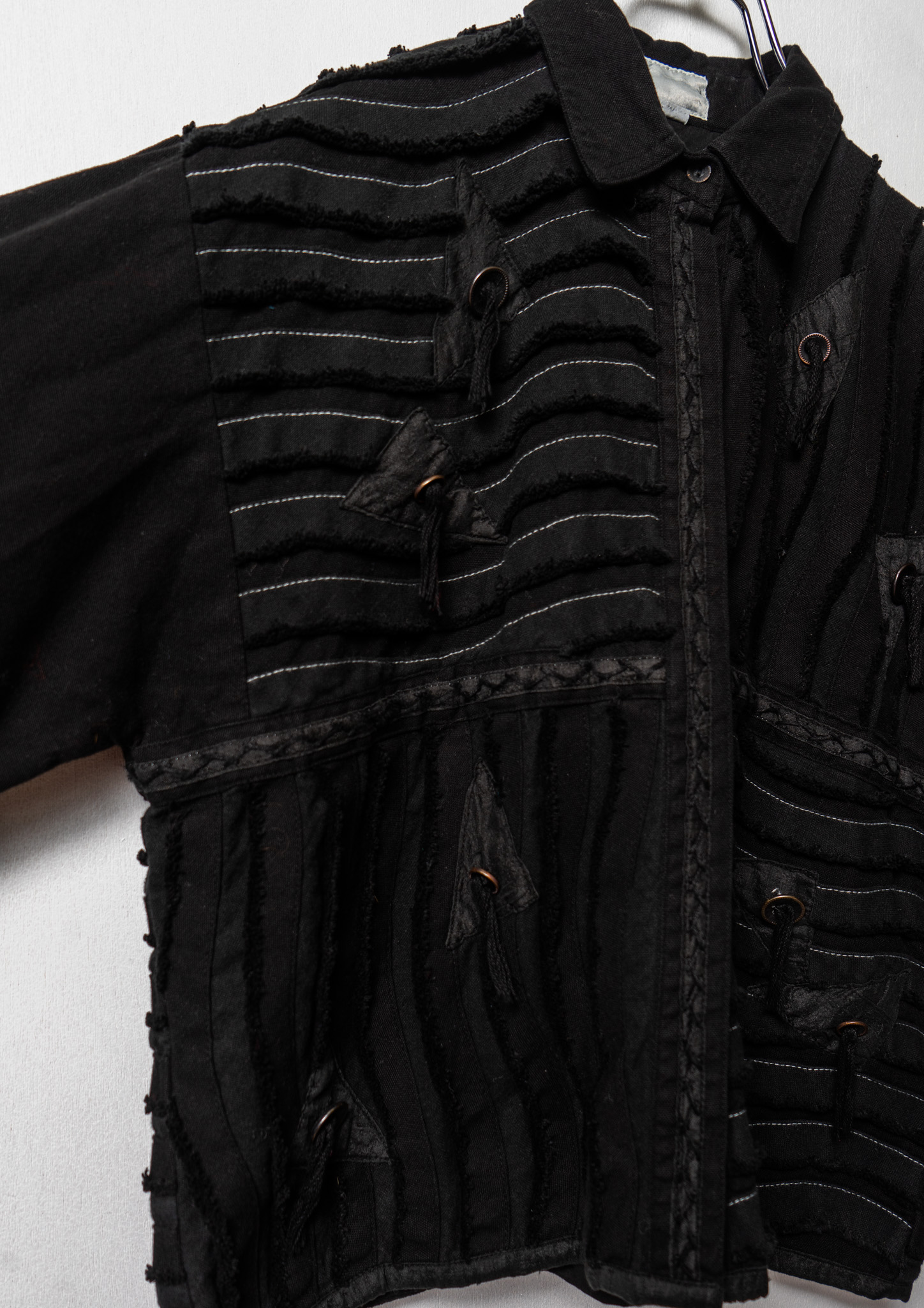 80~90's Tassel Like Design Unique Pattern Black Denim Jacket
