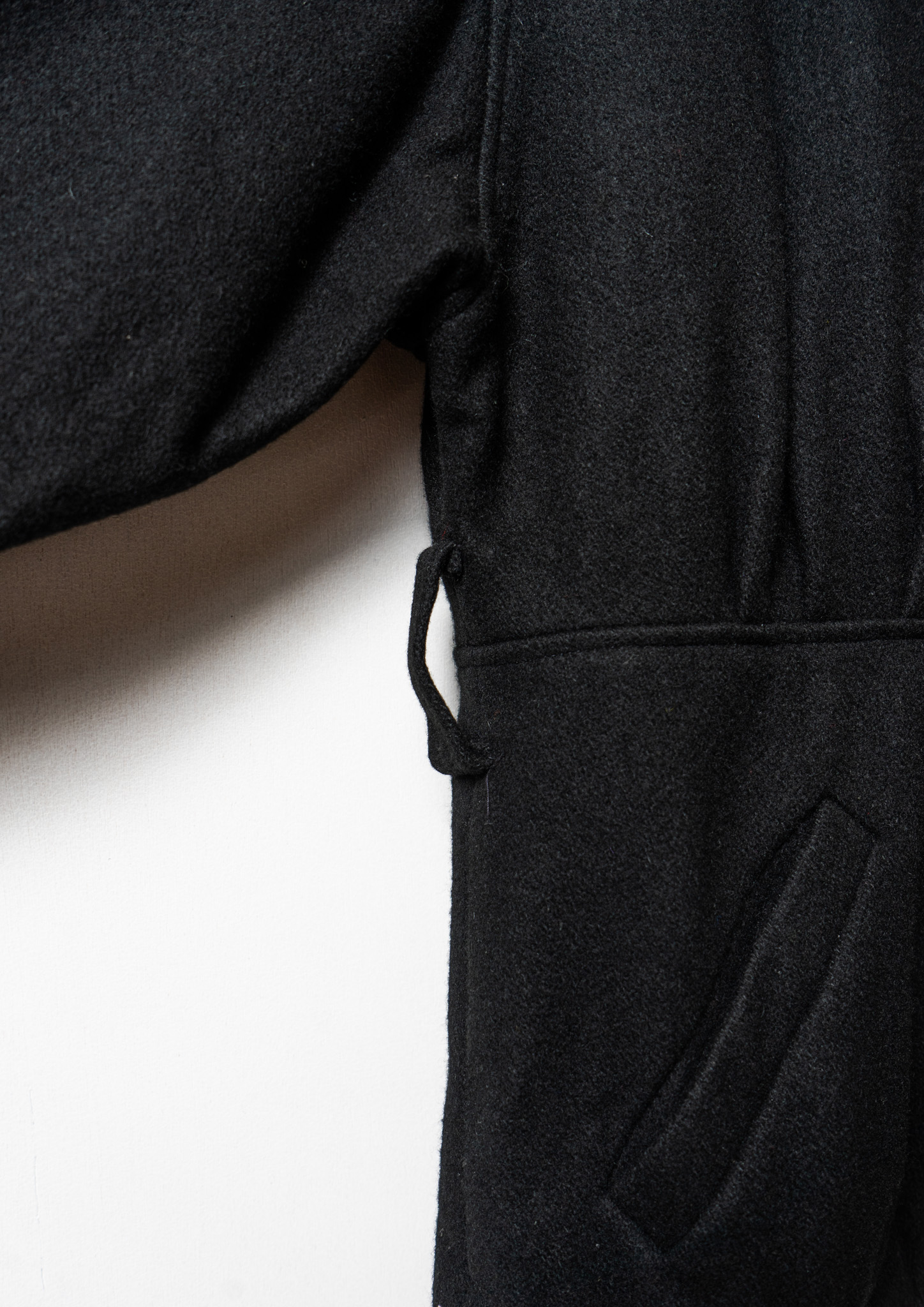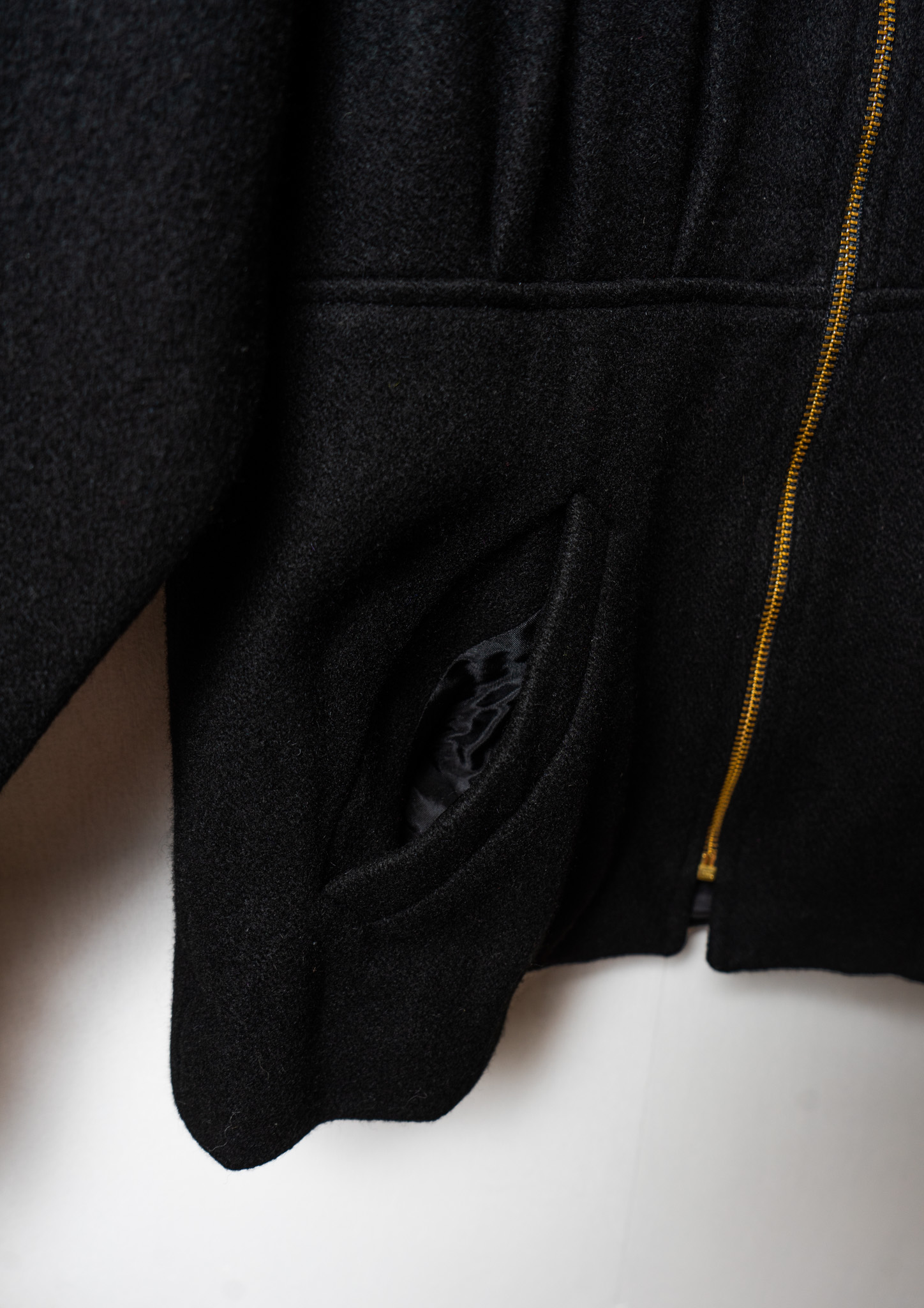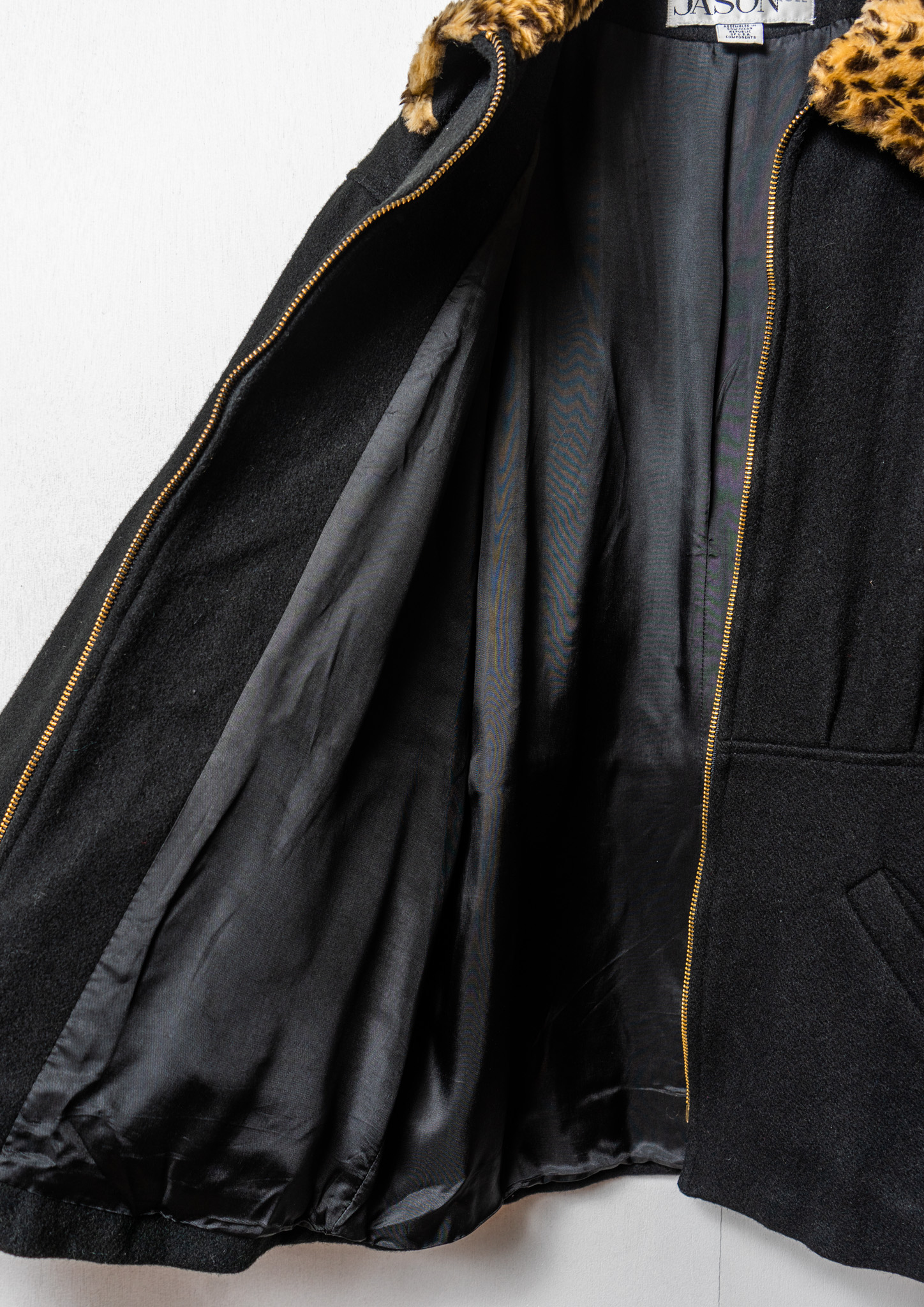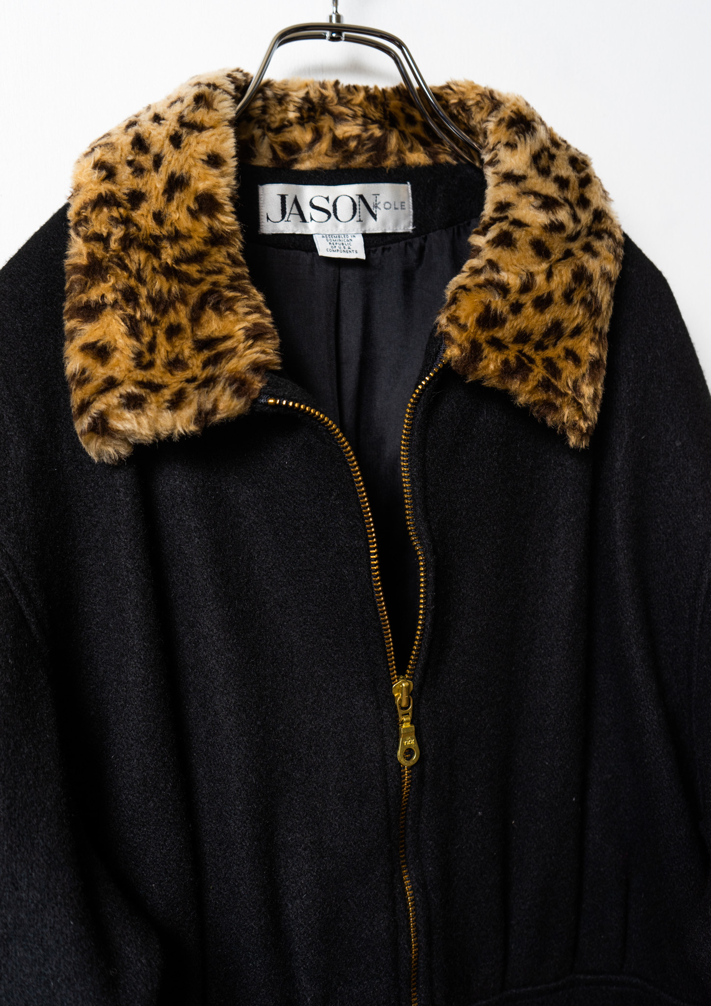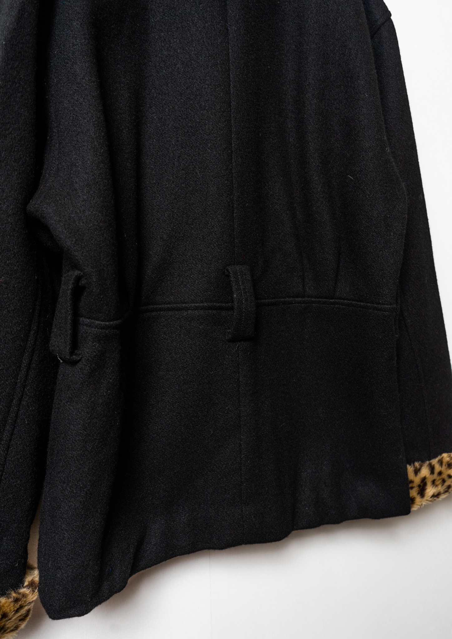 80's Double Pocket Design Point Leopard Pattern Black Wool Jacket