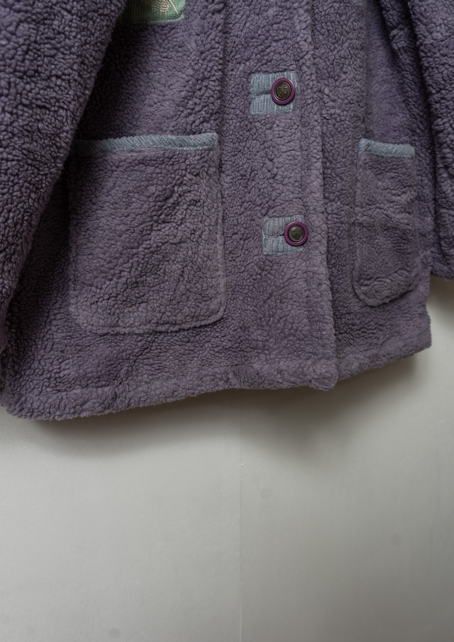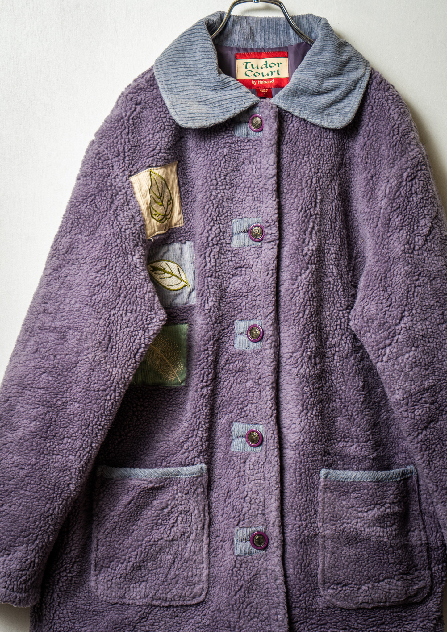 Leaf Embroidery × Double Pocket Design Point Corduroy Pattern Light Purple Boa Jacket