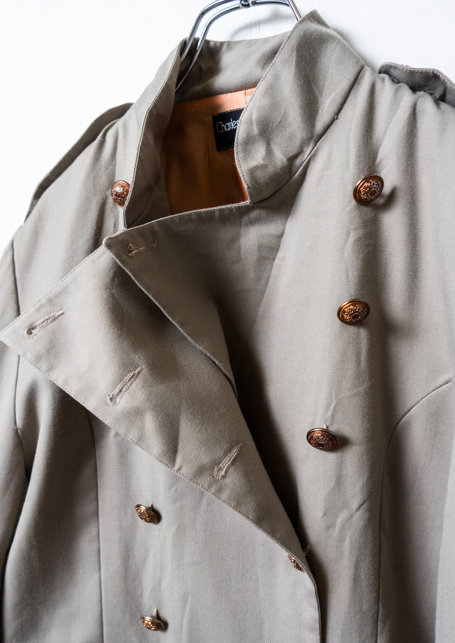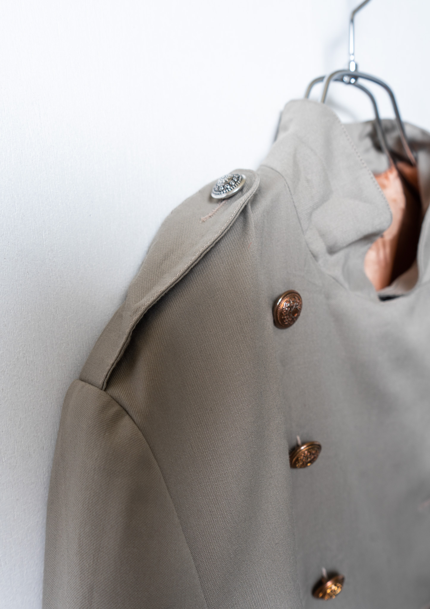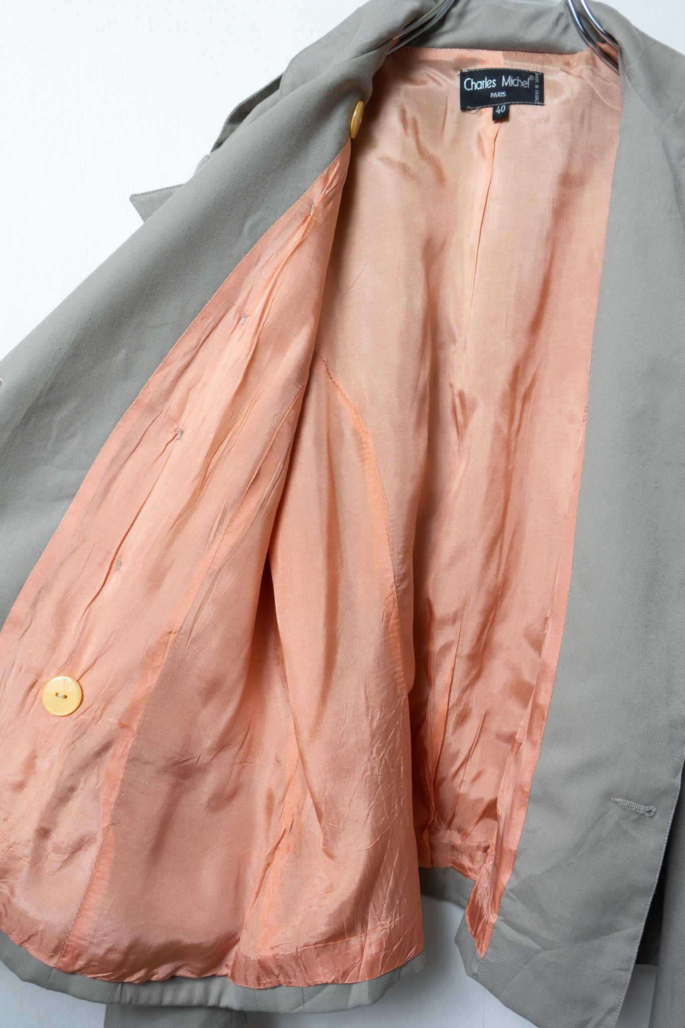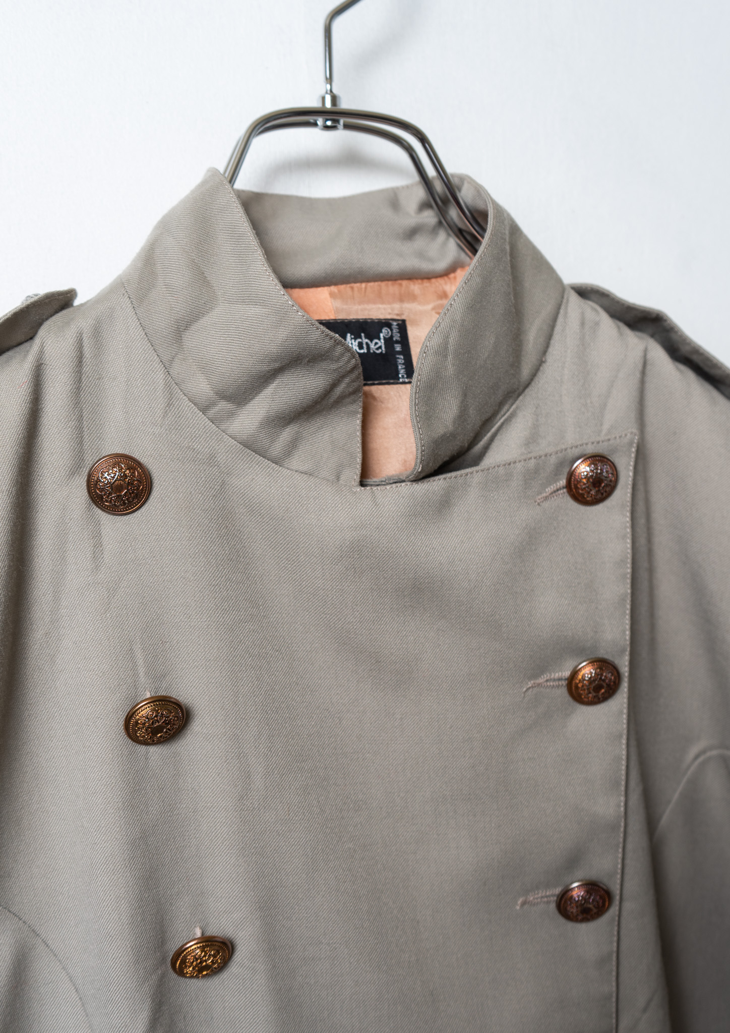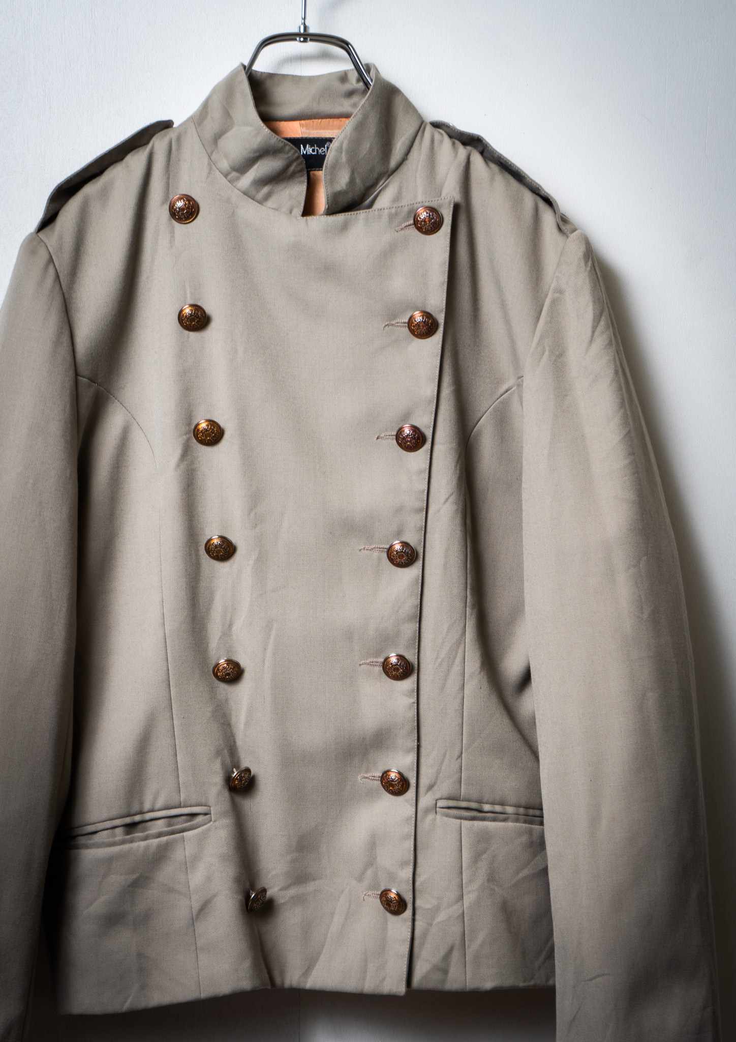80's France Double Button × Double Pocket Design Olive Gray Napoleon Jacket