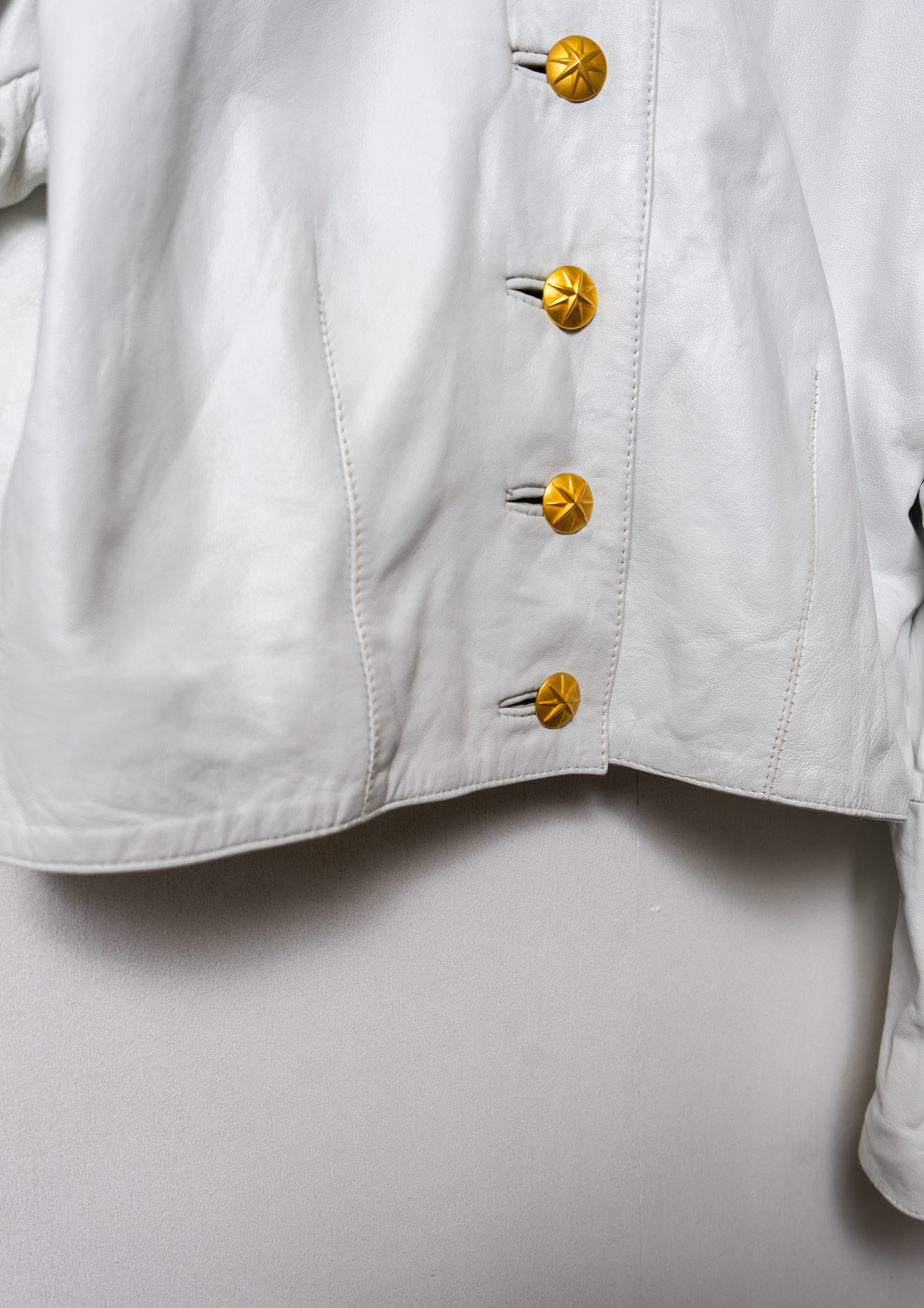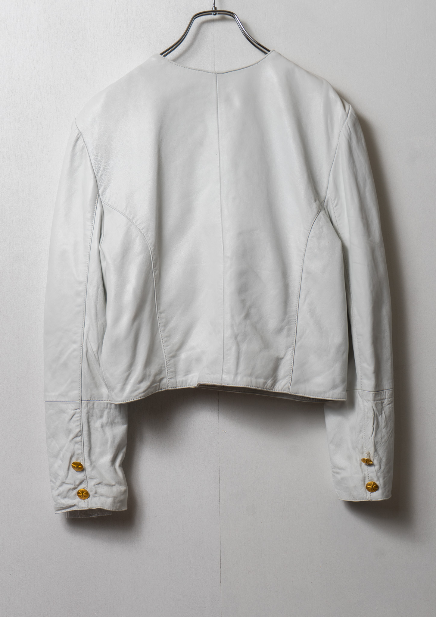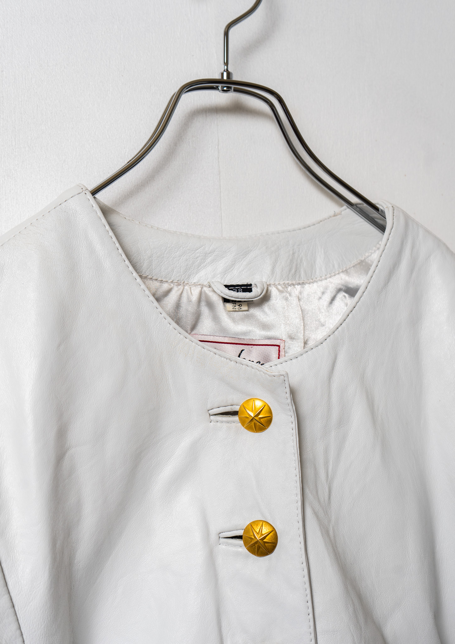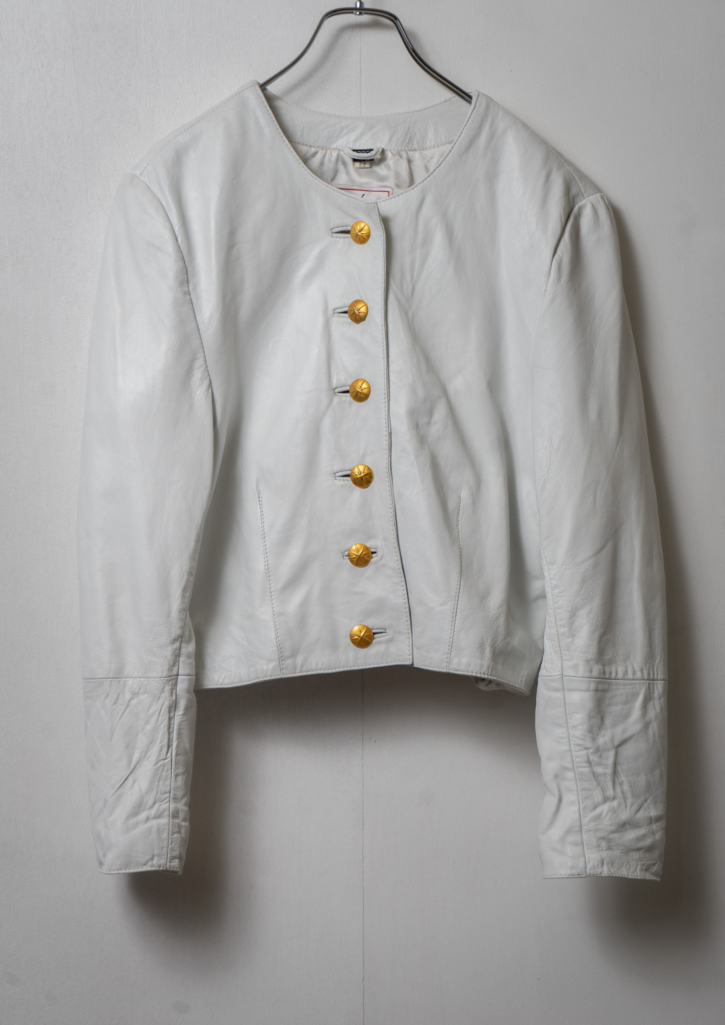 80's Double Gold Button × Fur Design Black Leather Jacket