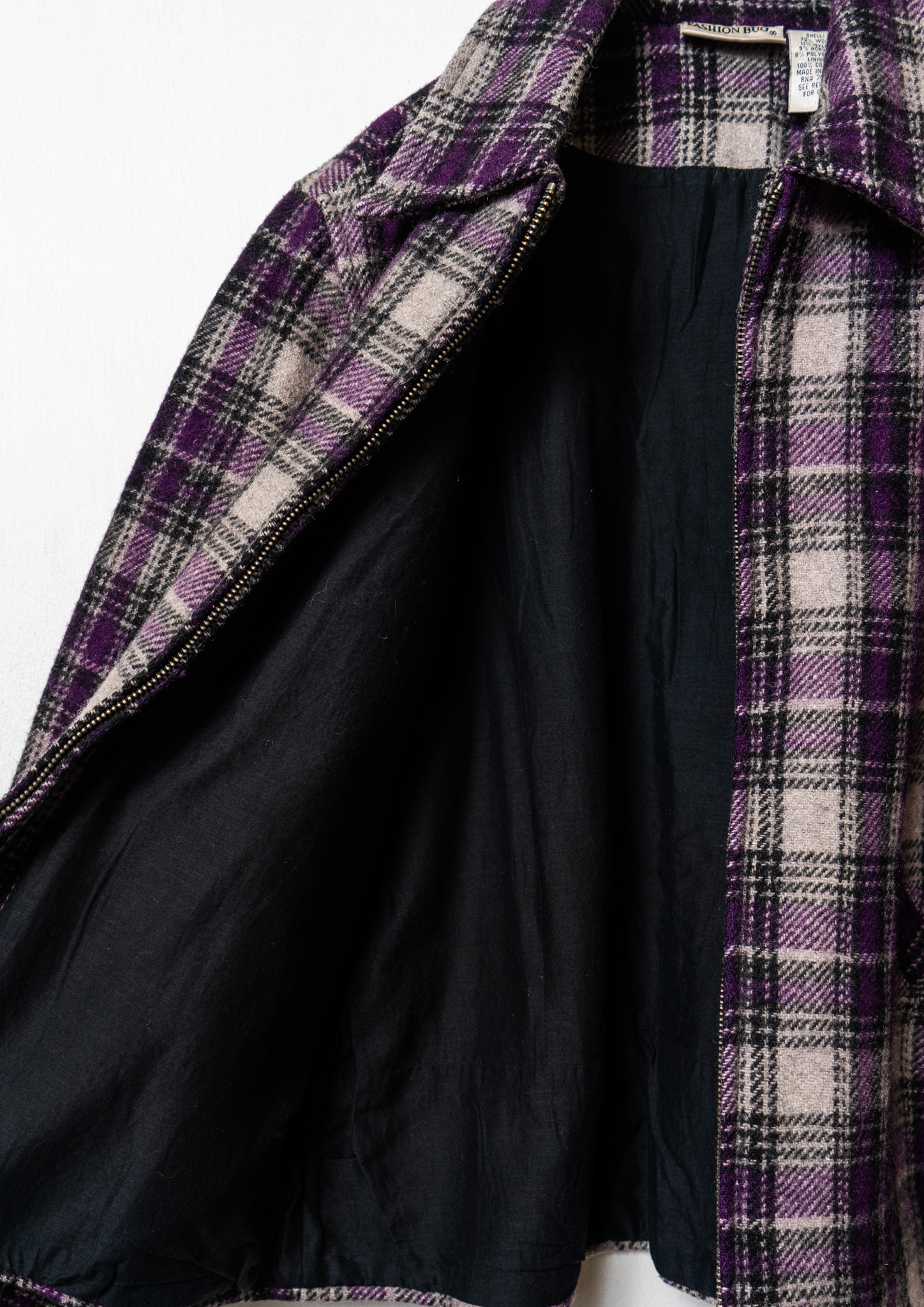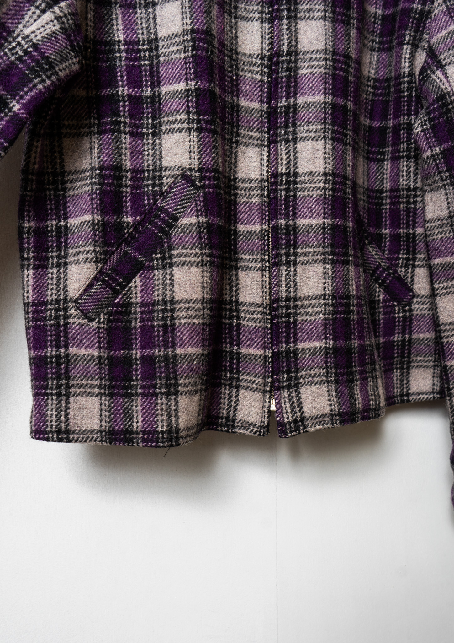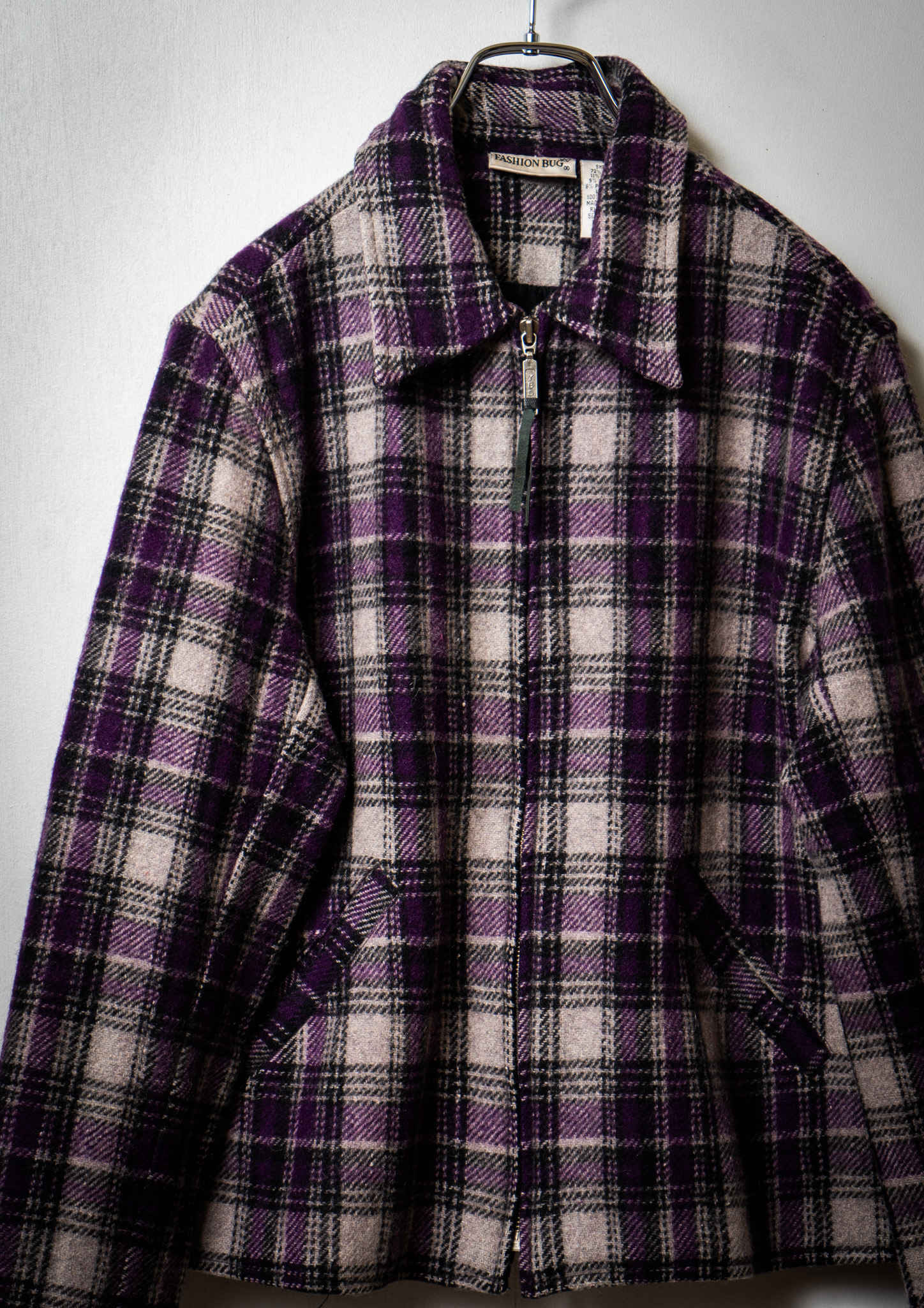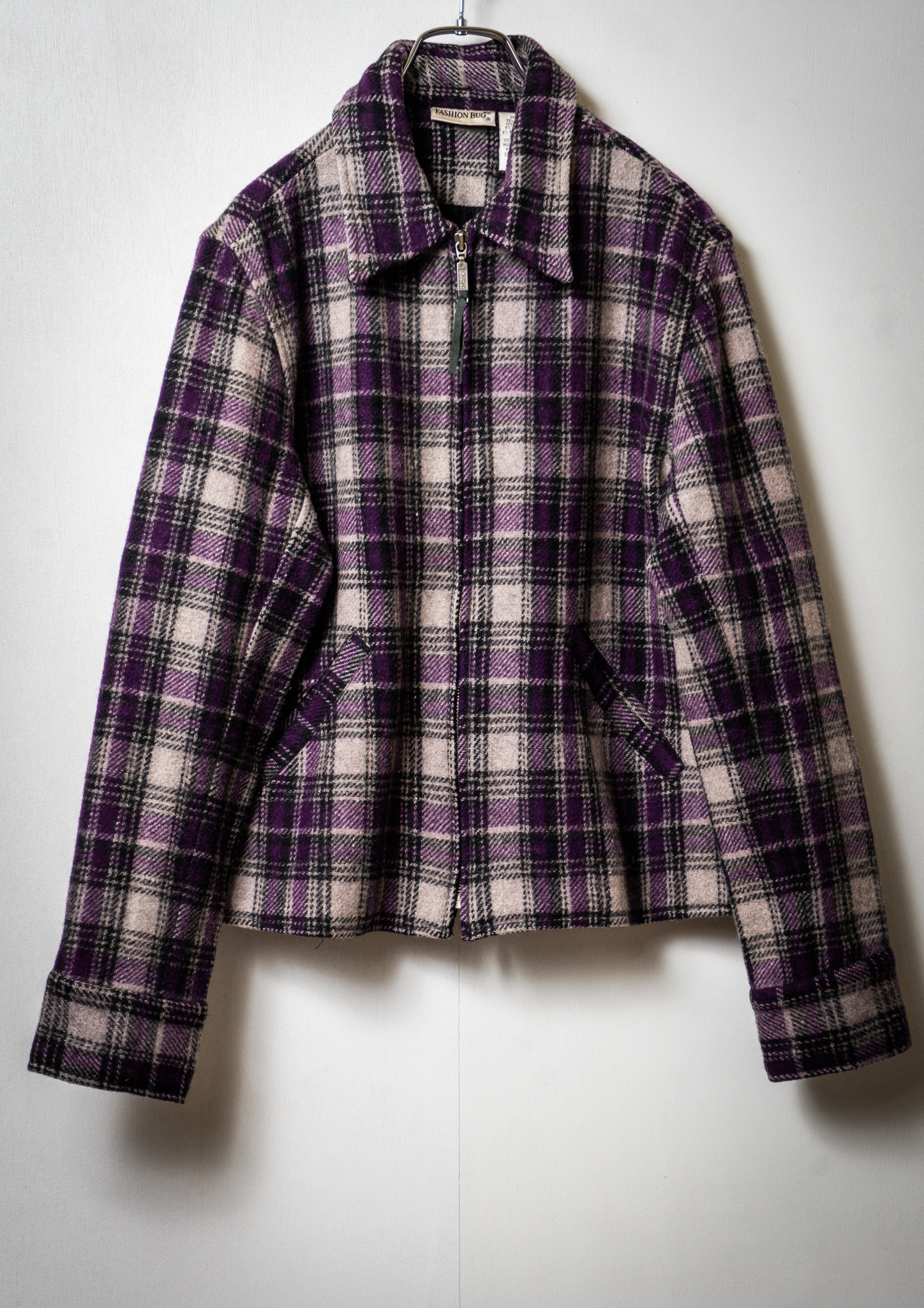 90's Double Pocket Design Check Pattern Purple Jacket