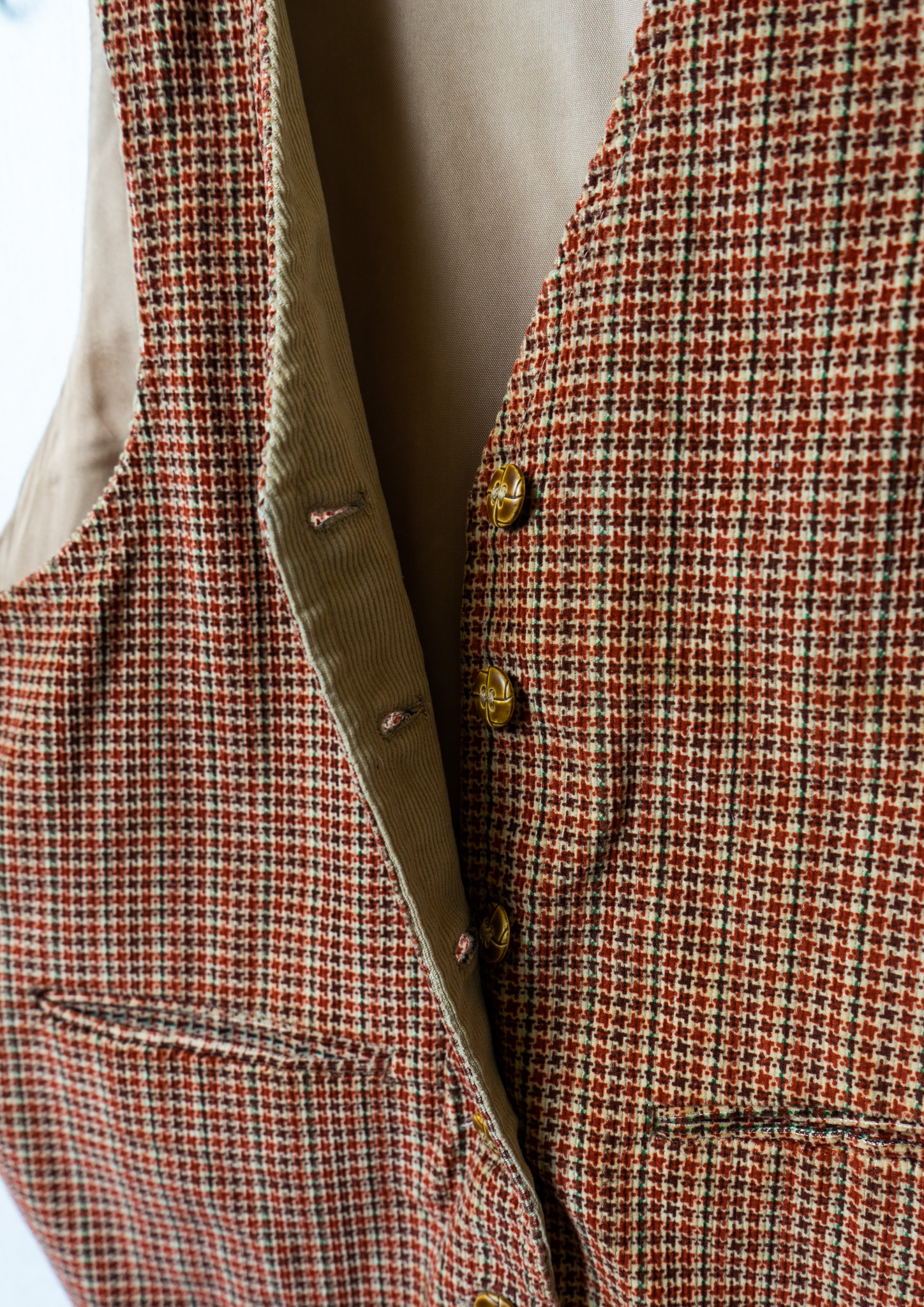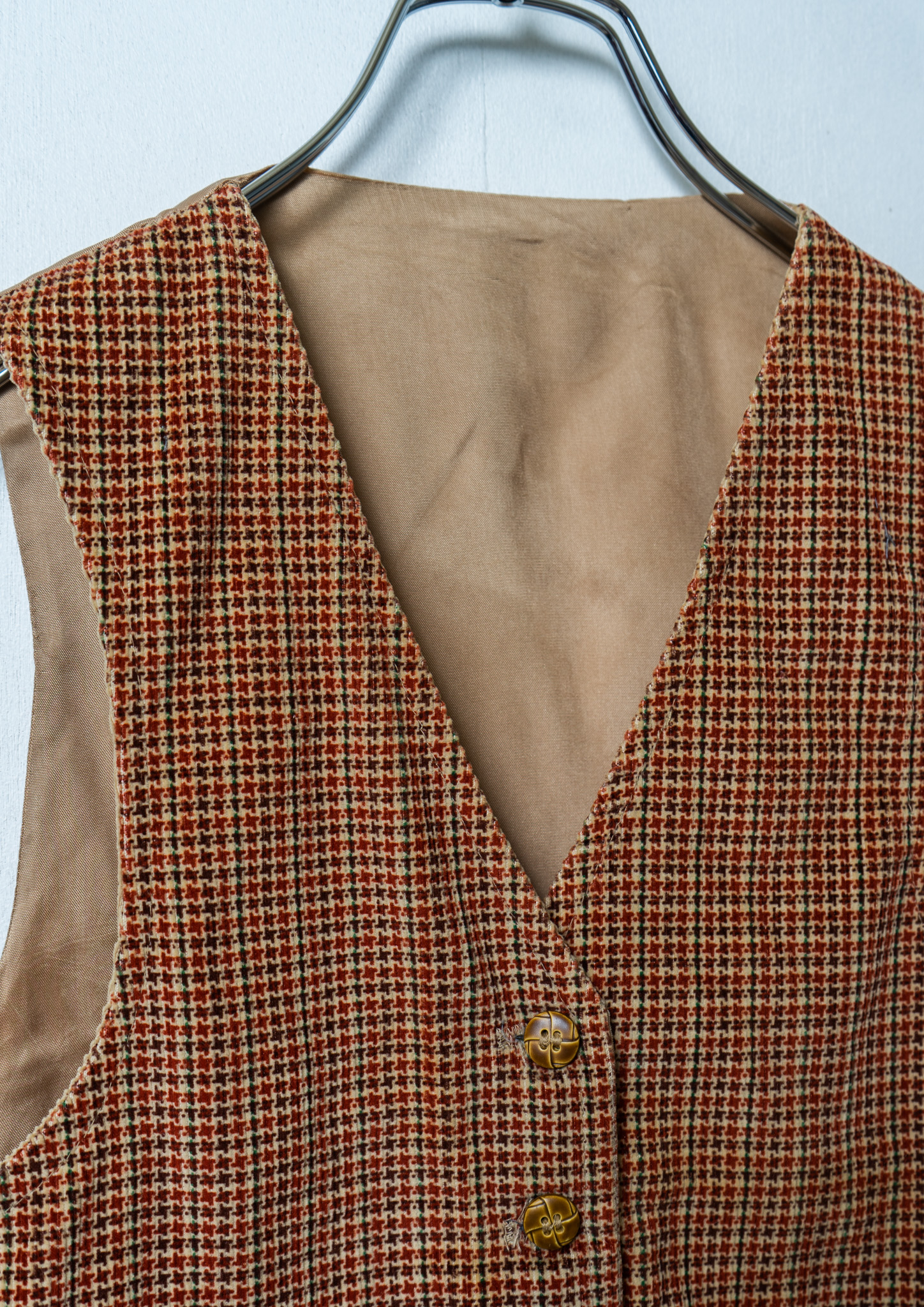 Reversible Houndstooth × Beige Corduroy Pattern Vest