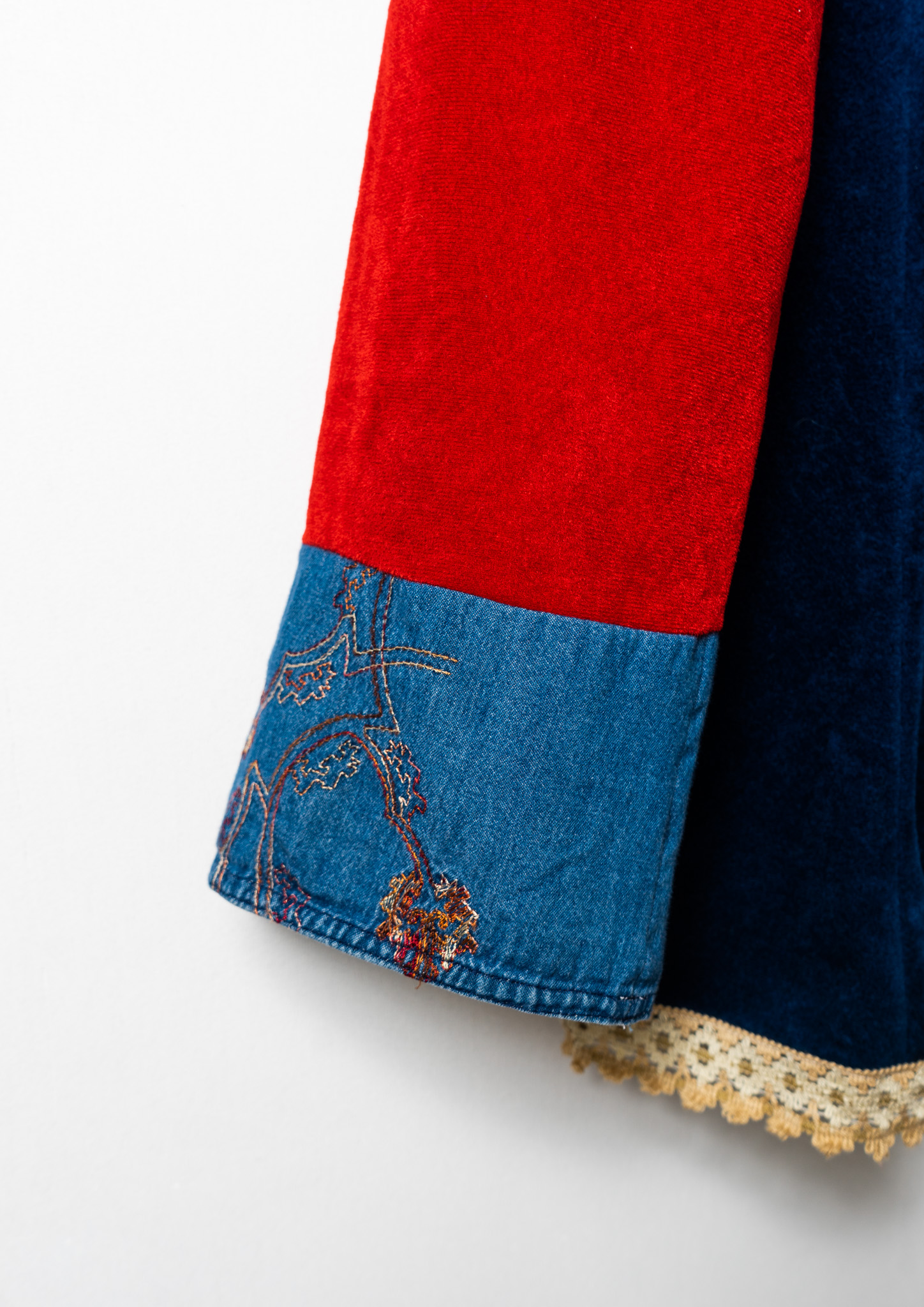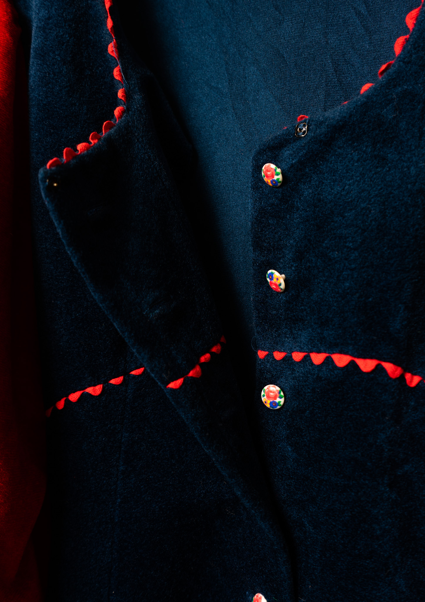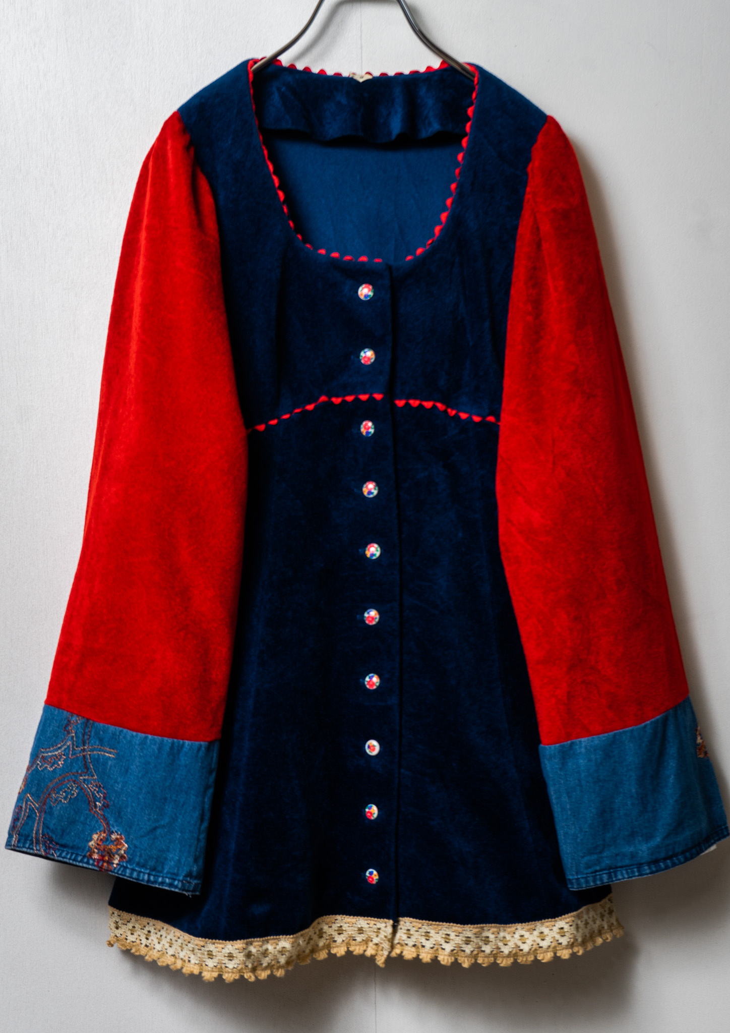 60~70's USA Flower Button Design Red ×Blue Pattern Tops