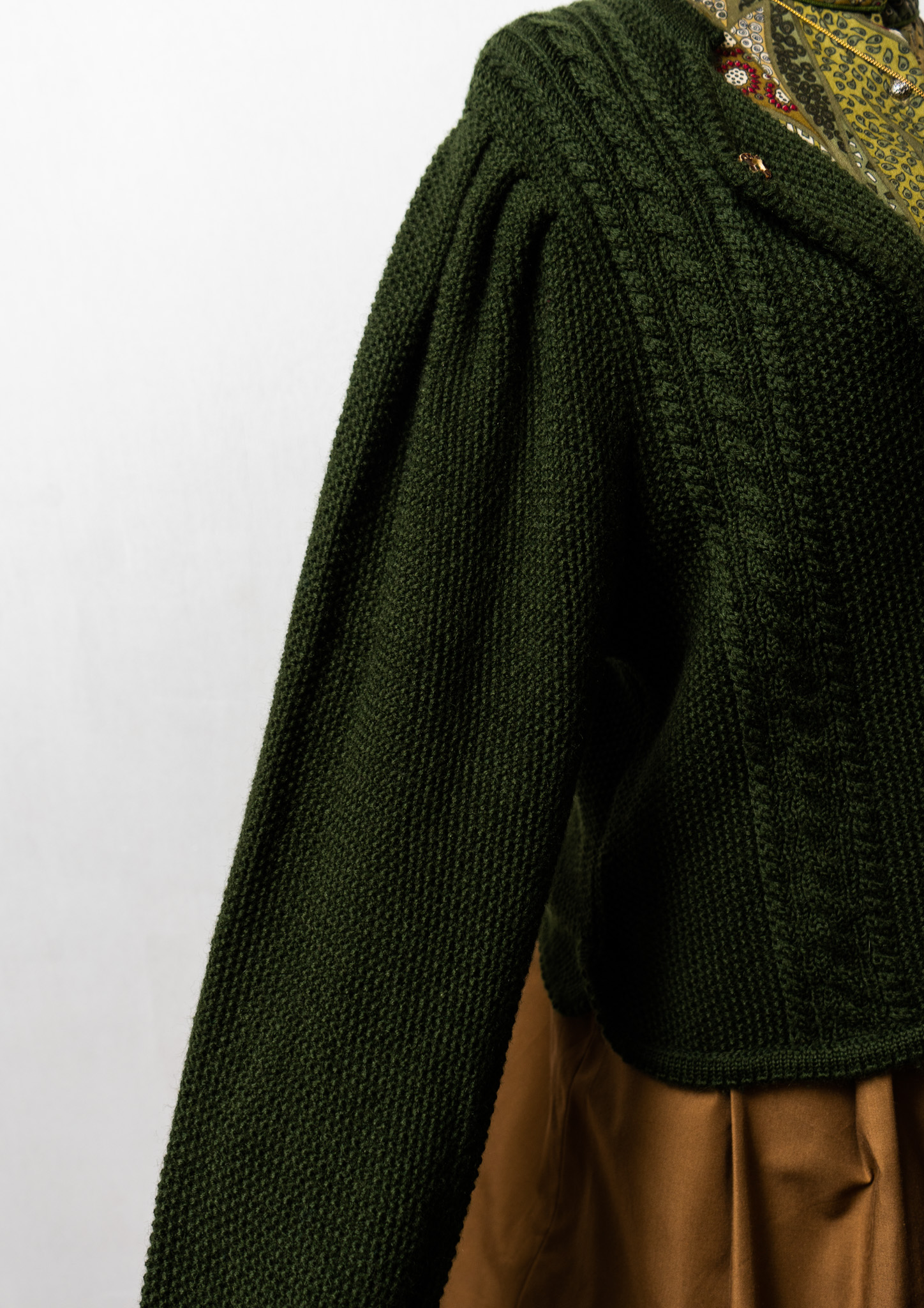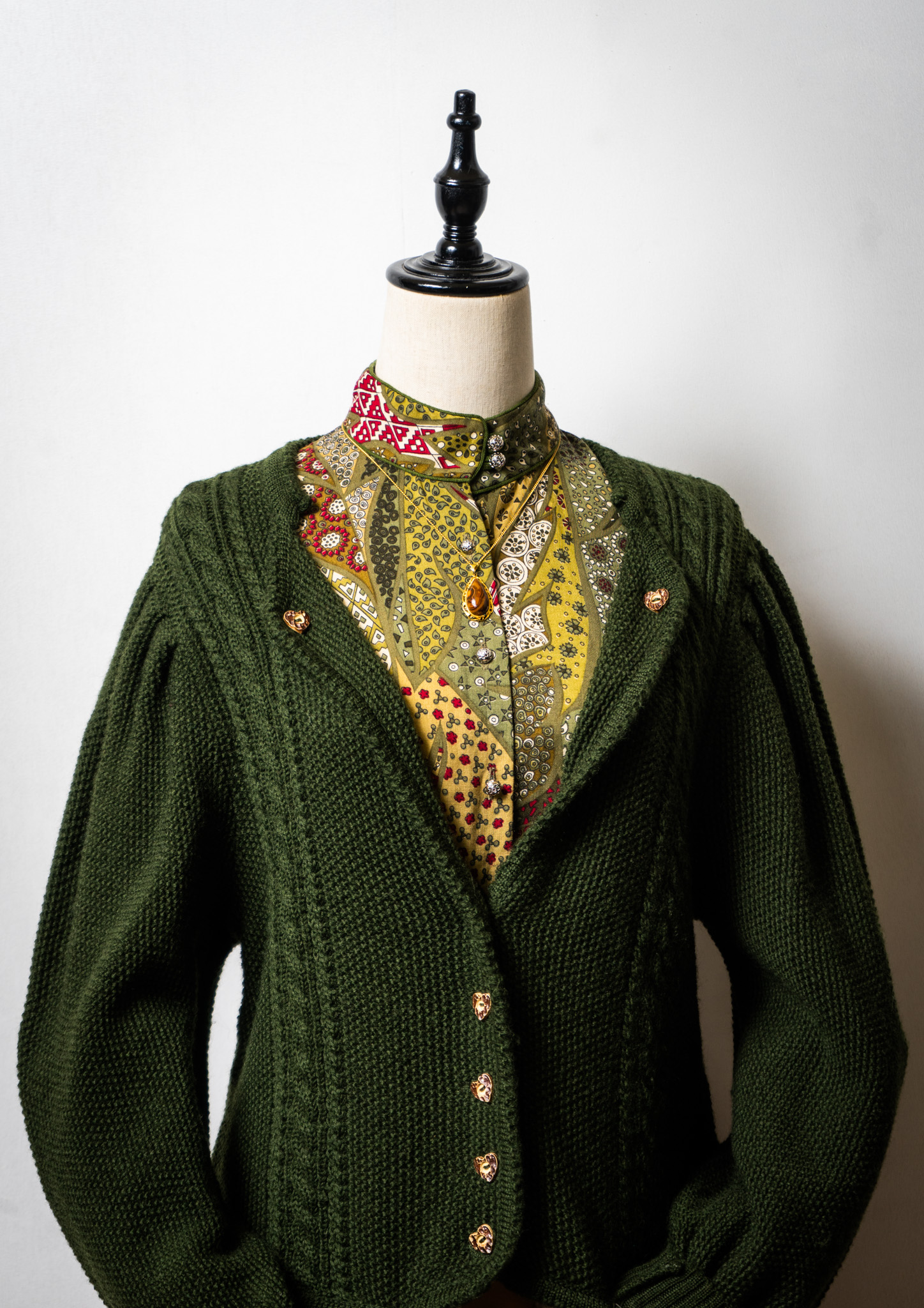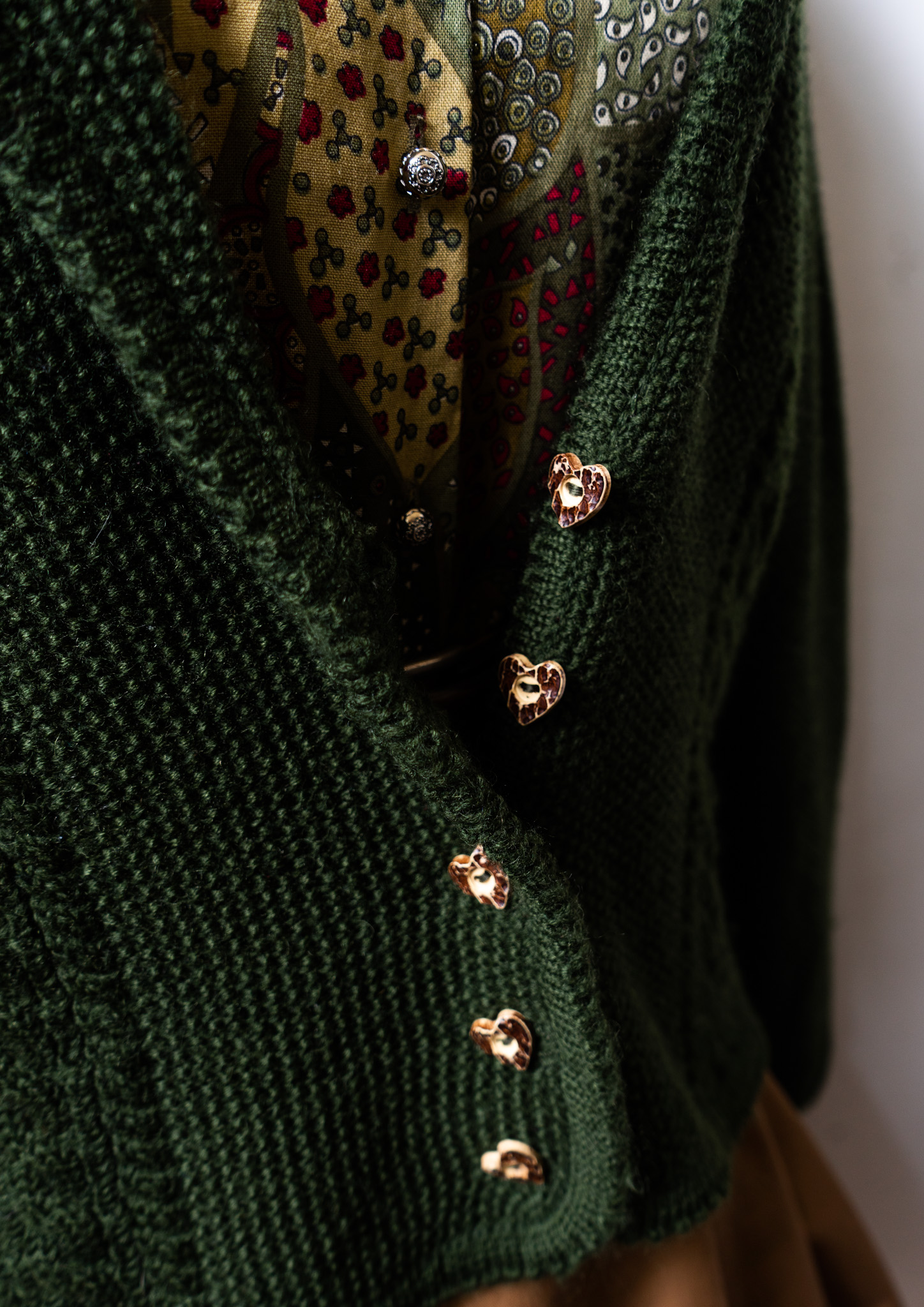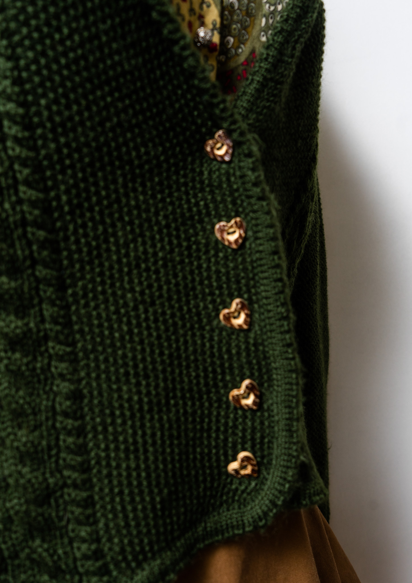 80~90's Euro Heat Tyrol Button Design Dark Green Knit Tyrol Cardigan