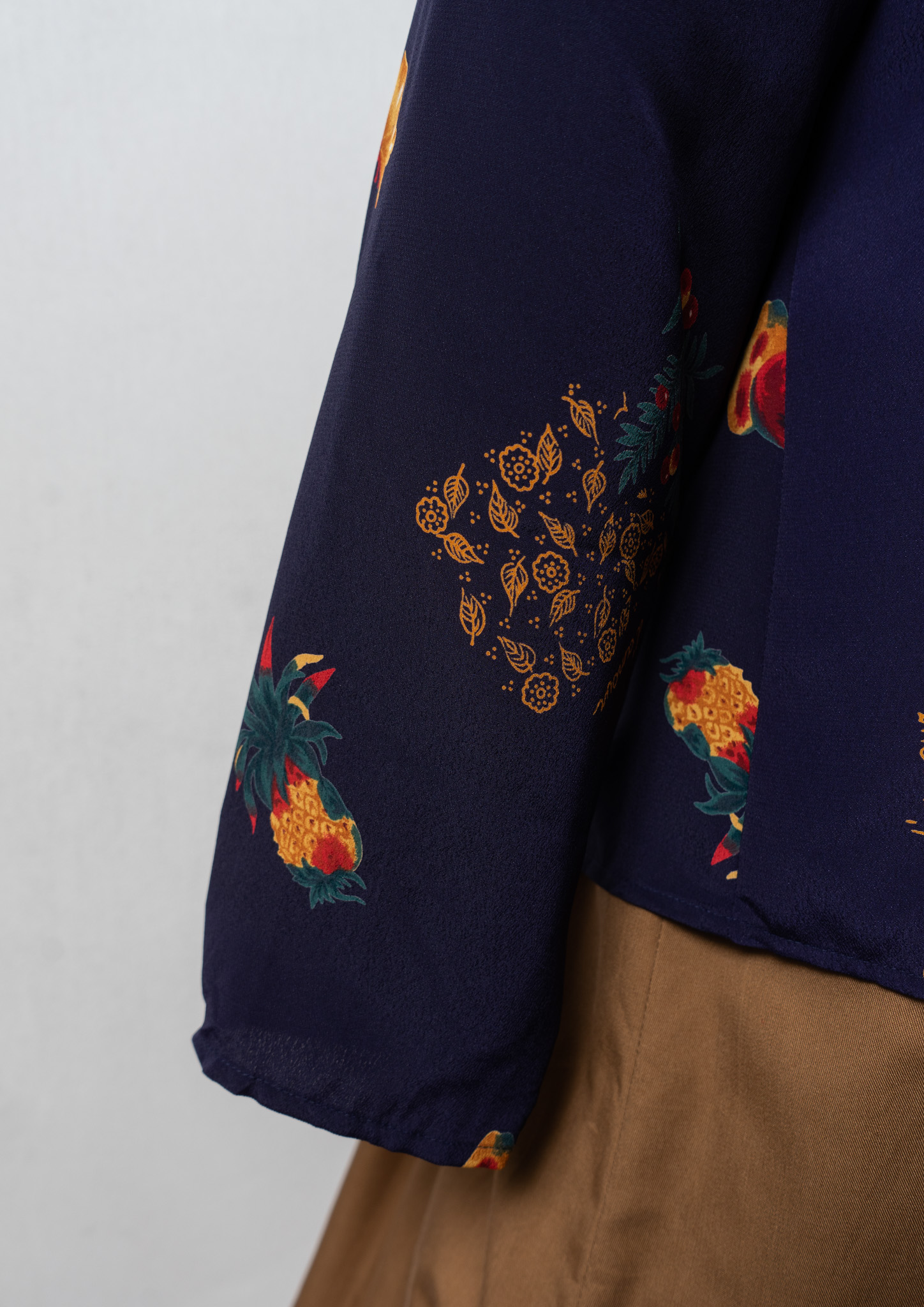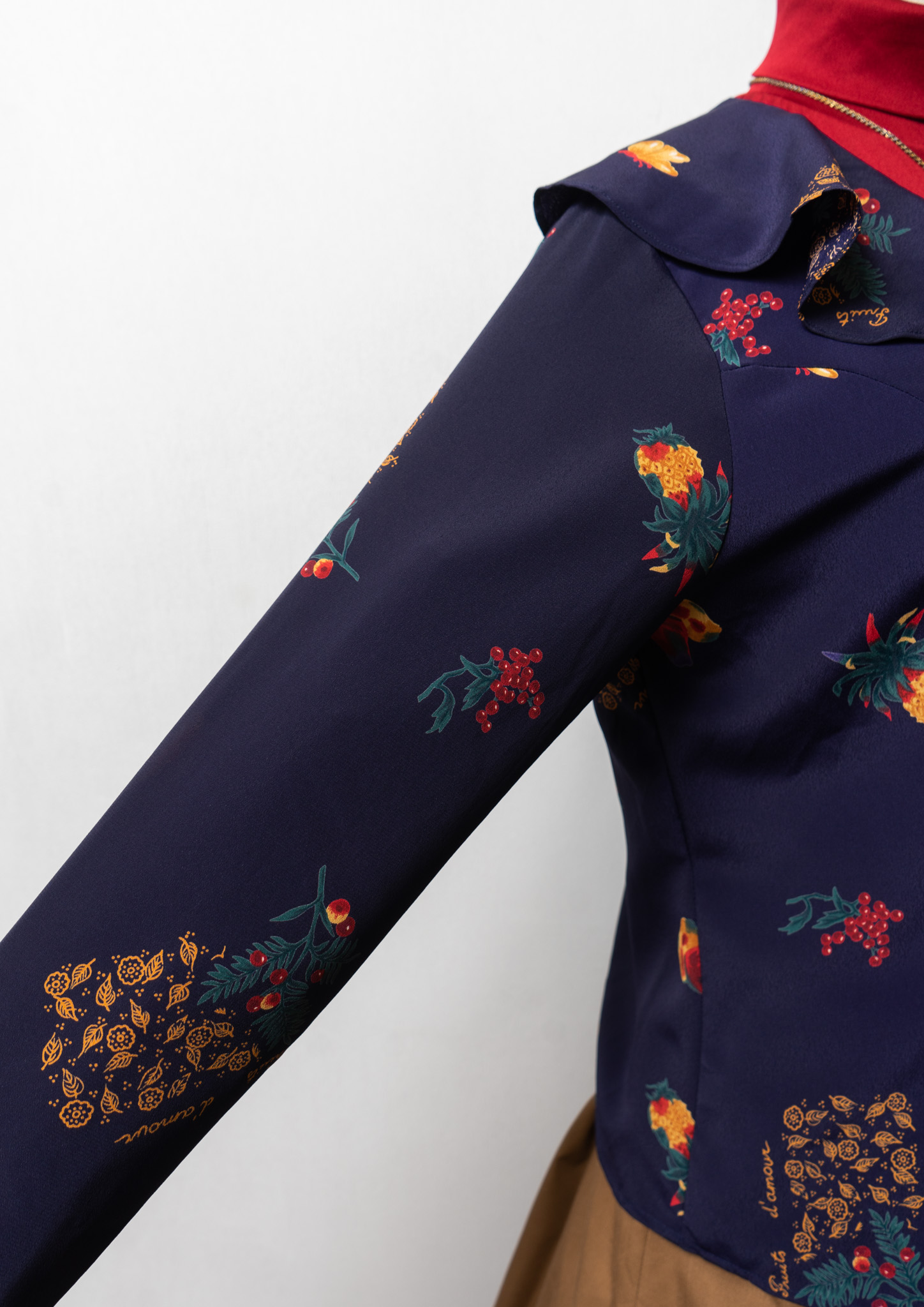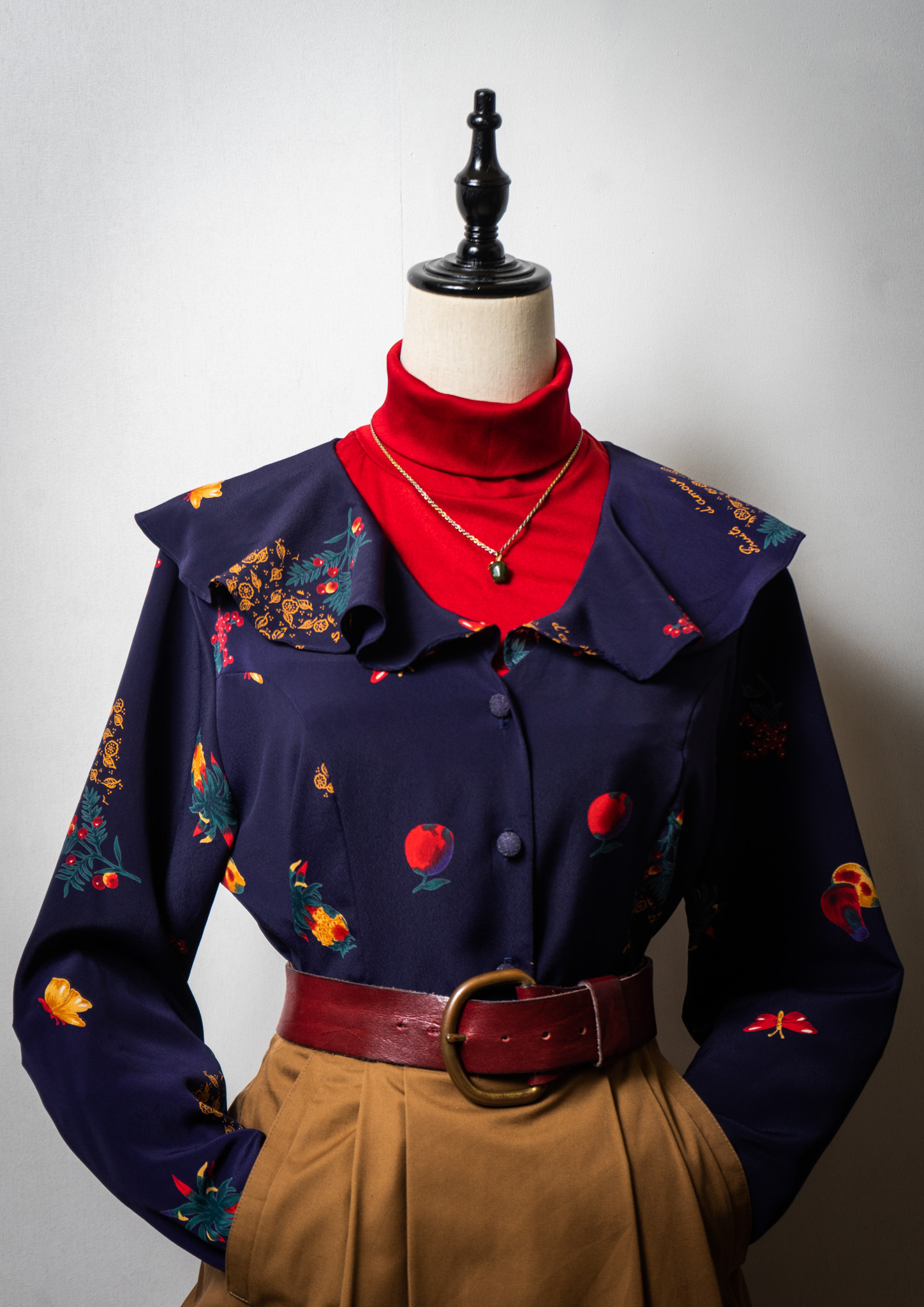 80~90's LESLIE FAY Peplum Design Colorful Botanical Pattern Blouse