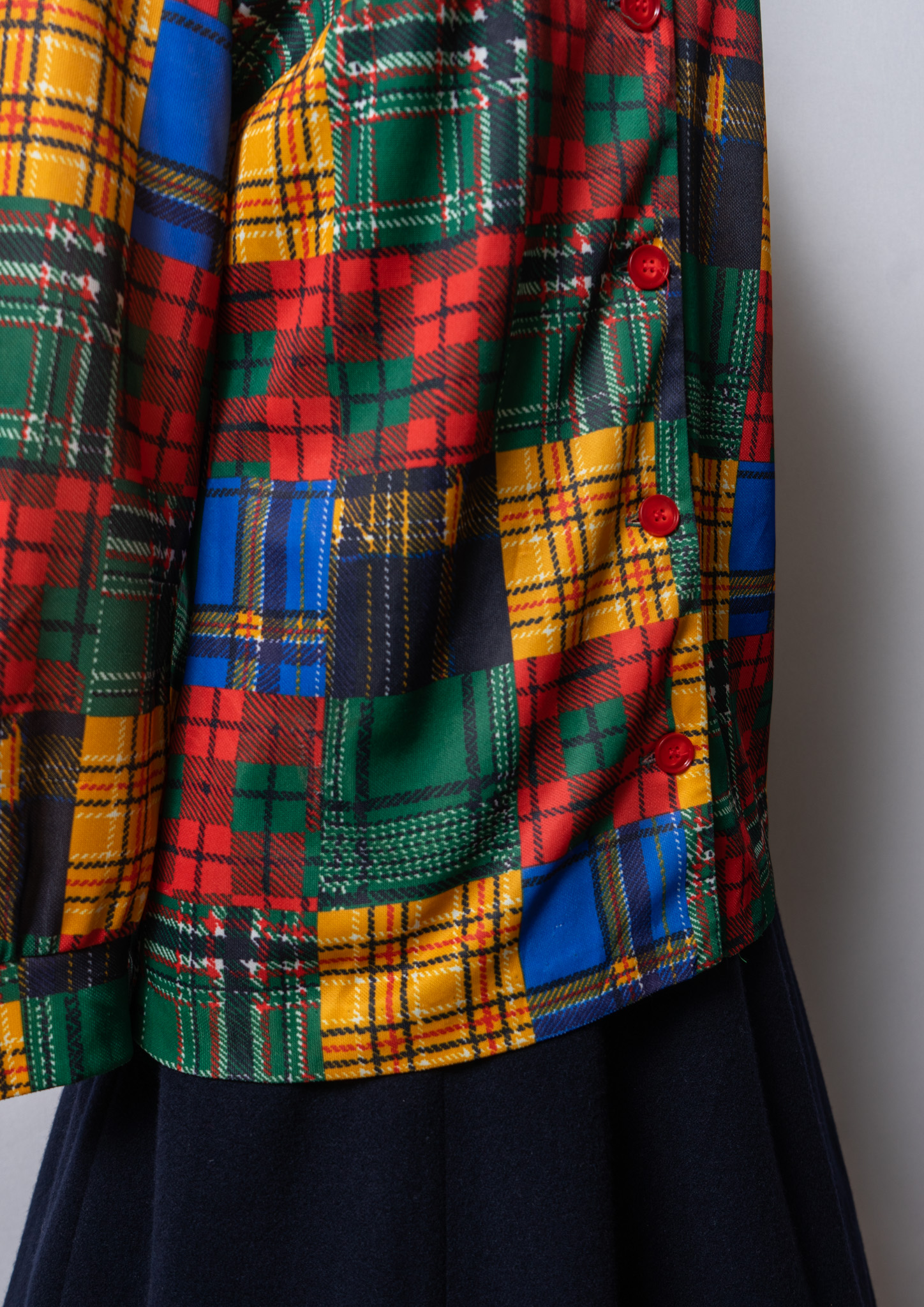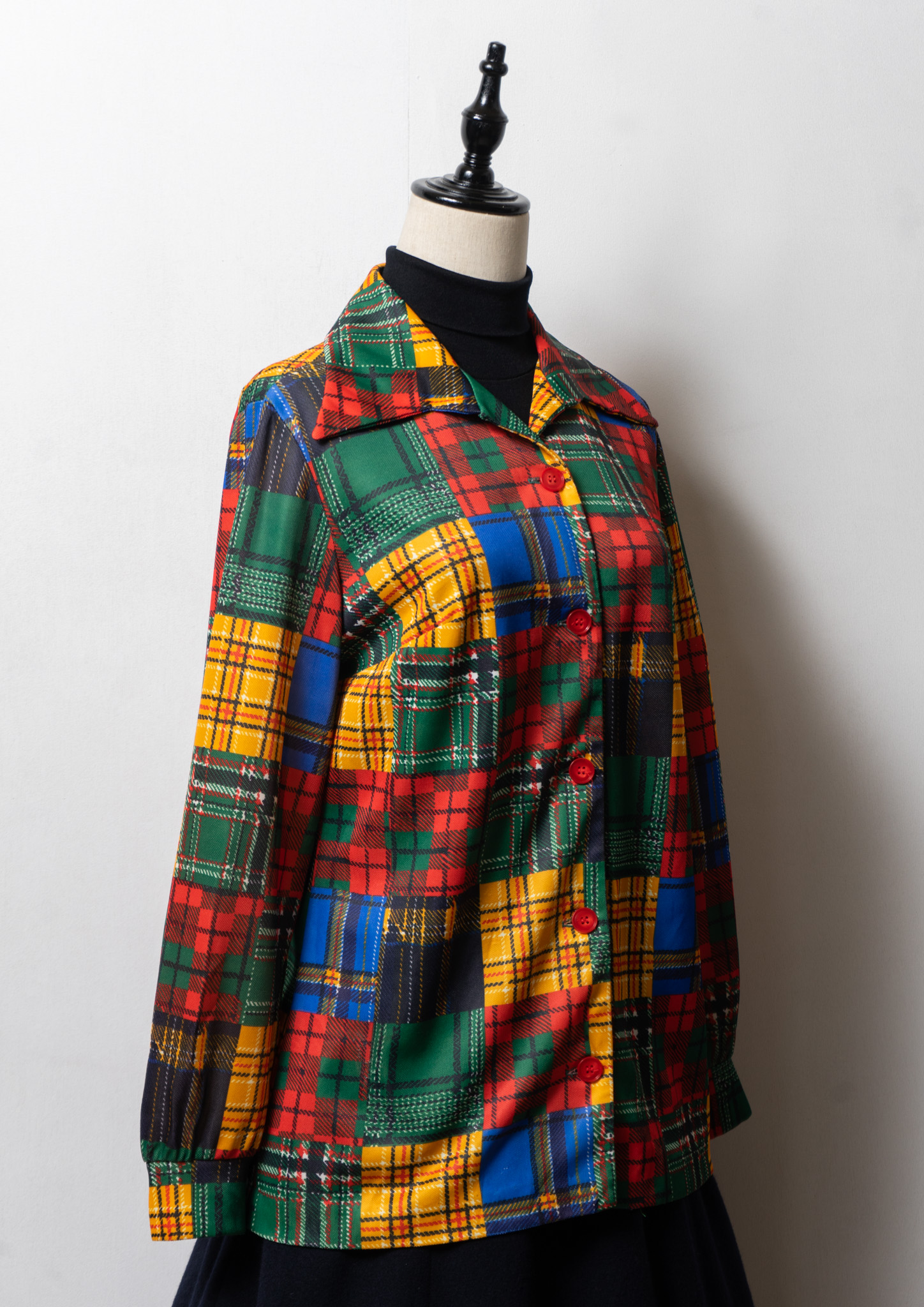 80~90's Euro Multi Botanical Like Motif Art Pattern Green Blouse
