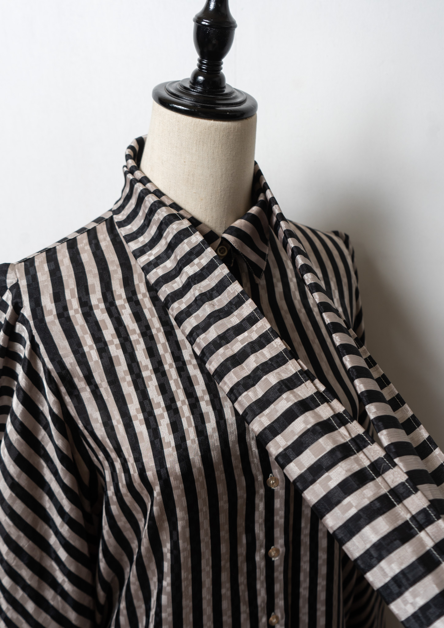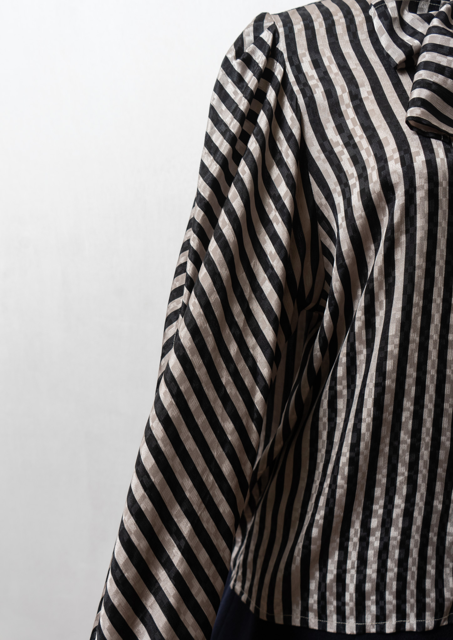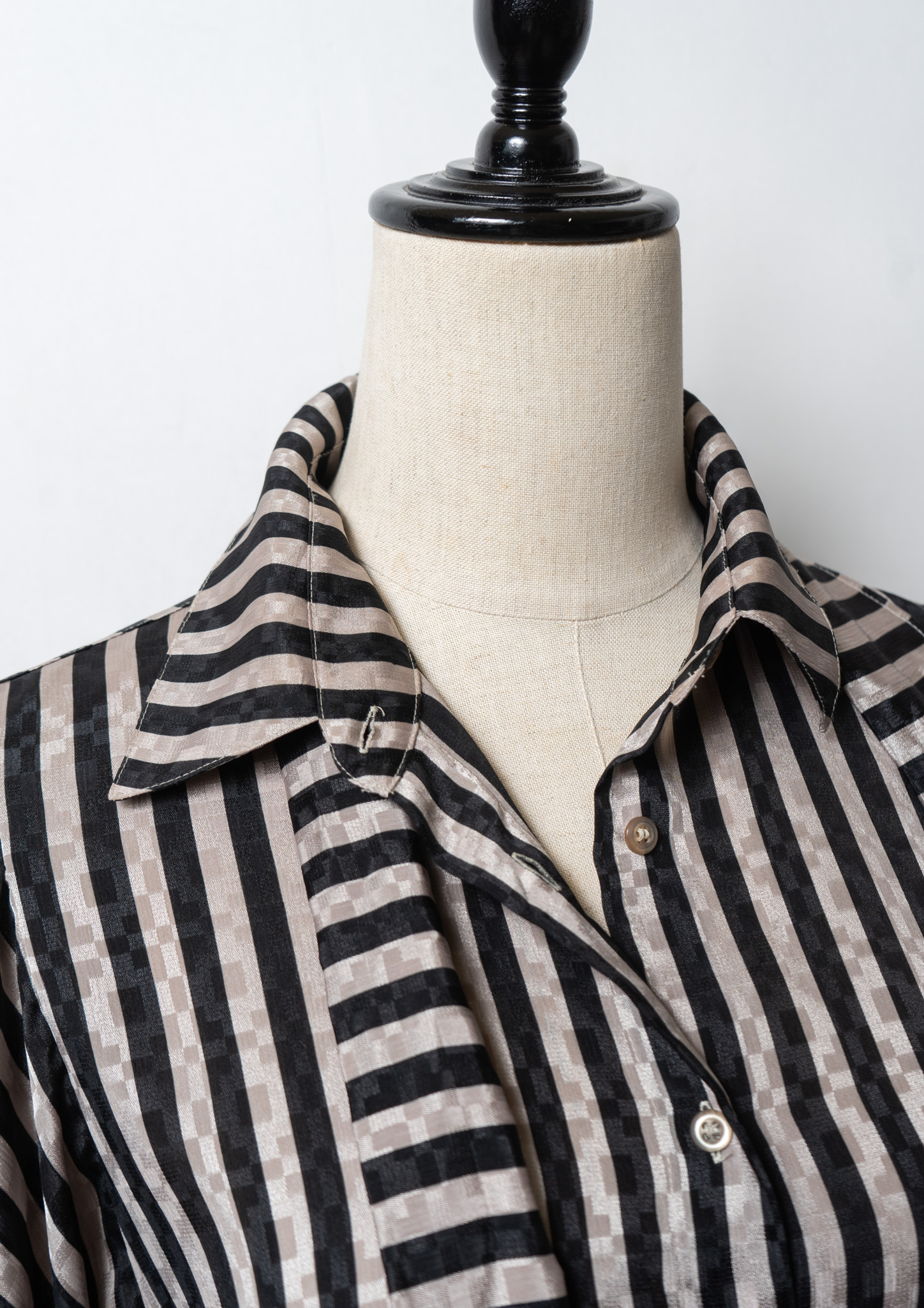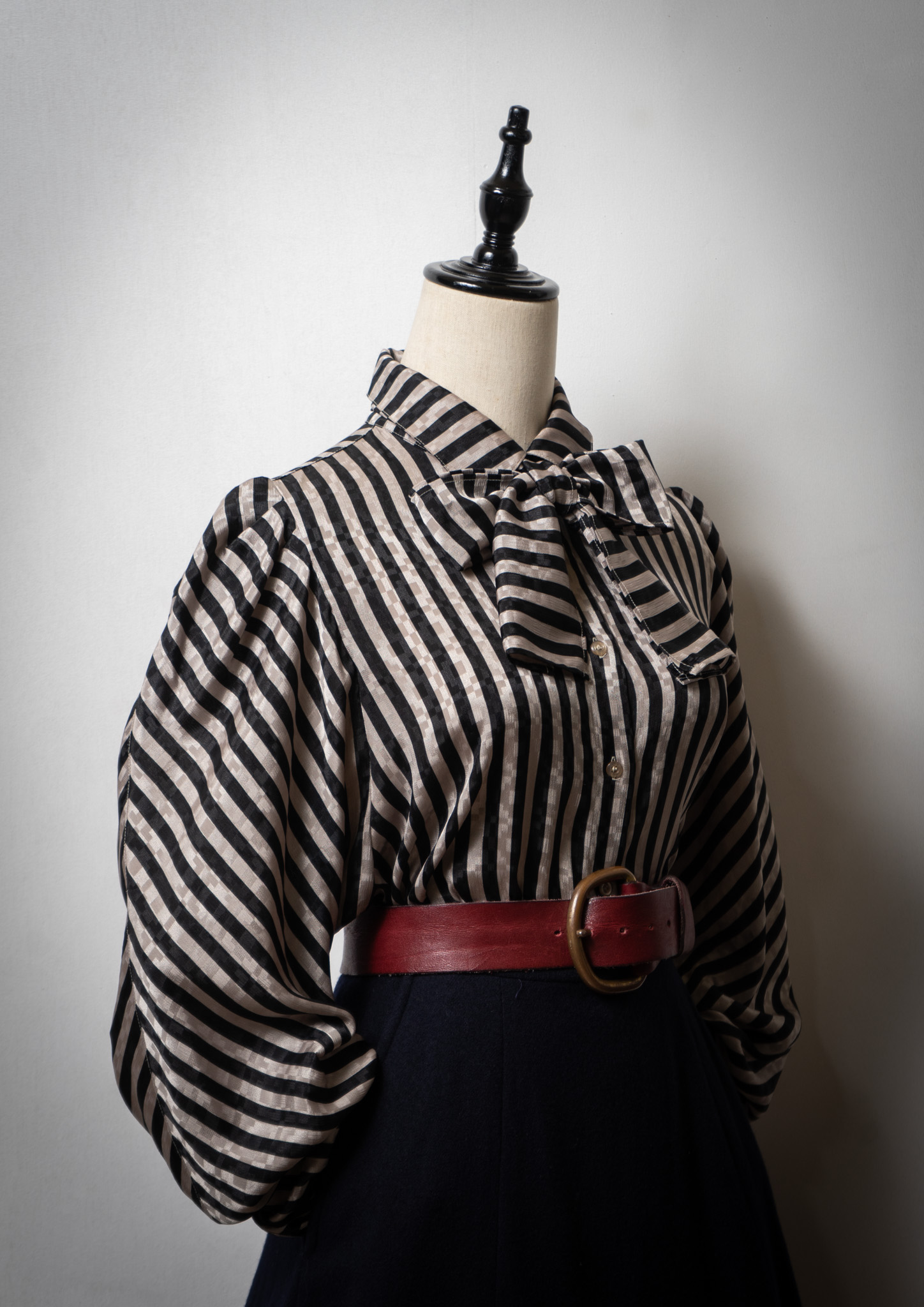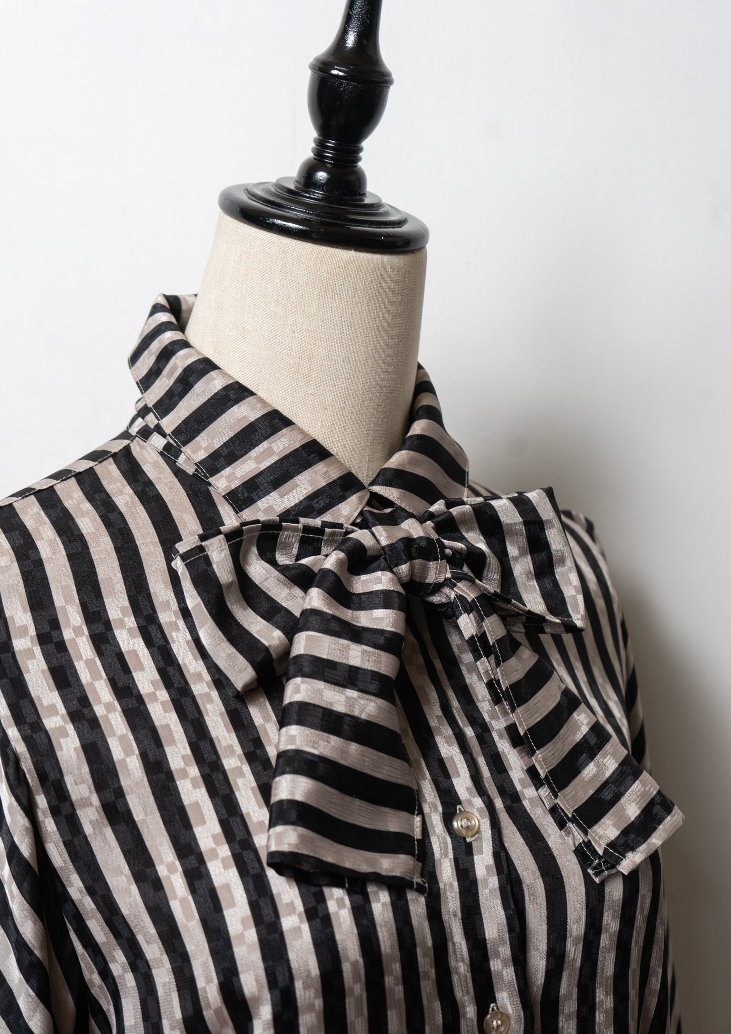 80's Euro Mosaic × Stripe Glossy Bow-Tie Blouse