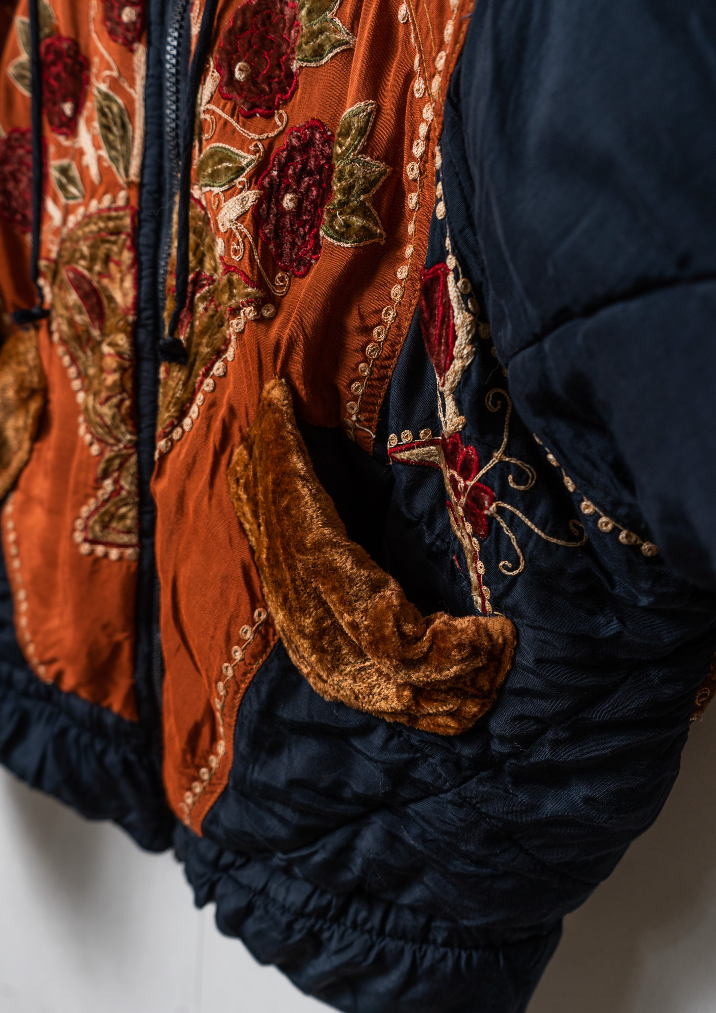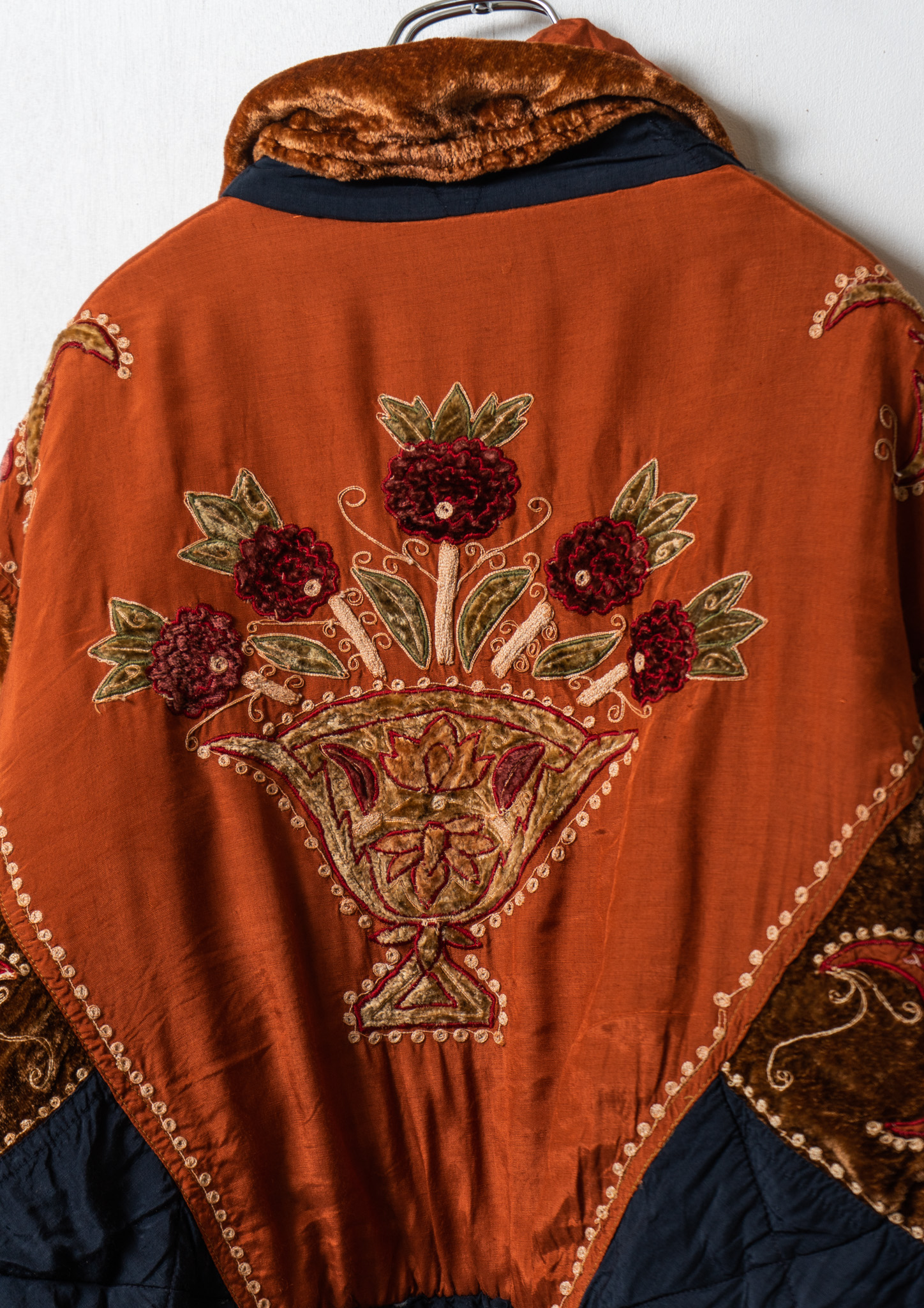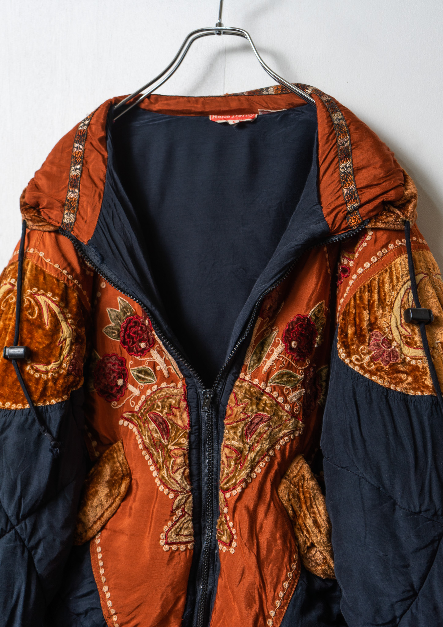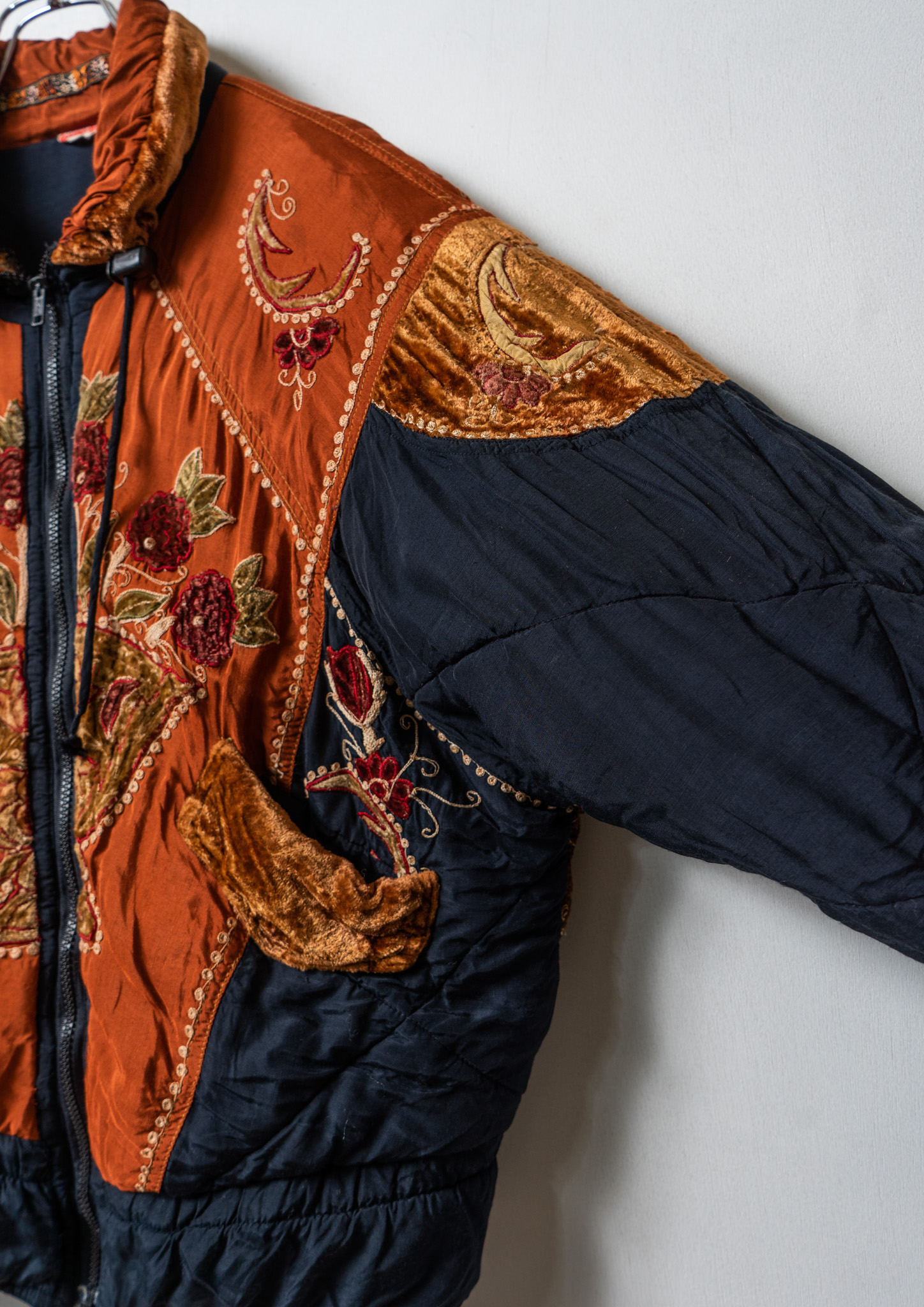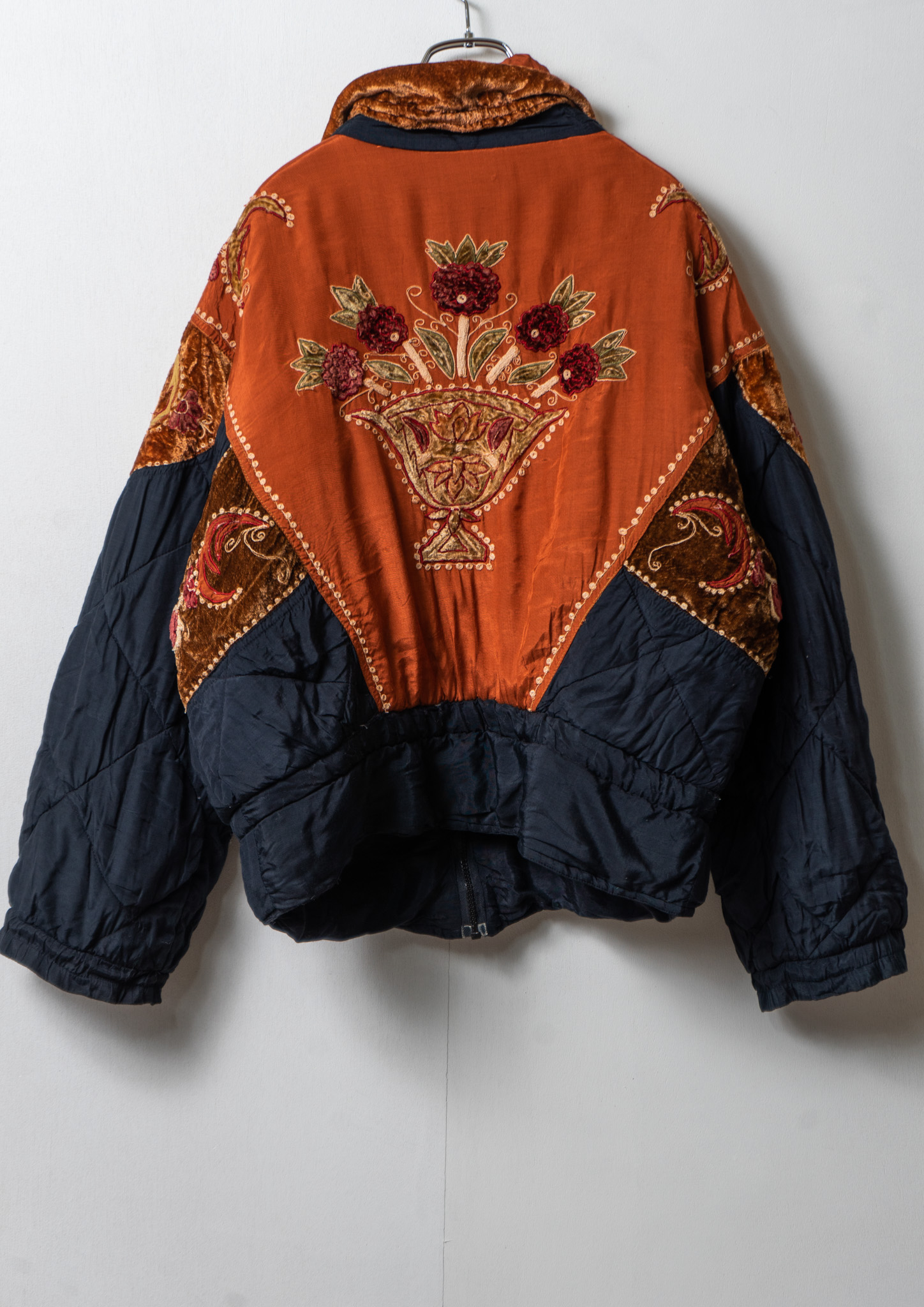 80’s Double Pocket Design Botanical Embroidery Pattern× Black Quilting Jacket