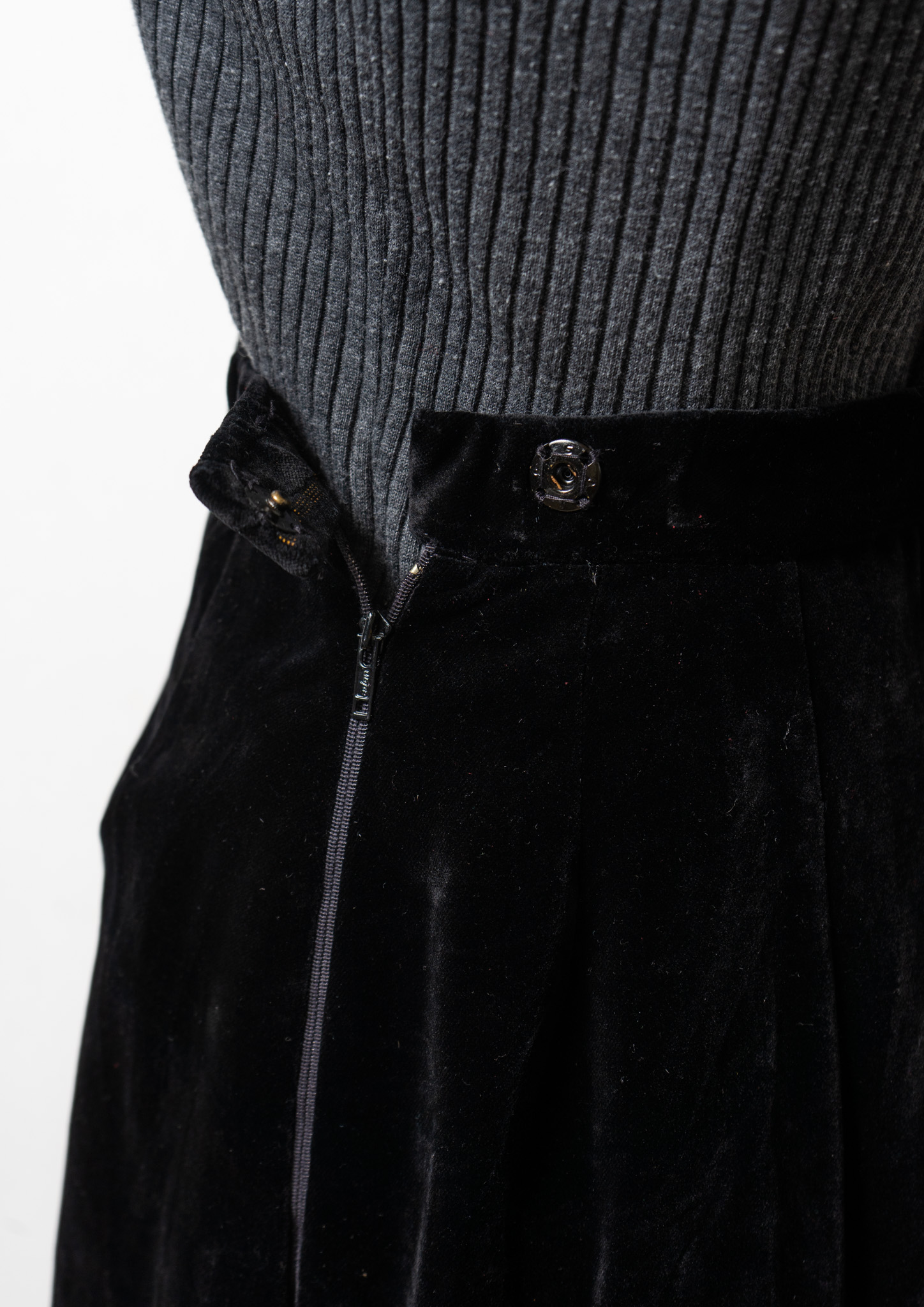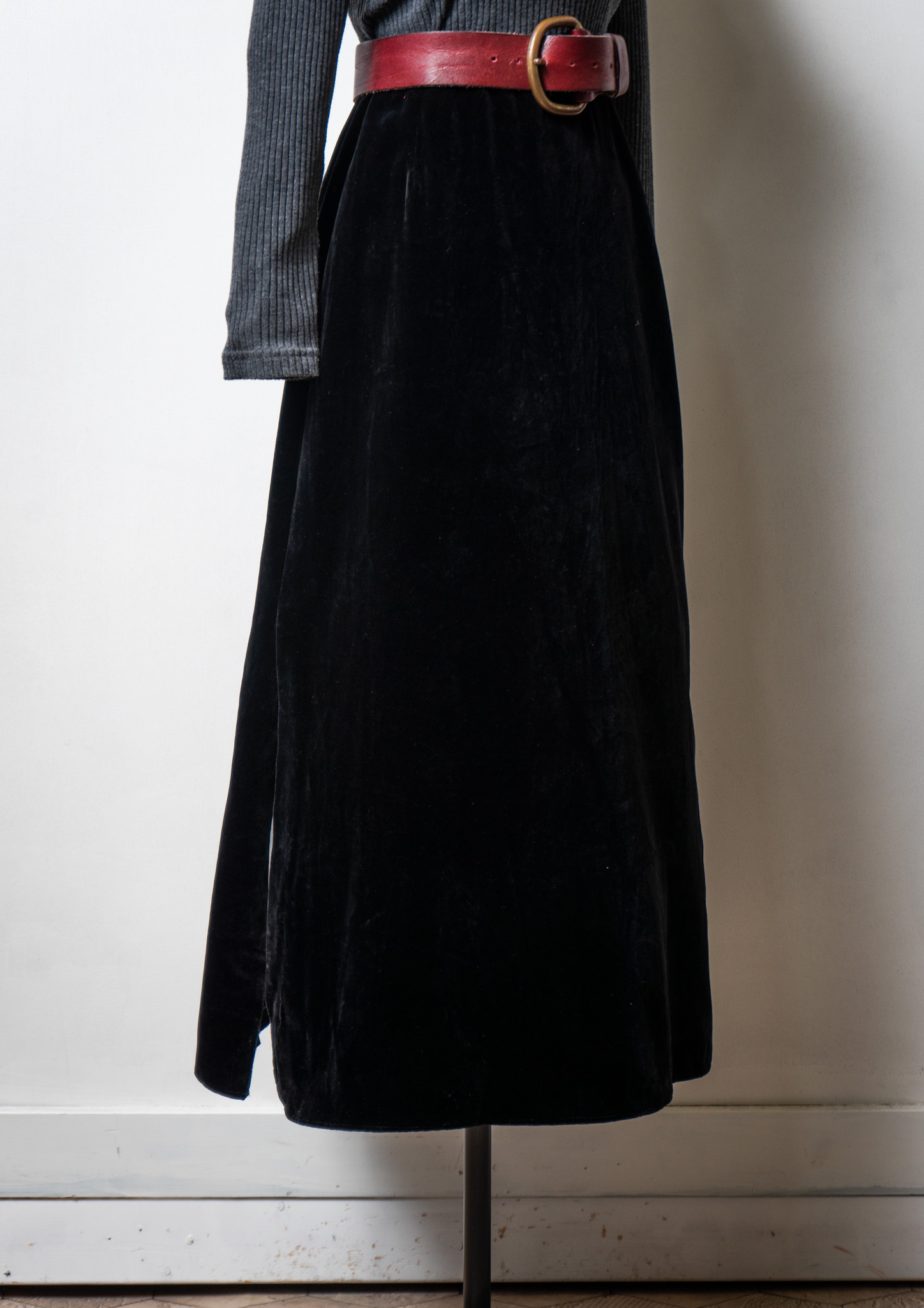 70~80's Black Velour Maxi Skirt