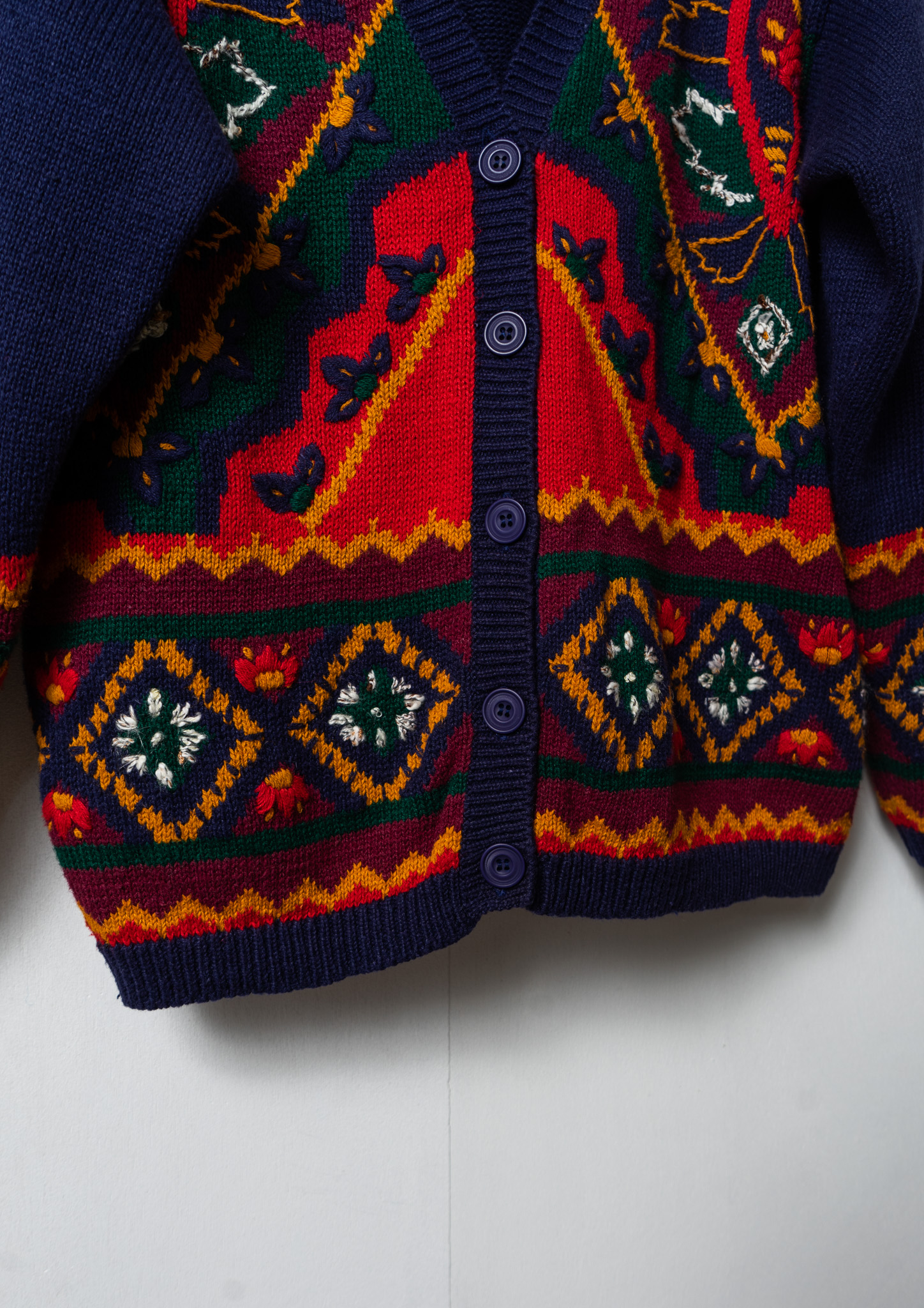 80's Botanical Embroidery Design Navy Cardigan
