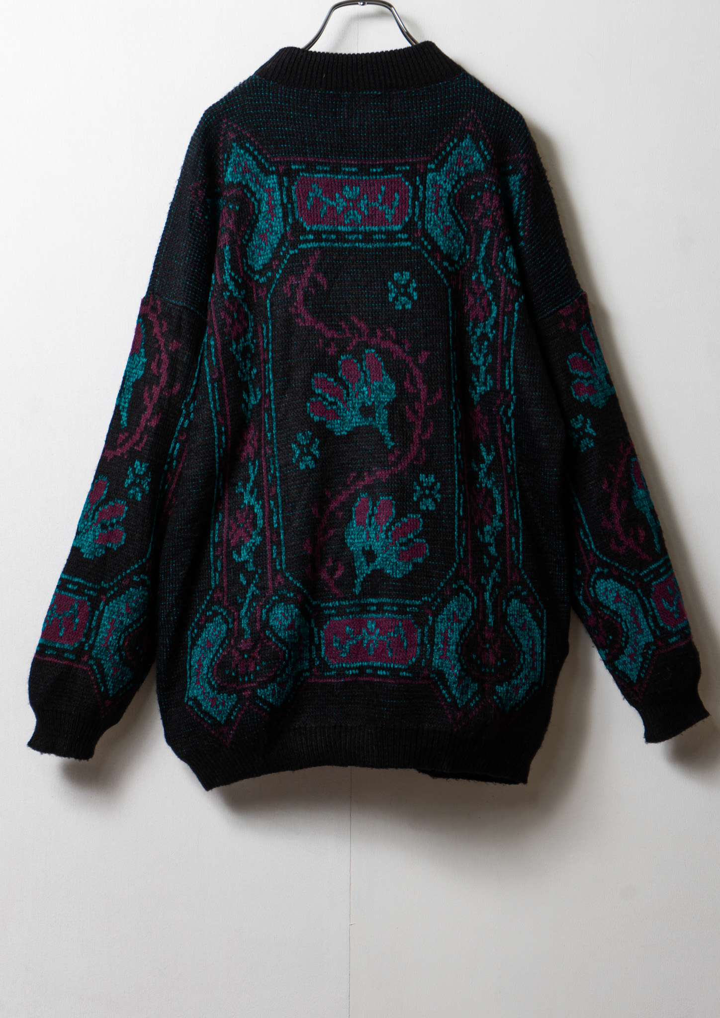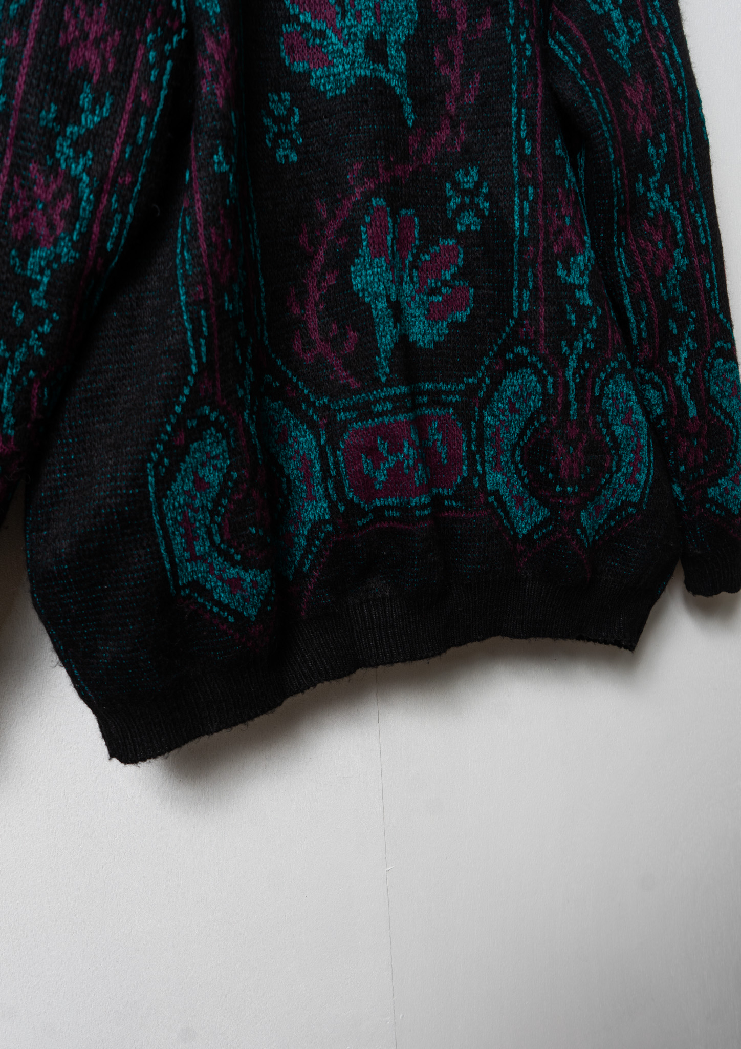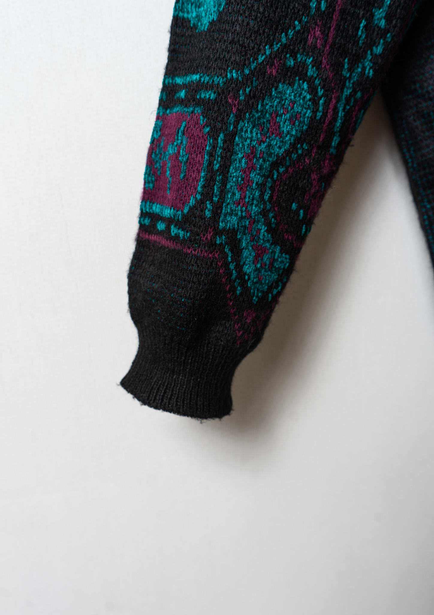 80's Double Pocket Design Unique Pattern Multi Color Mohair Cardigan