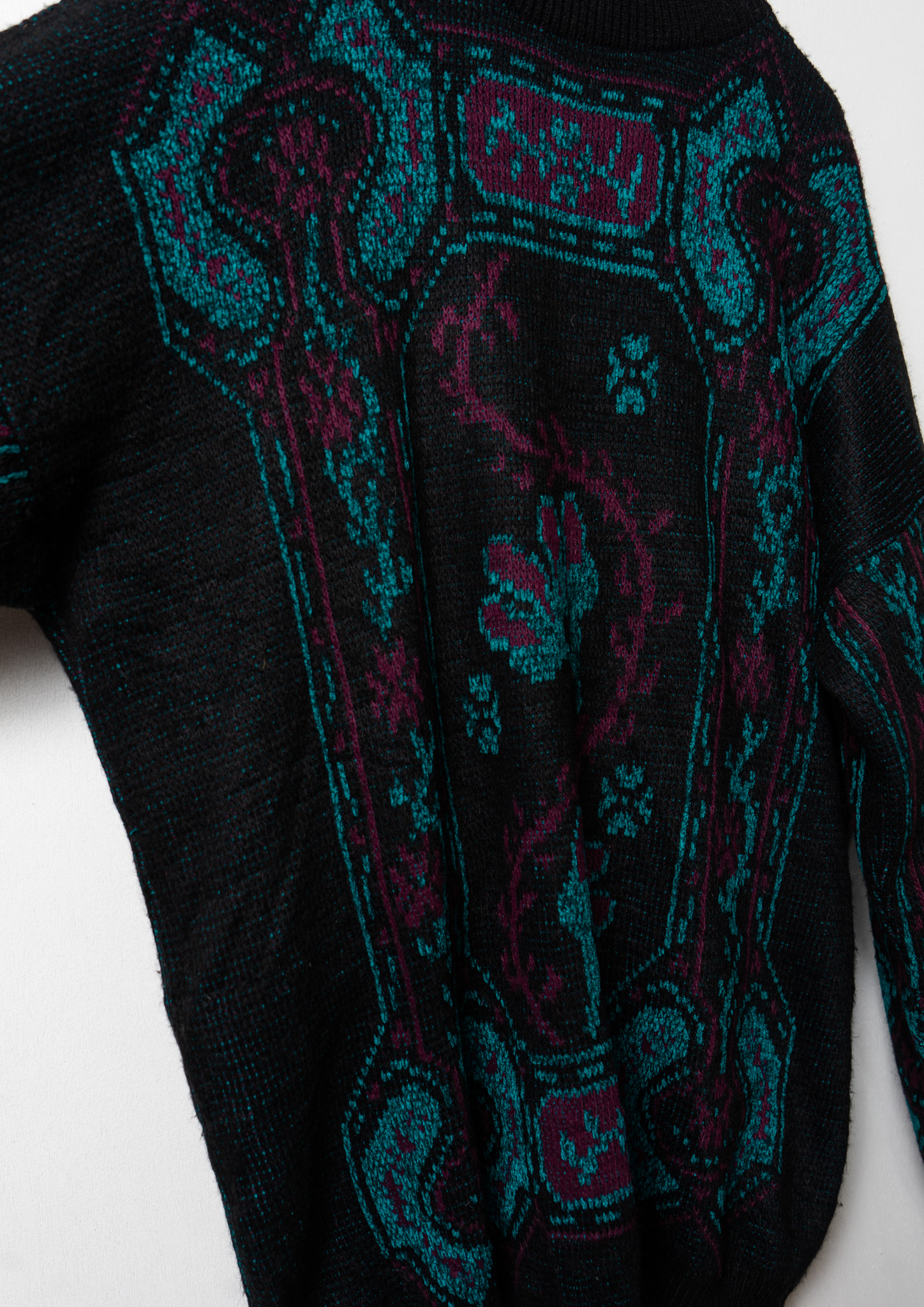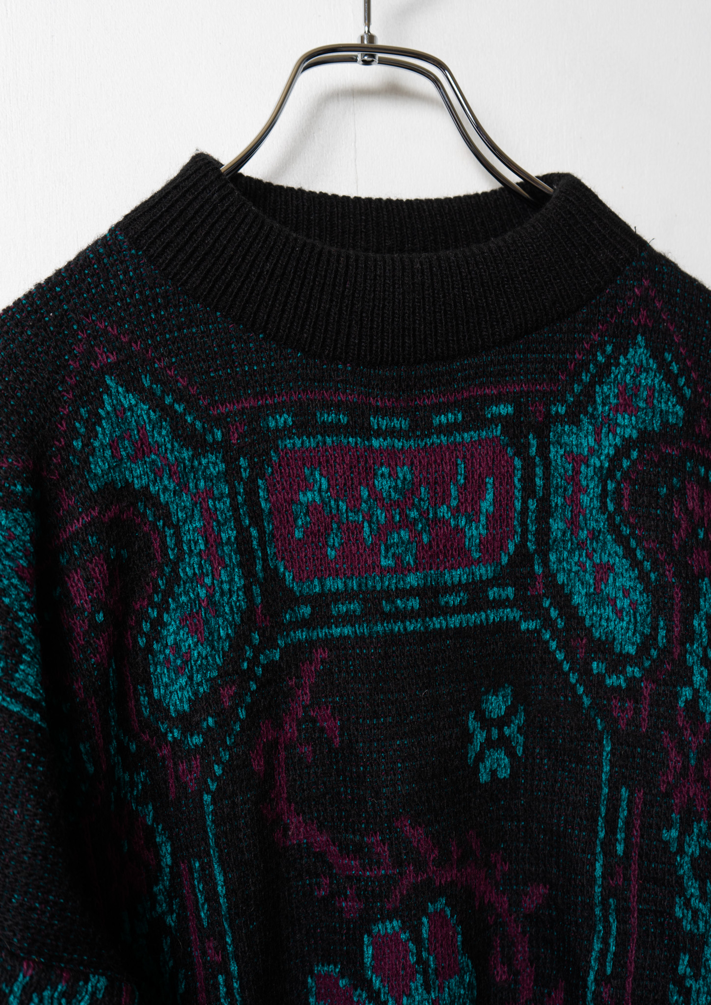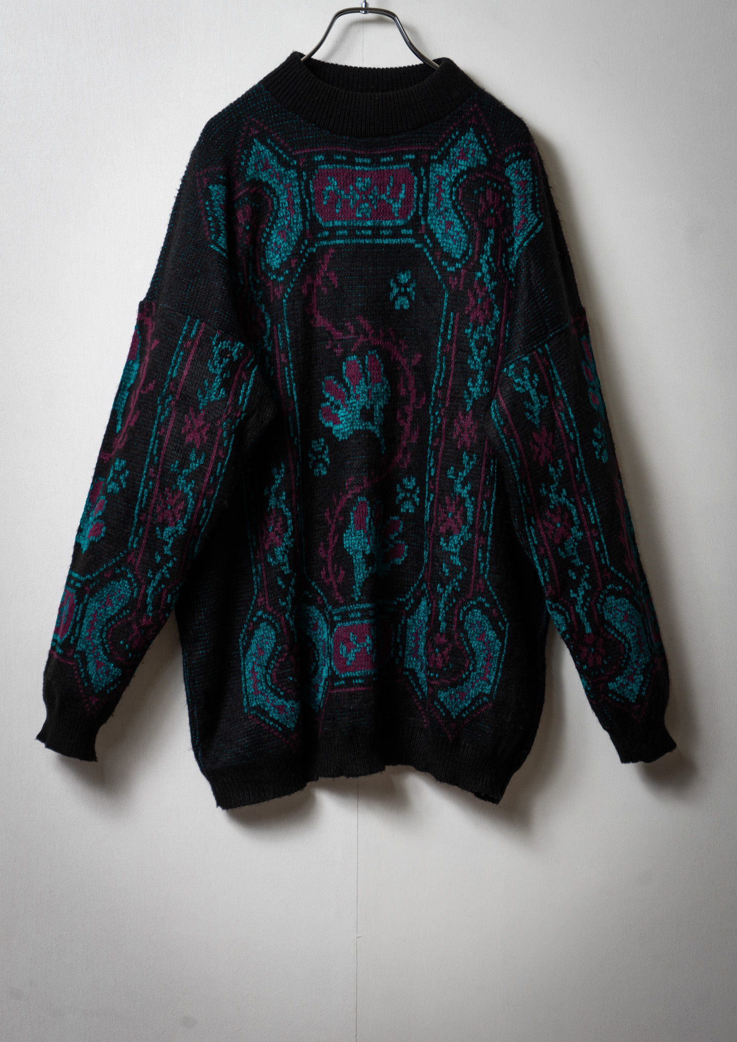 80's Double Pocket Design Unique Pattern Multi Color Mohair Cardigan