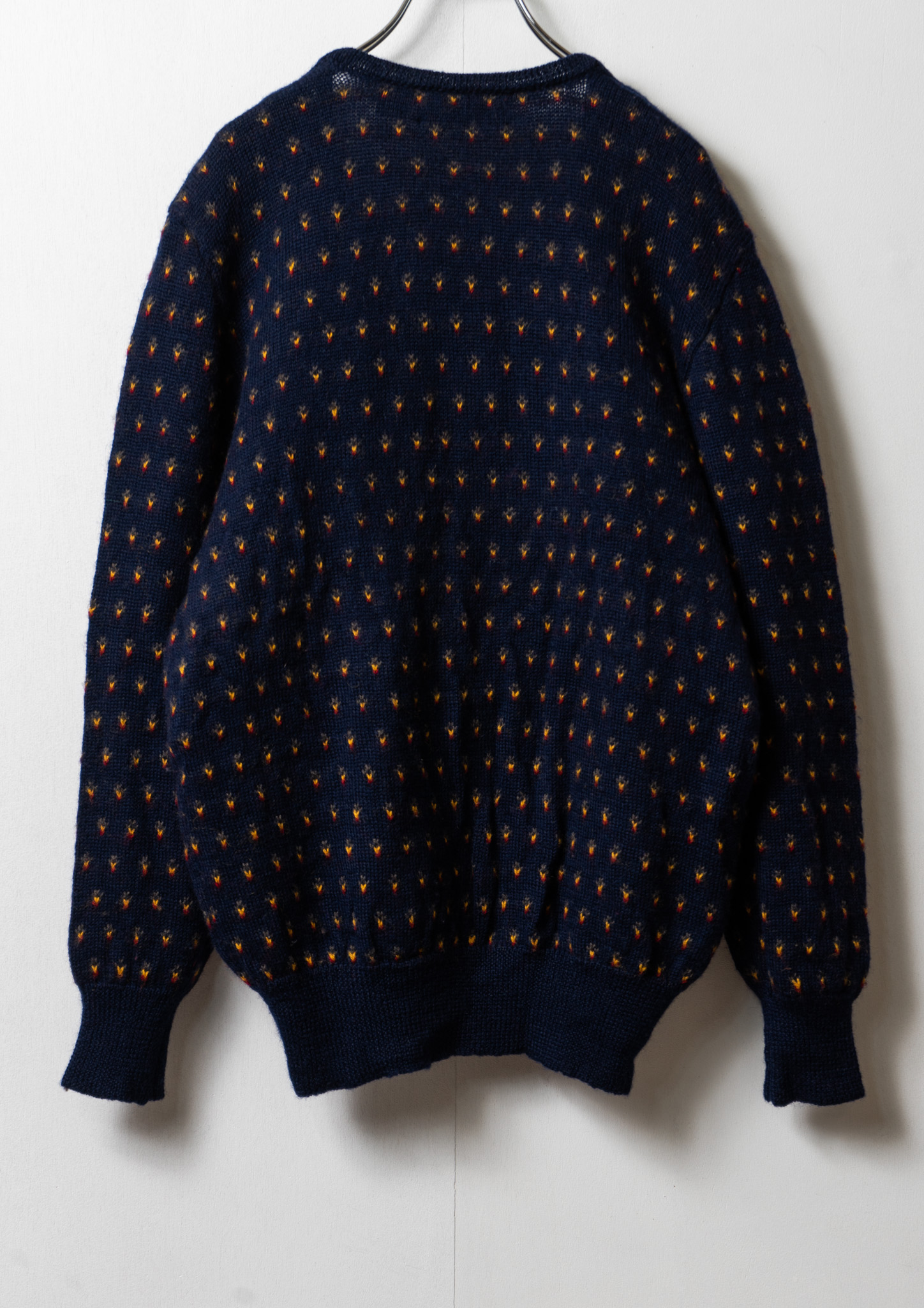 80's Double Pocket Design Unique Pattern Multi Color Mohair Cardigan