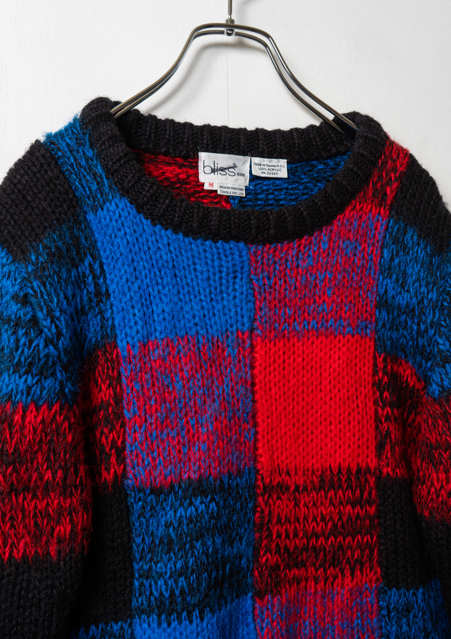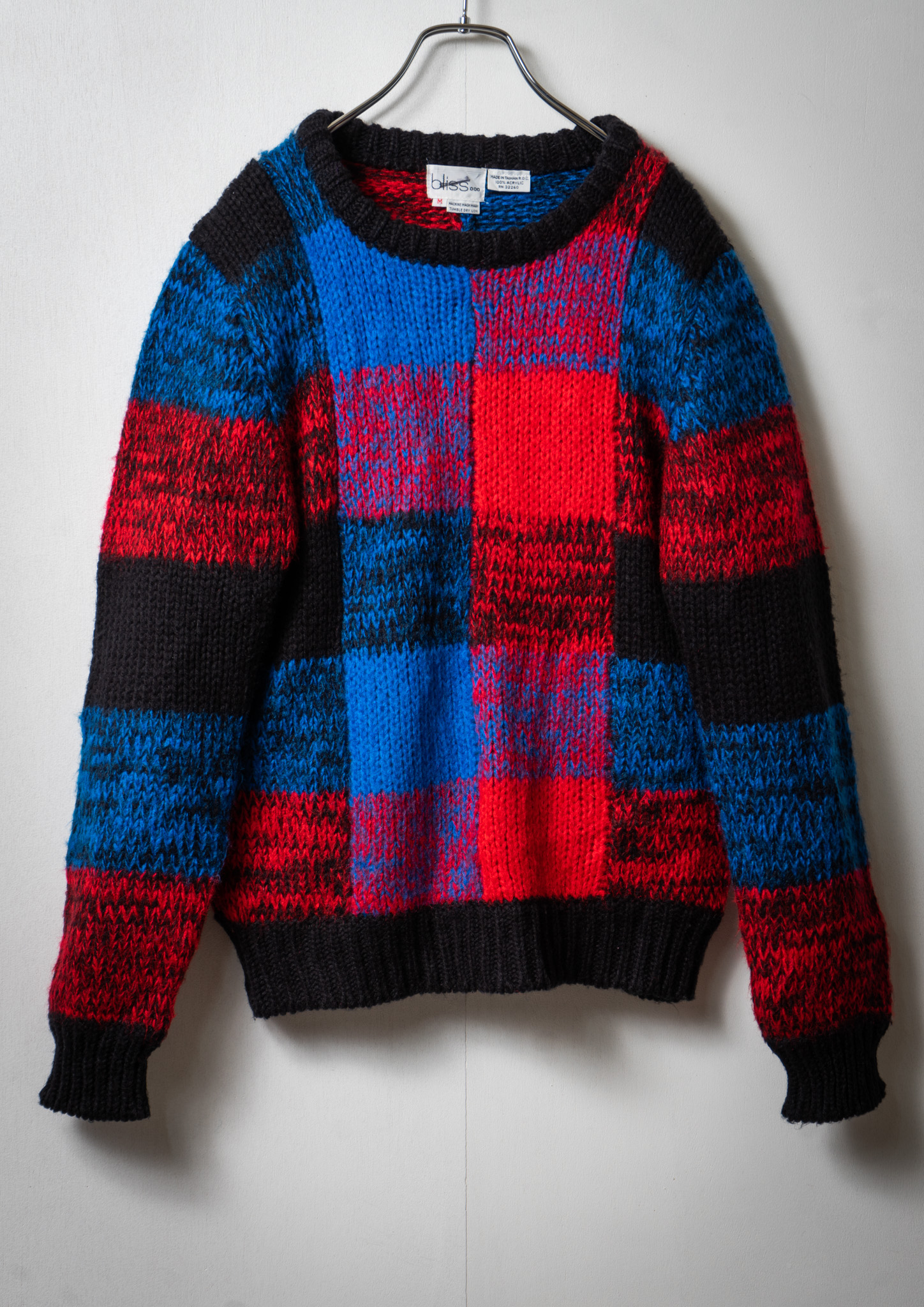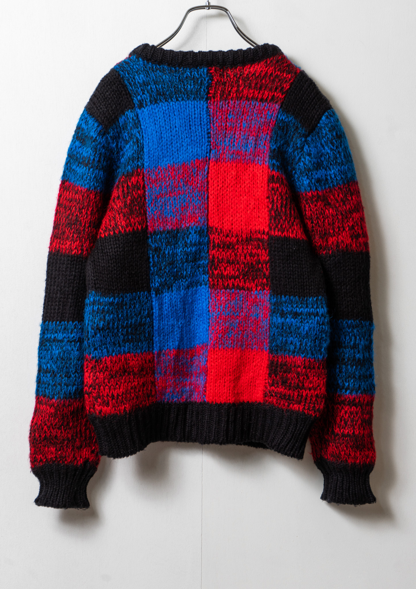 80's Red × Blue Check Like Pattern Black Knit Sweater