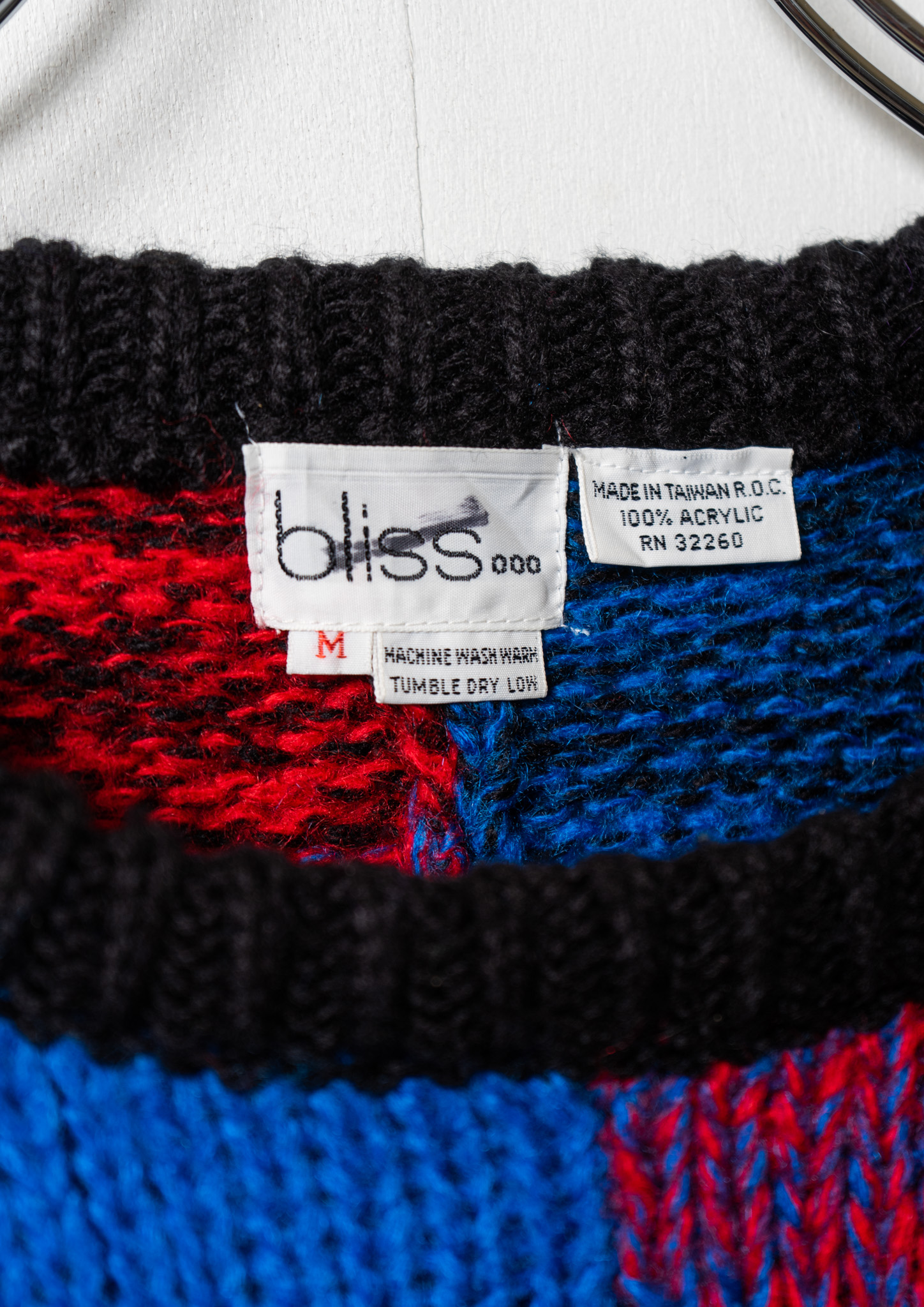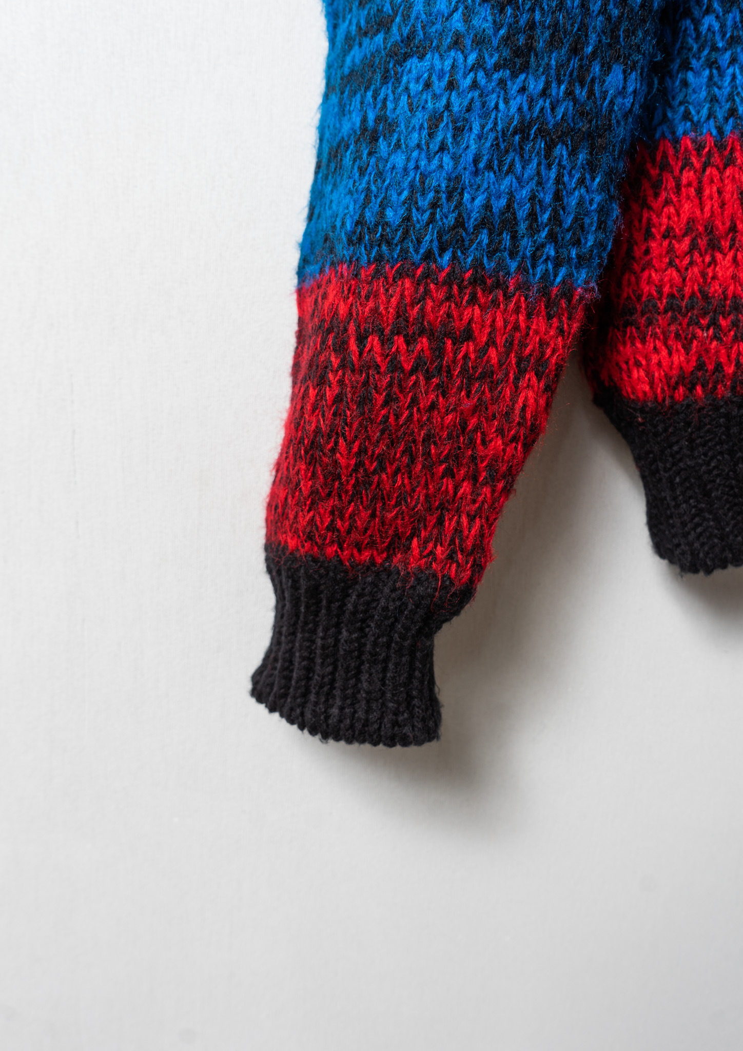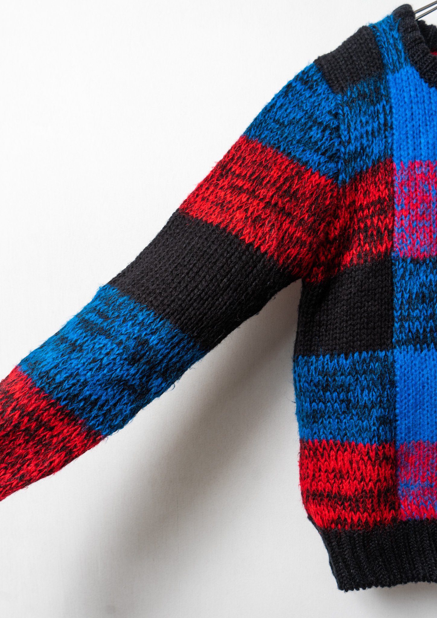 80's Red × Blue Check Like Pattern Black Knit Sweater