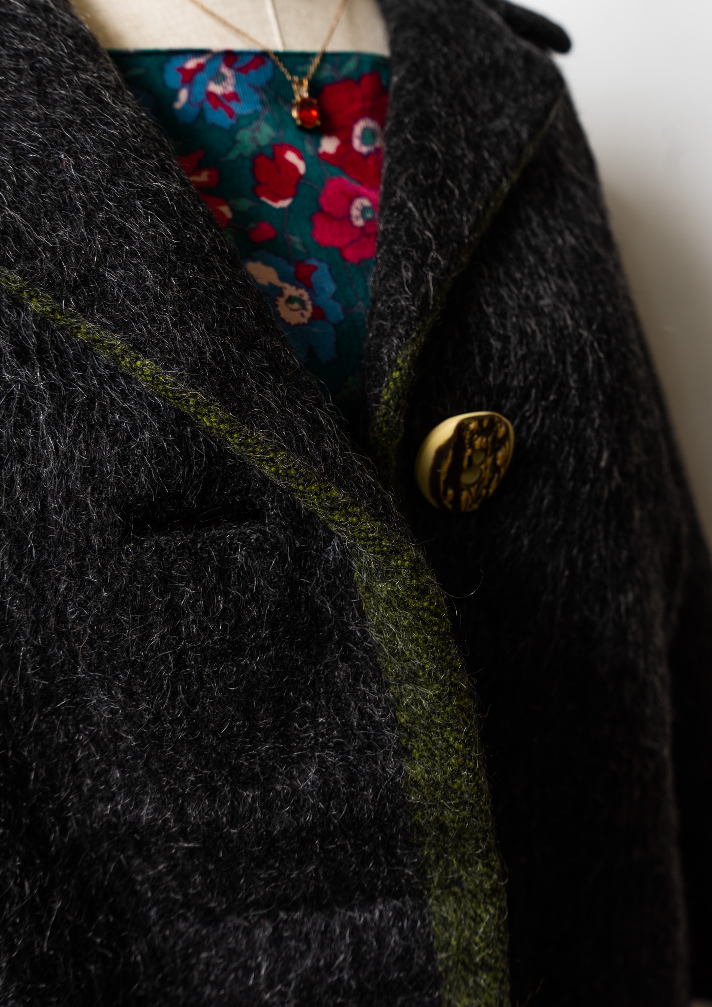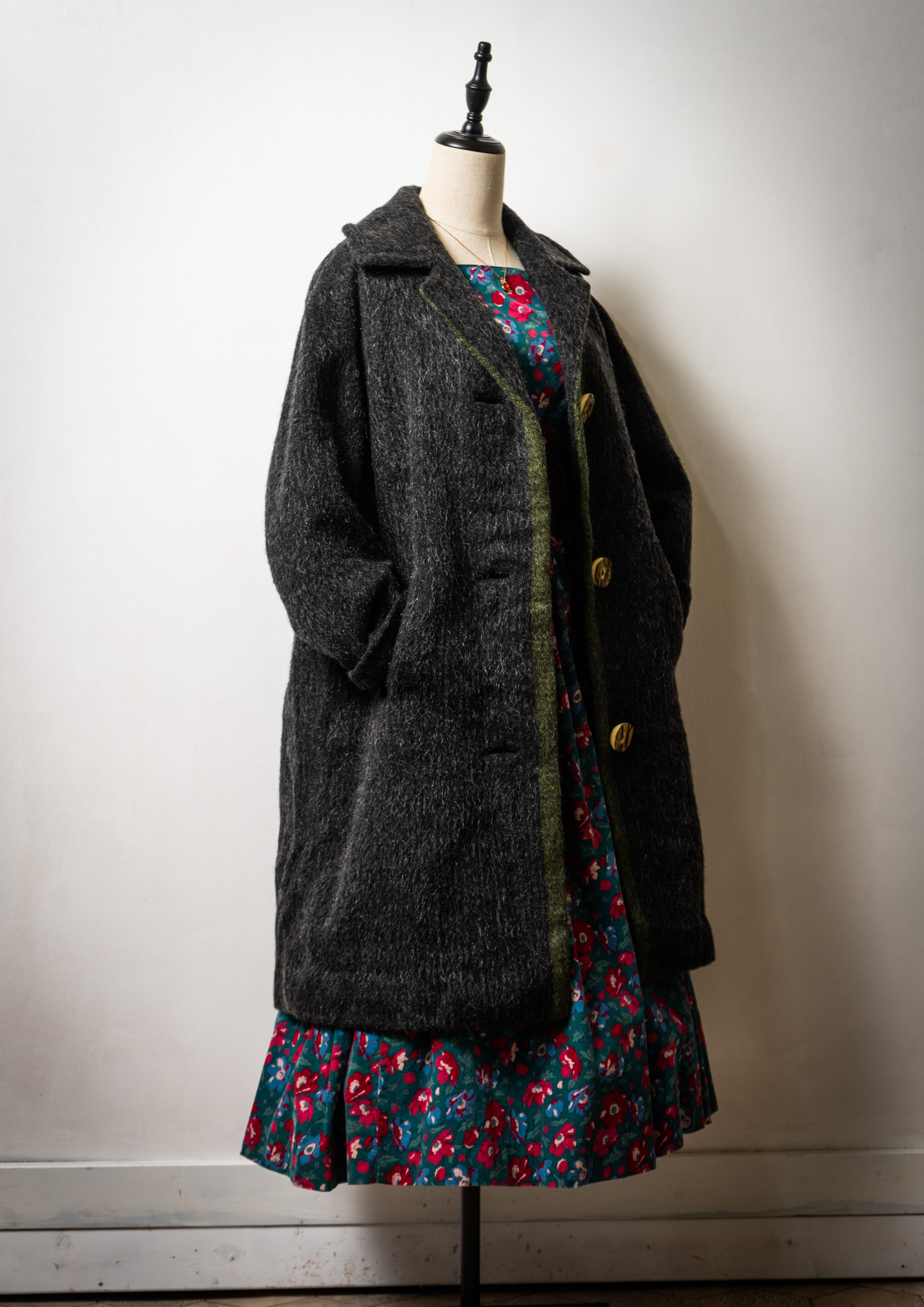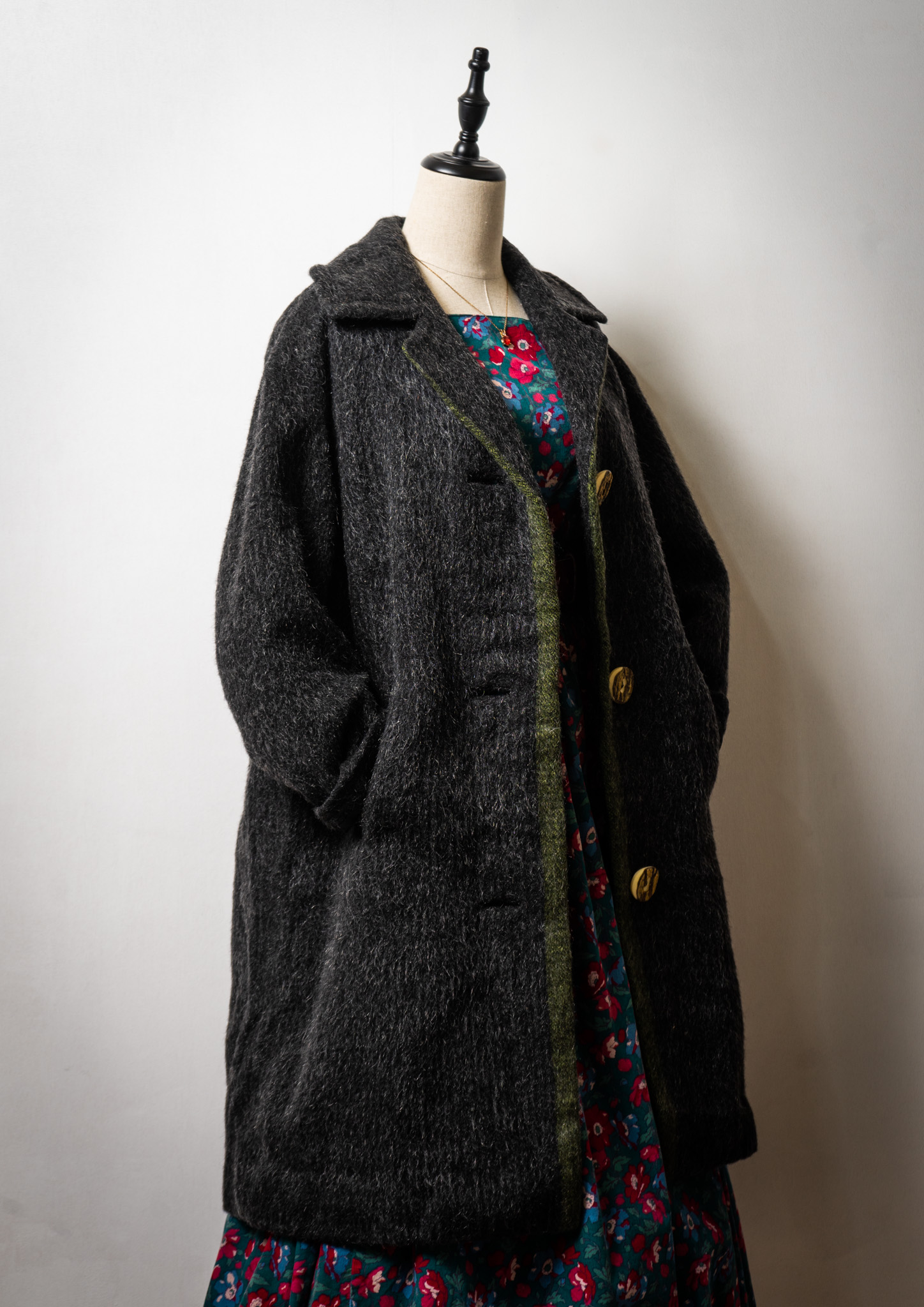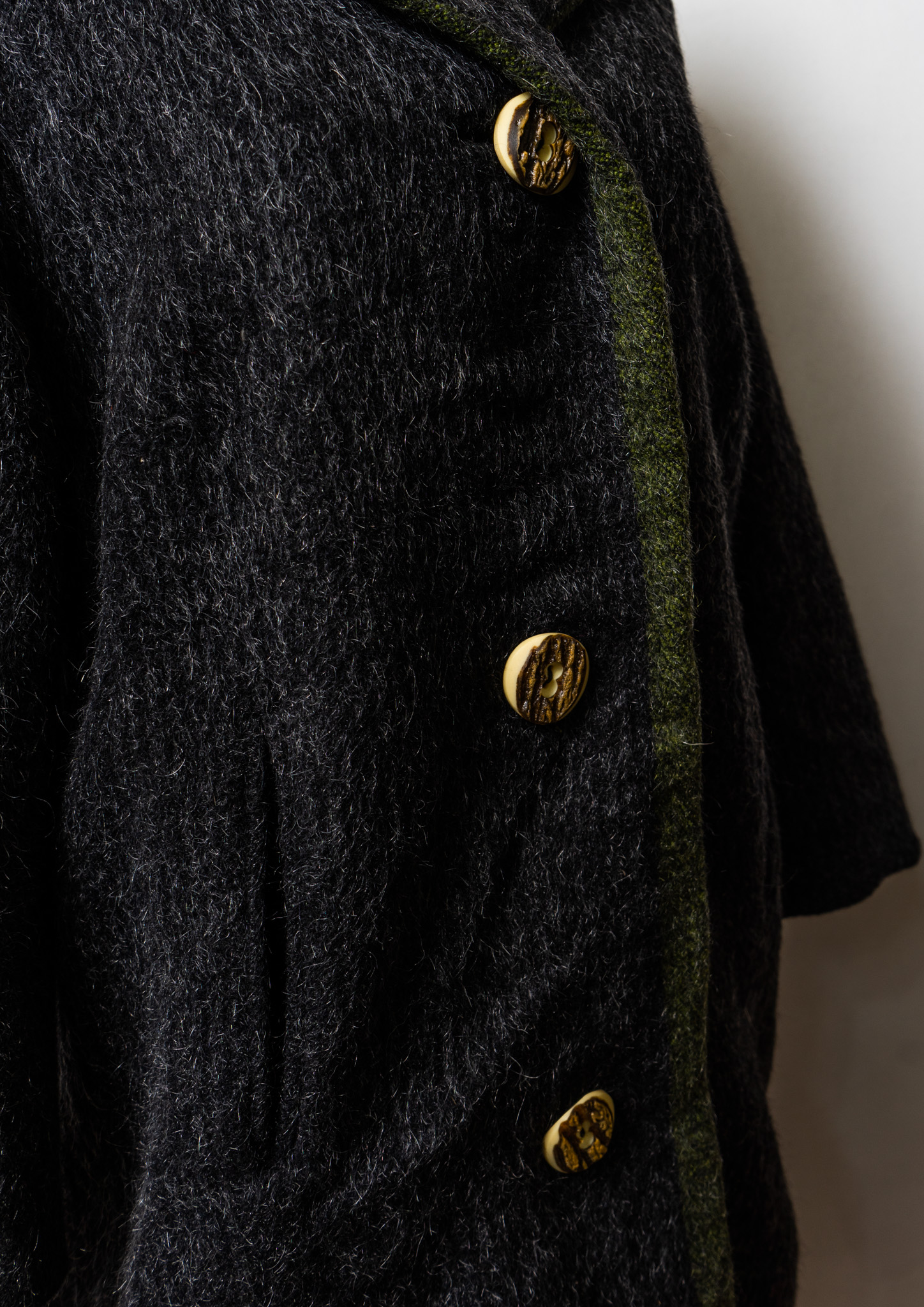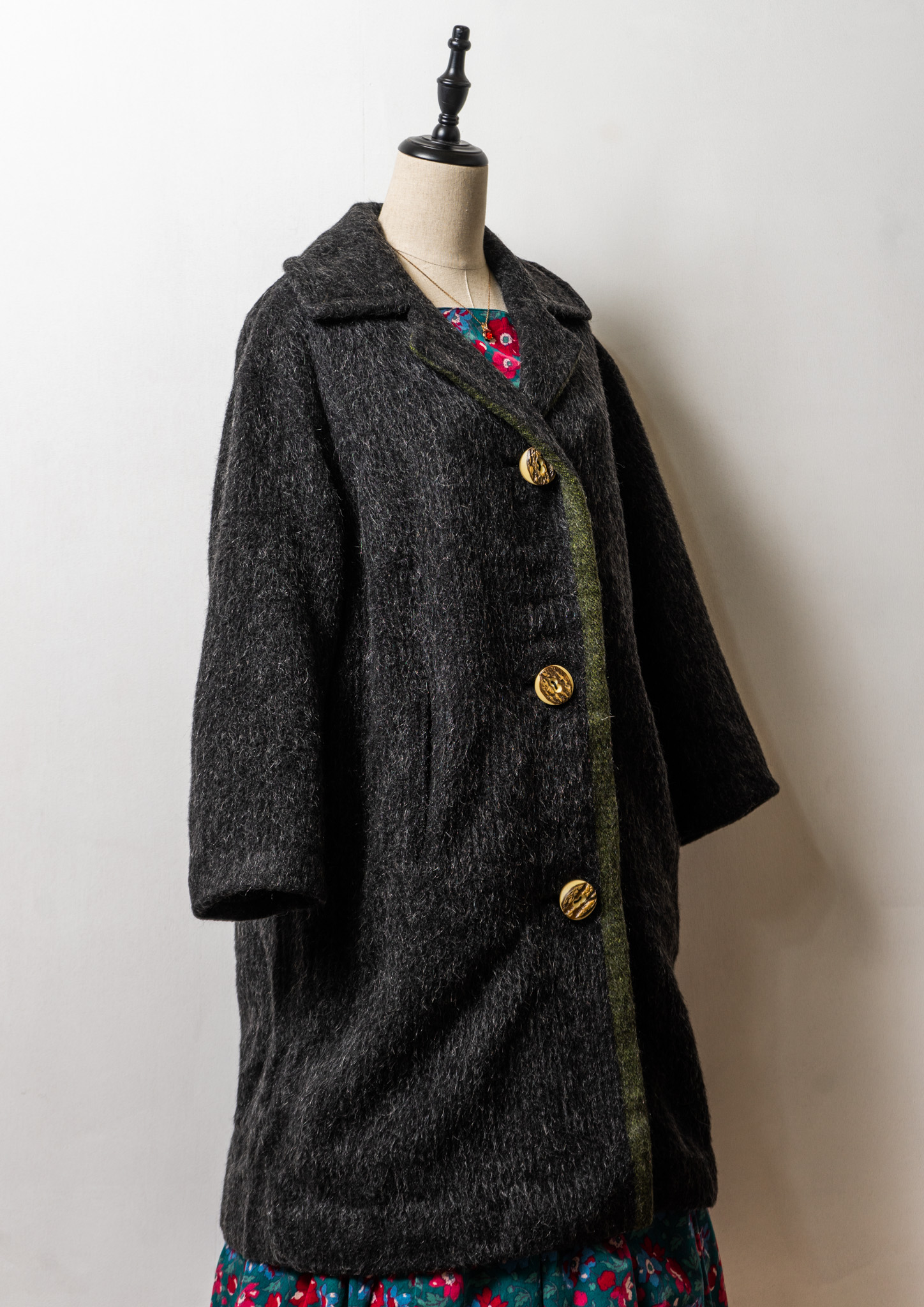 80's Big Button × Double Pocket Design Black Shaggy Tyrol Coat