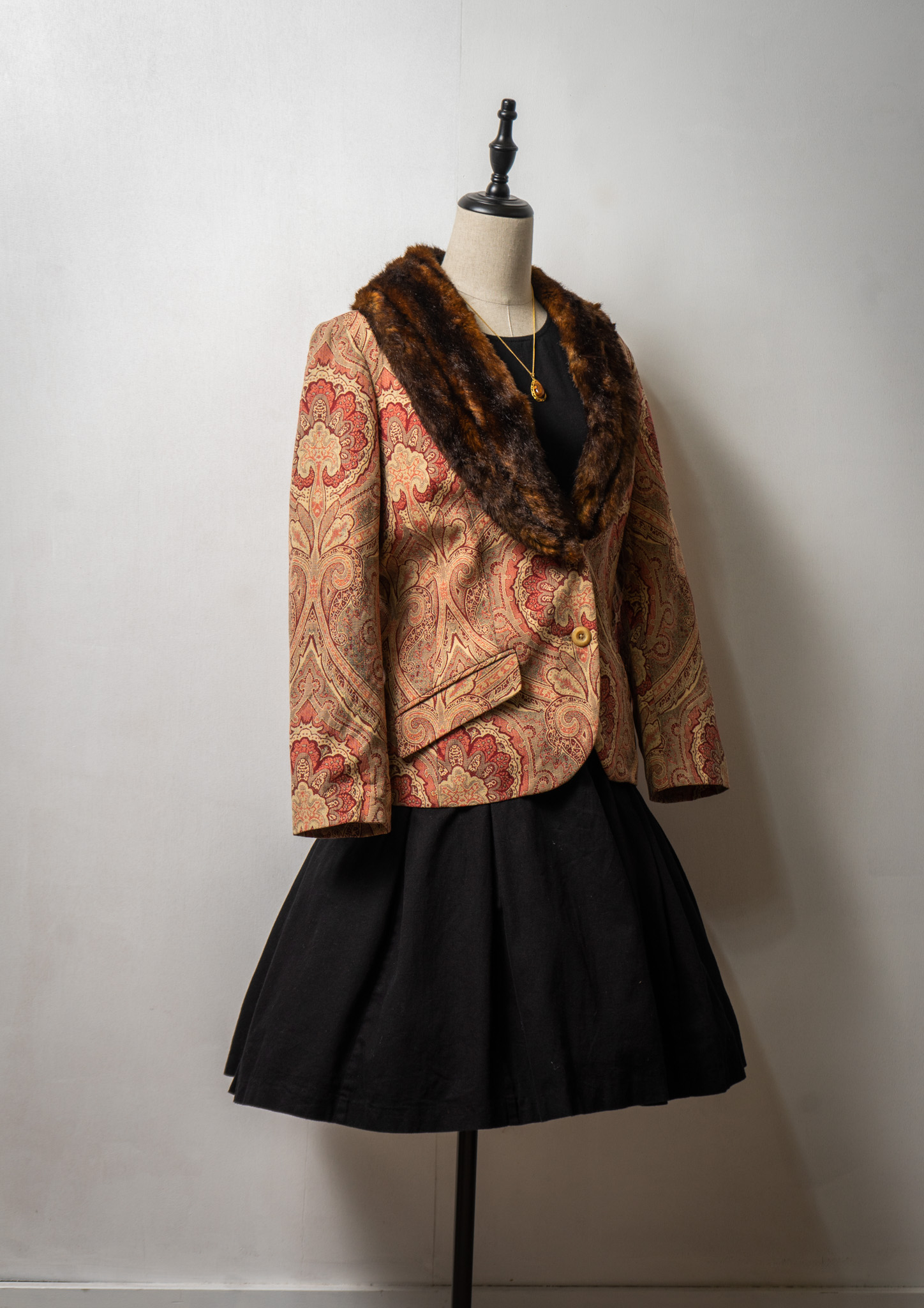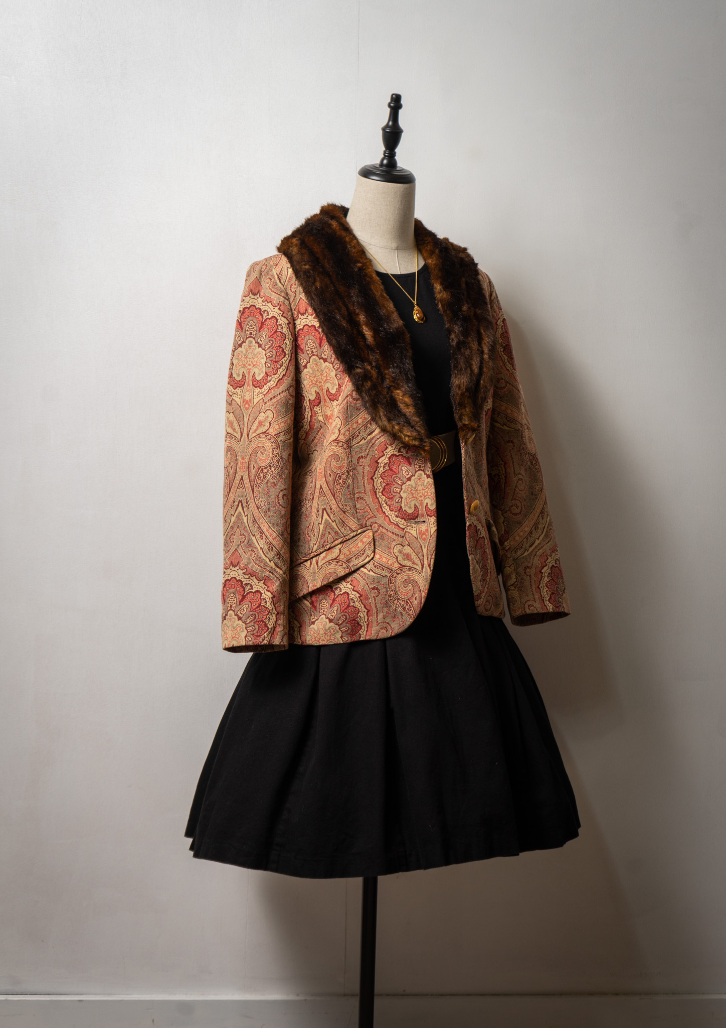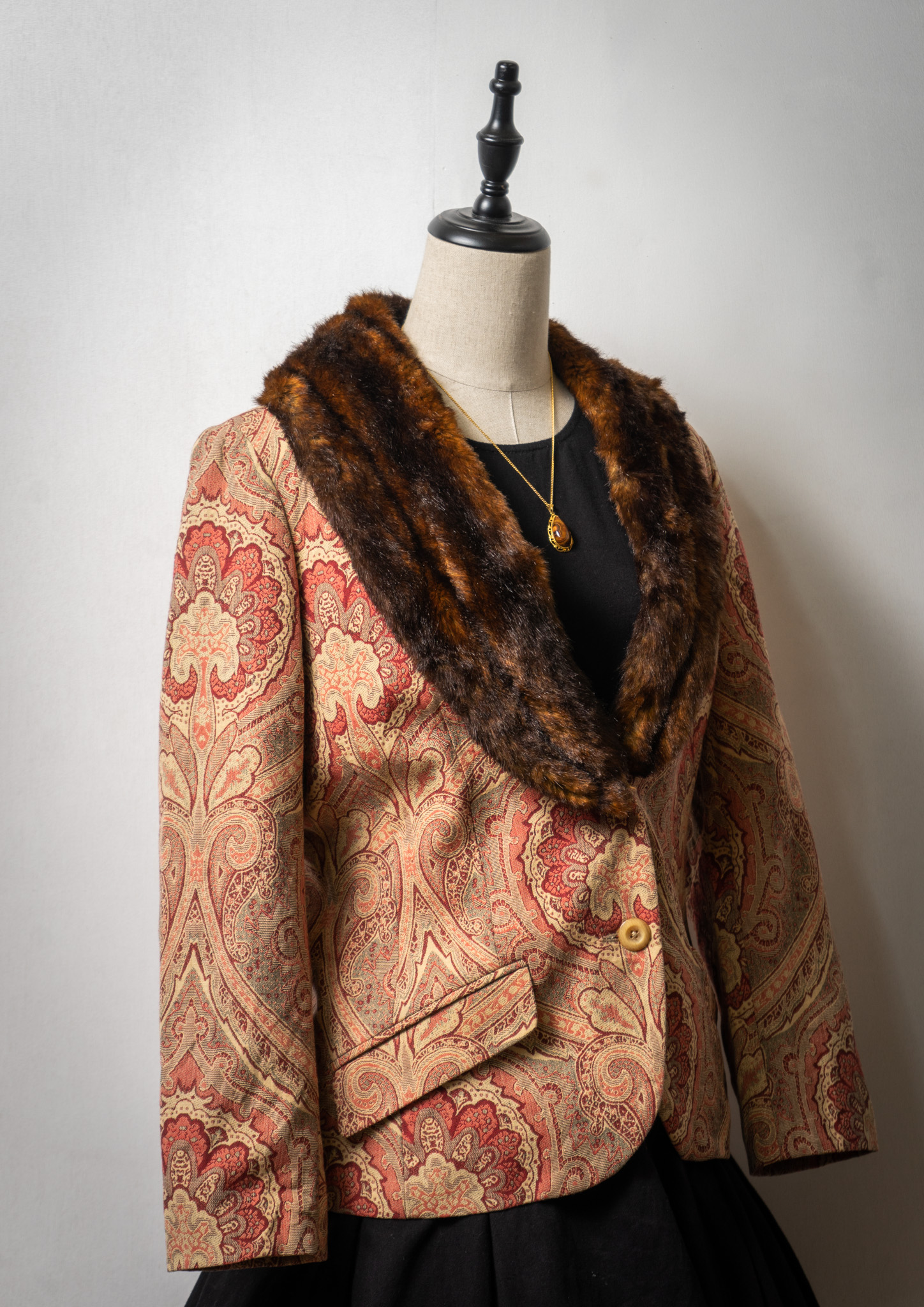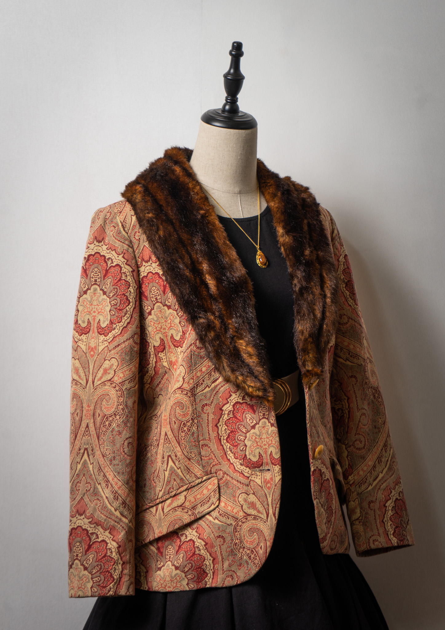 LAUREN Fur Design Paisley Pattern Double Pocket Gobelin Jacket