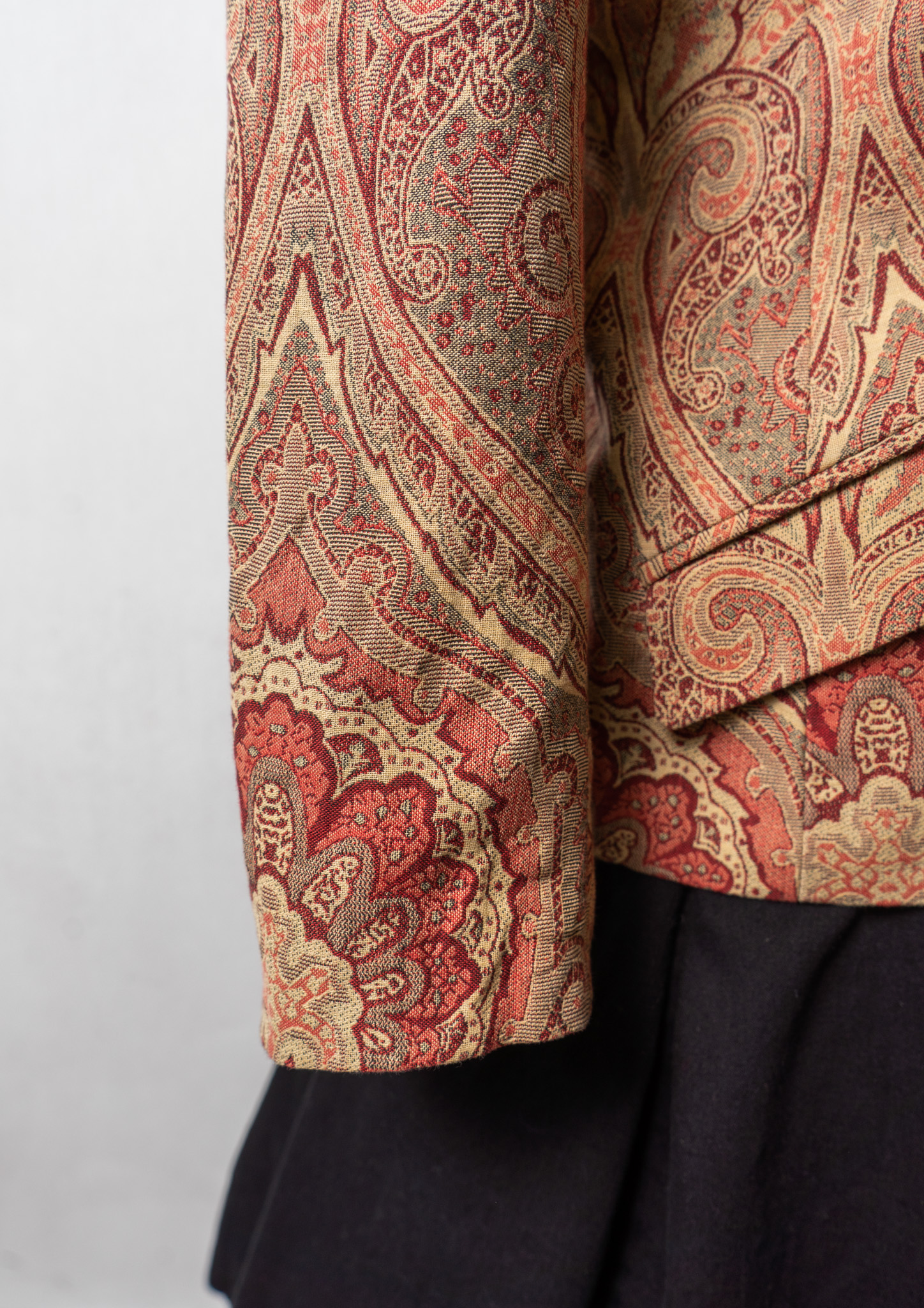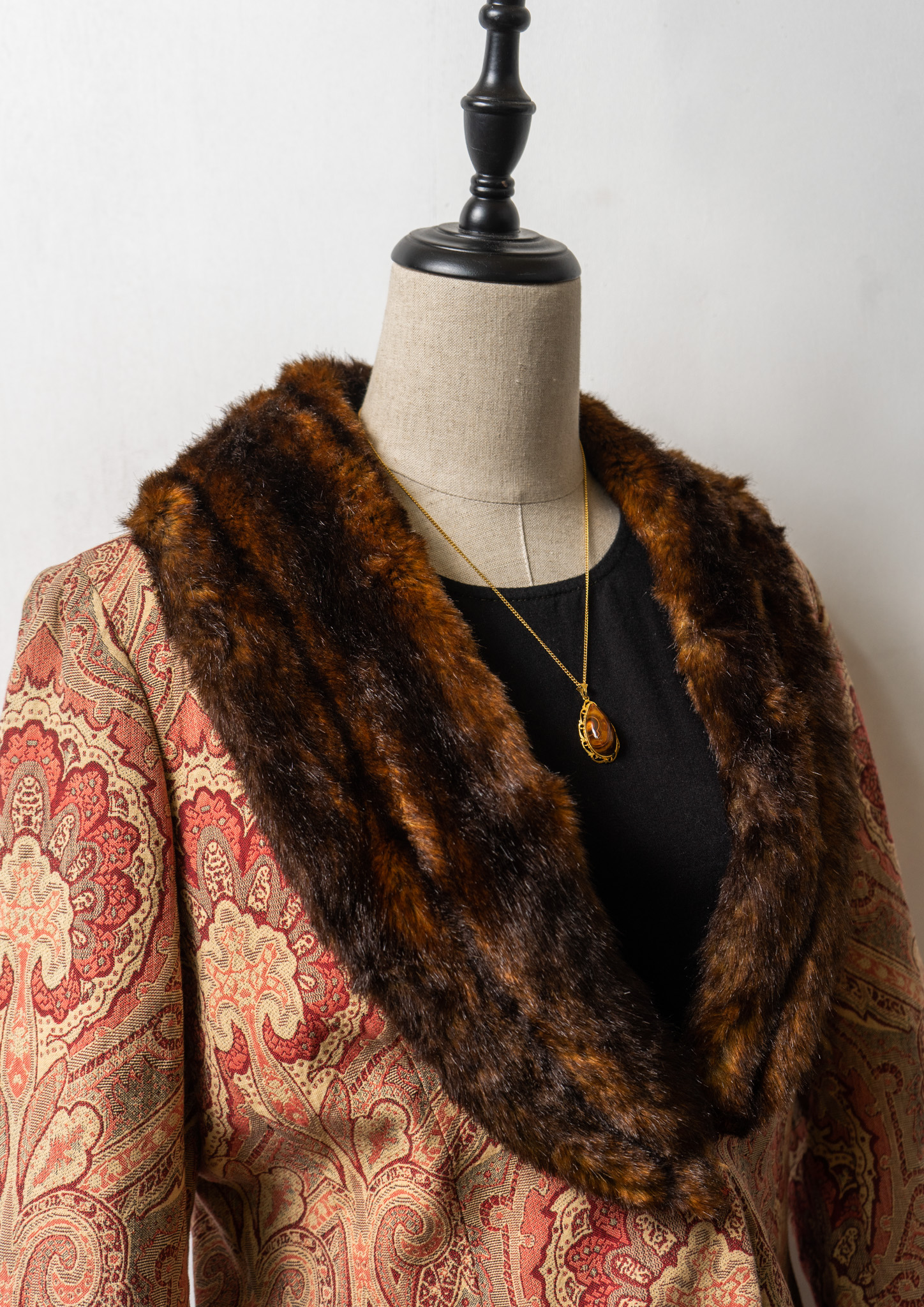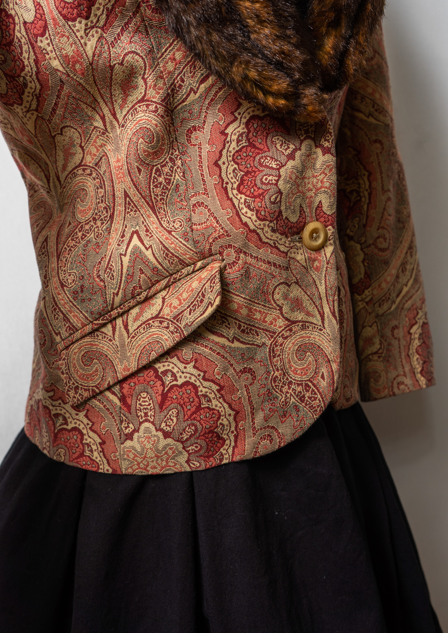 LAUREN Fur Design Paisley Pattern Double Pocket Gobelin Jacket