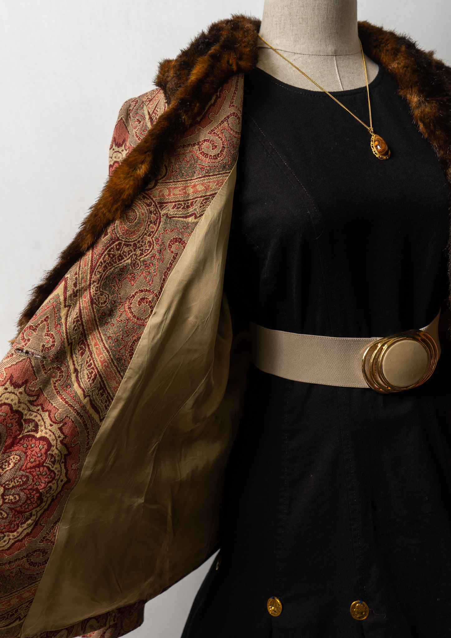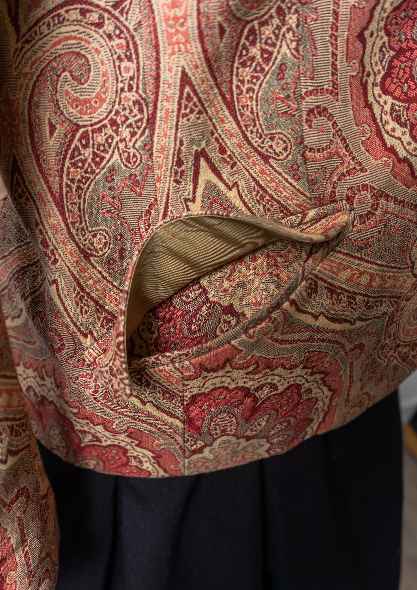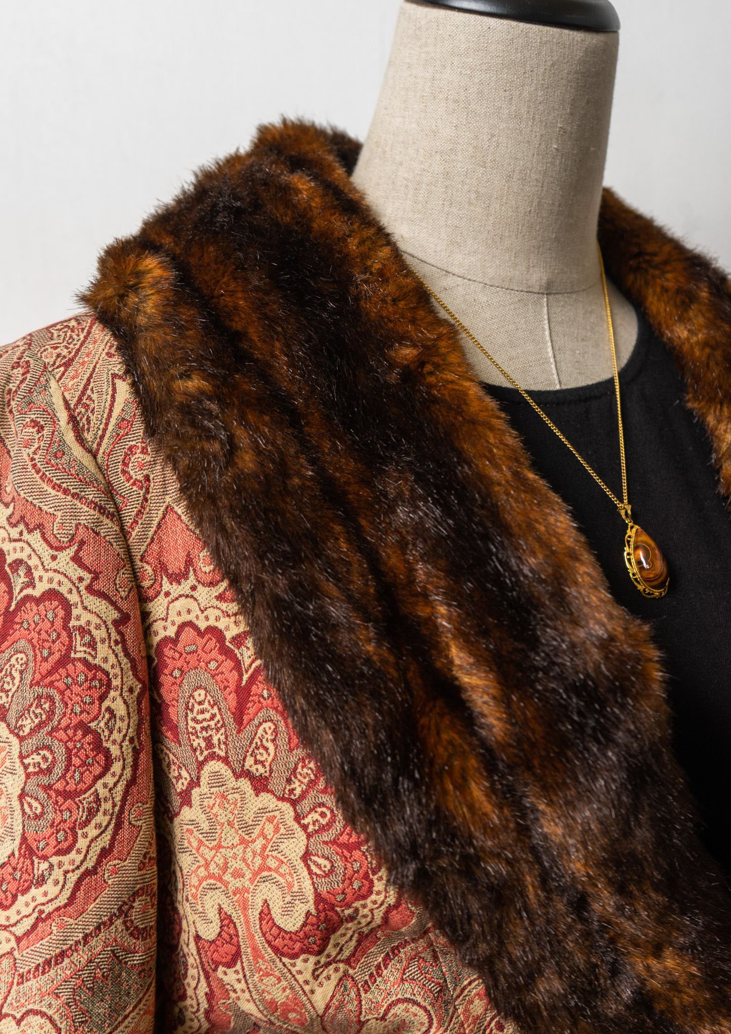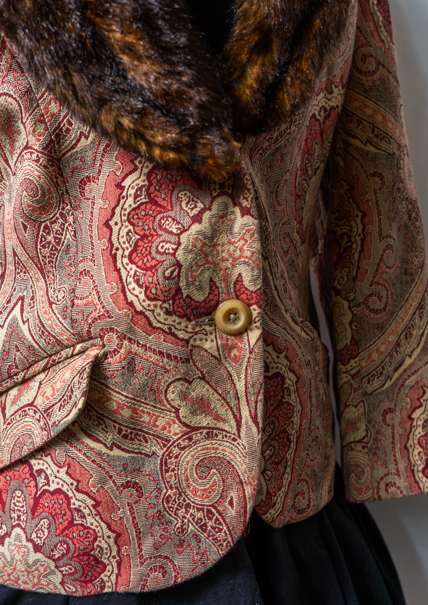 LAUREN Fur Design Paisley Pattern Double Pocket Gobelin Jacket