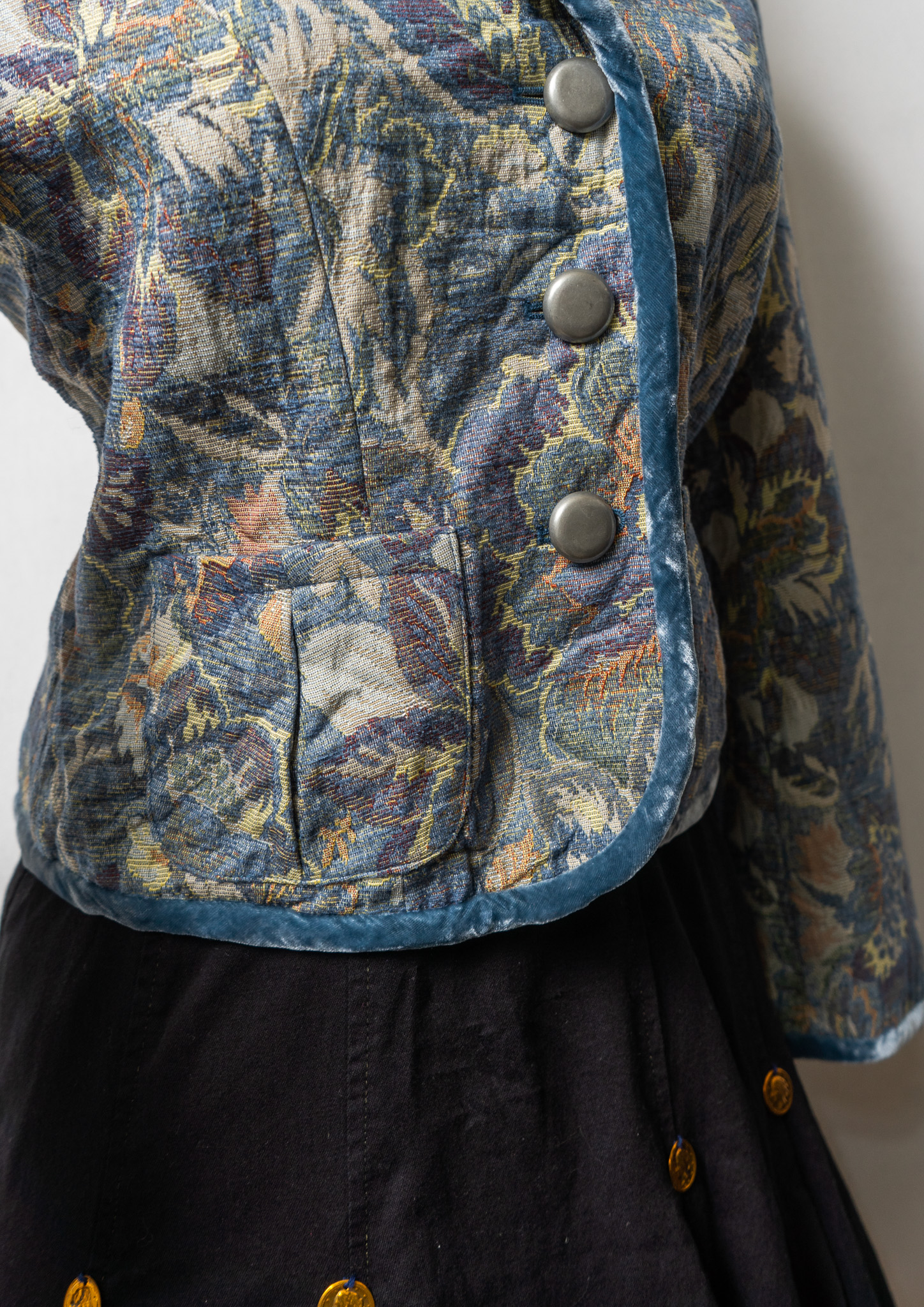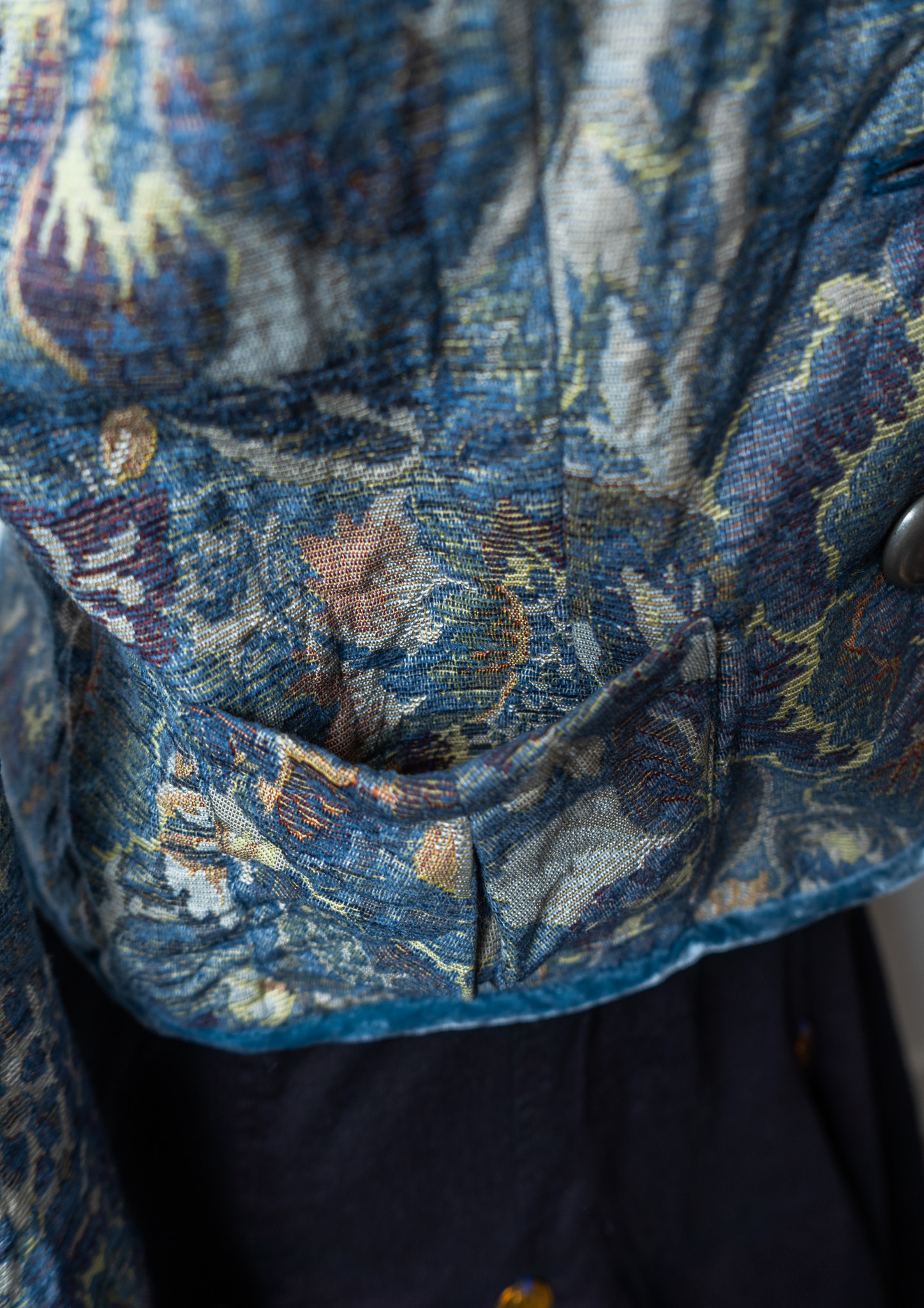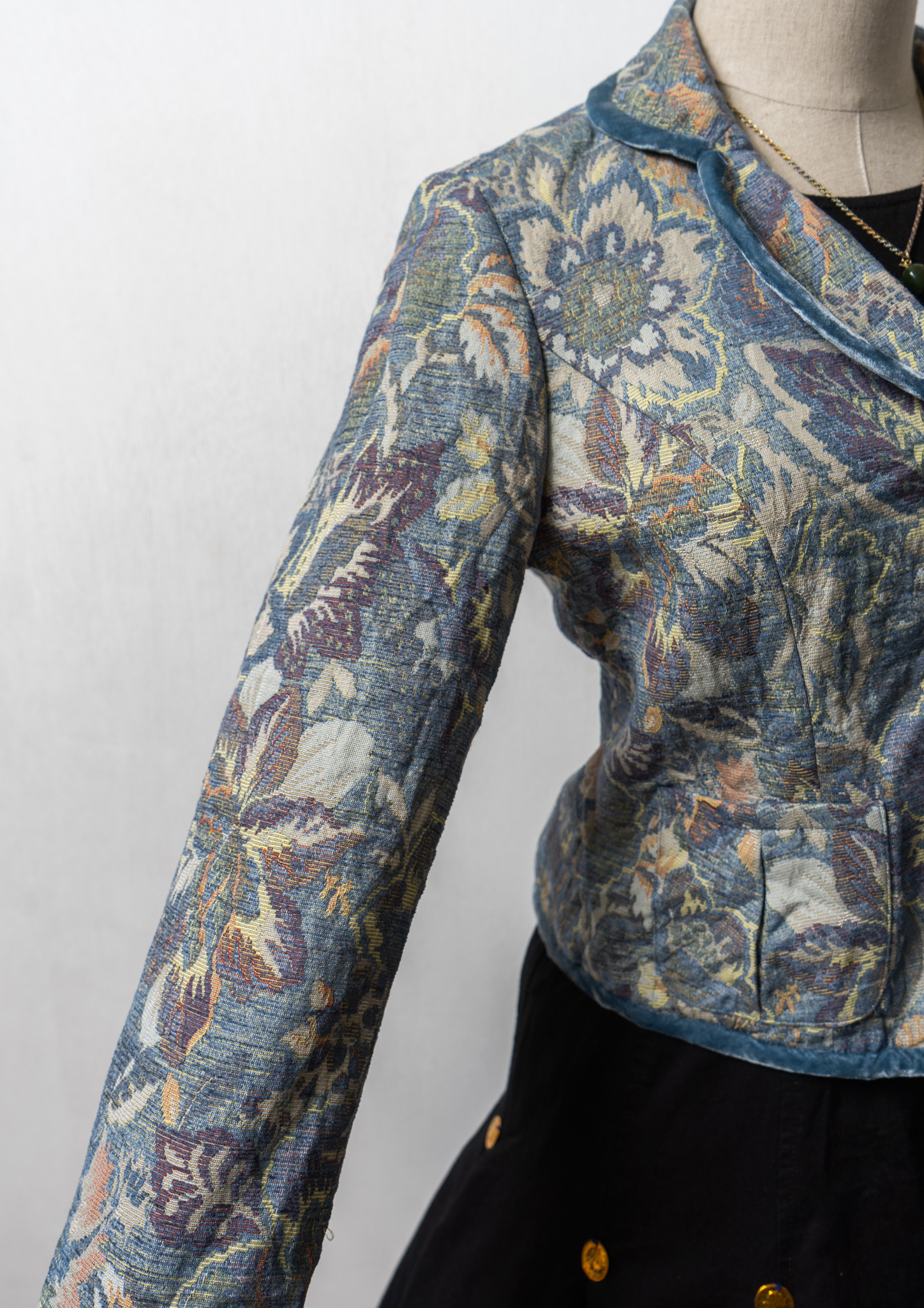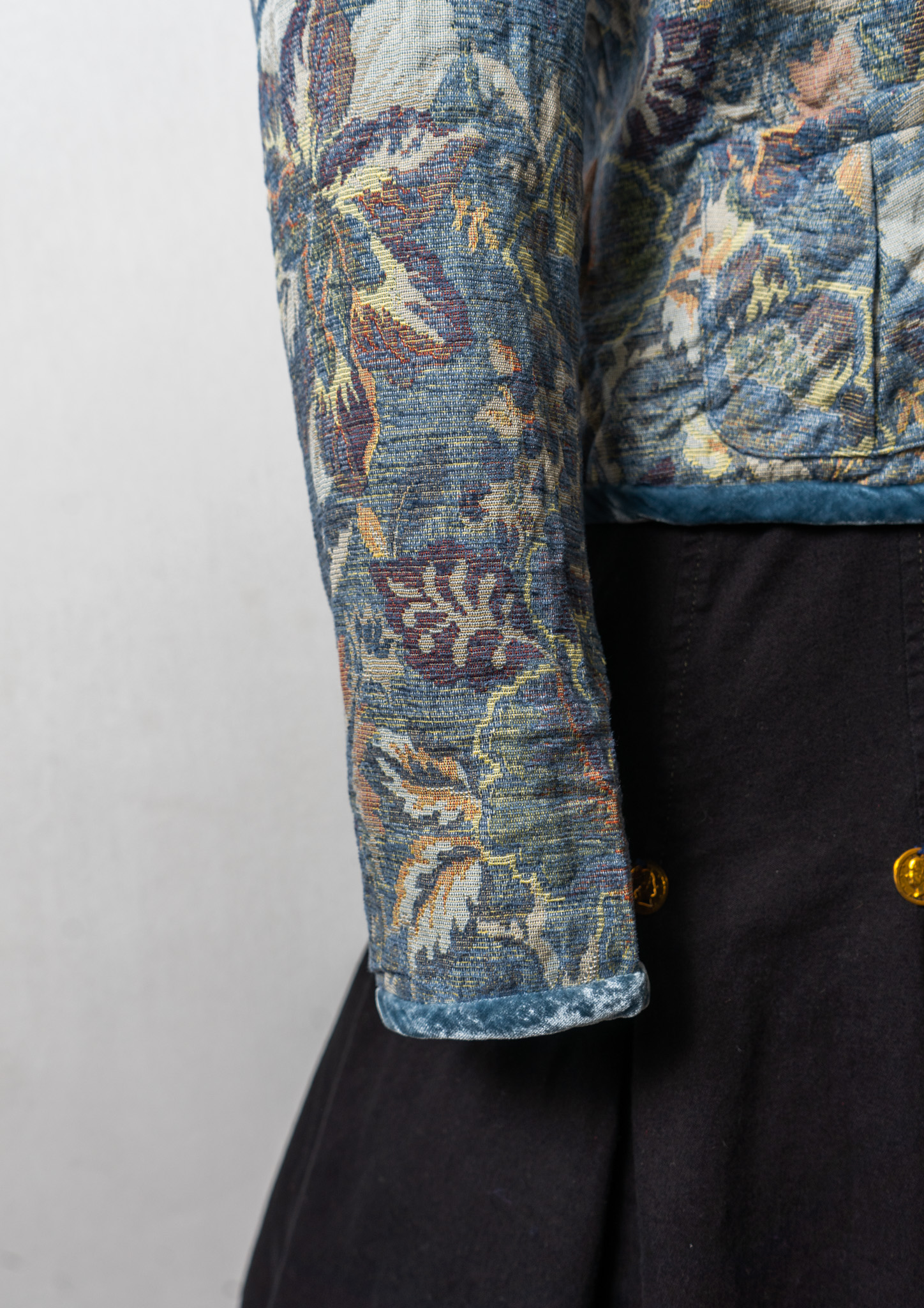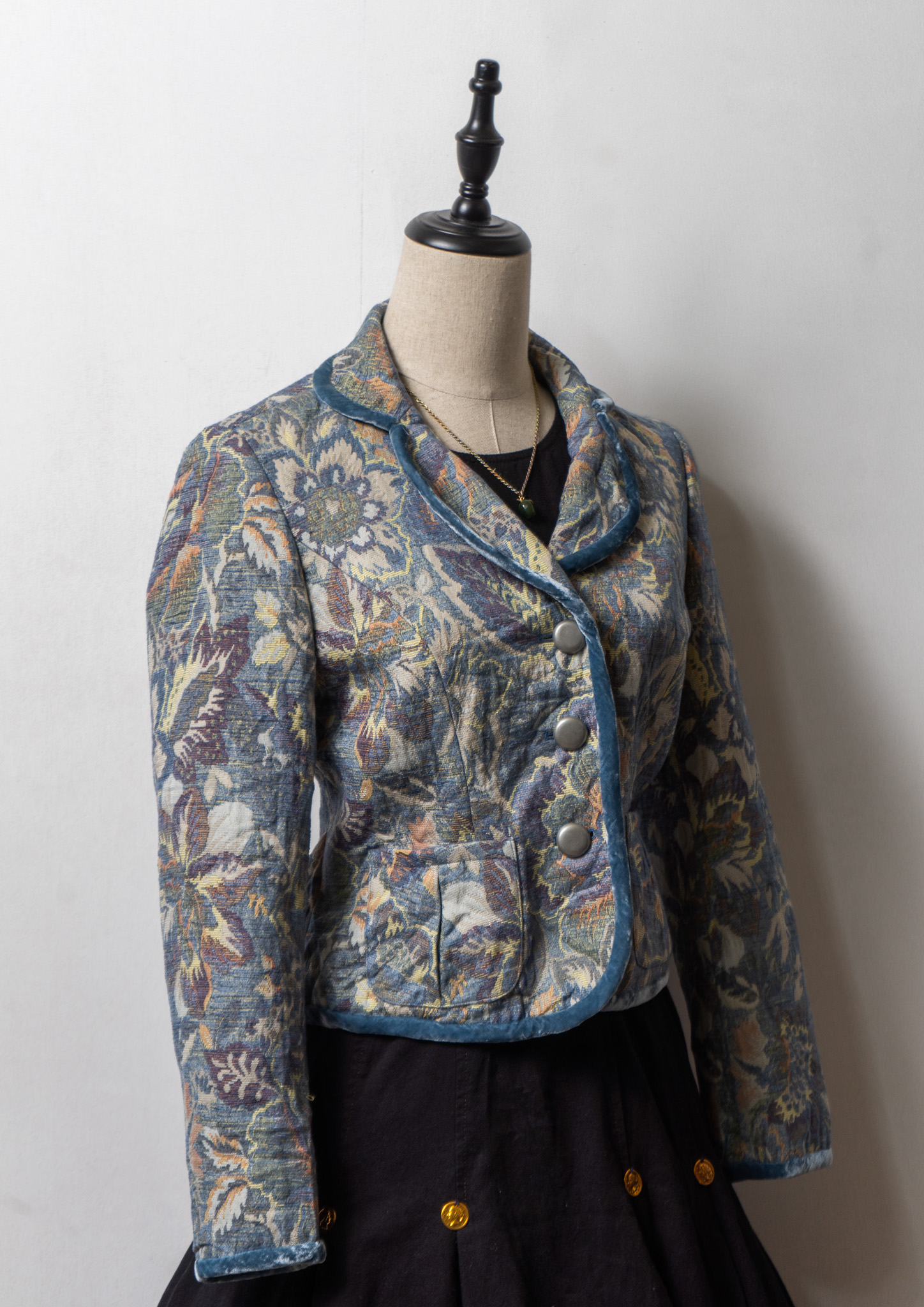 90's Double Pocket Design Botanical Blue Jacquard Jacket