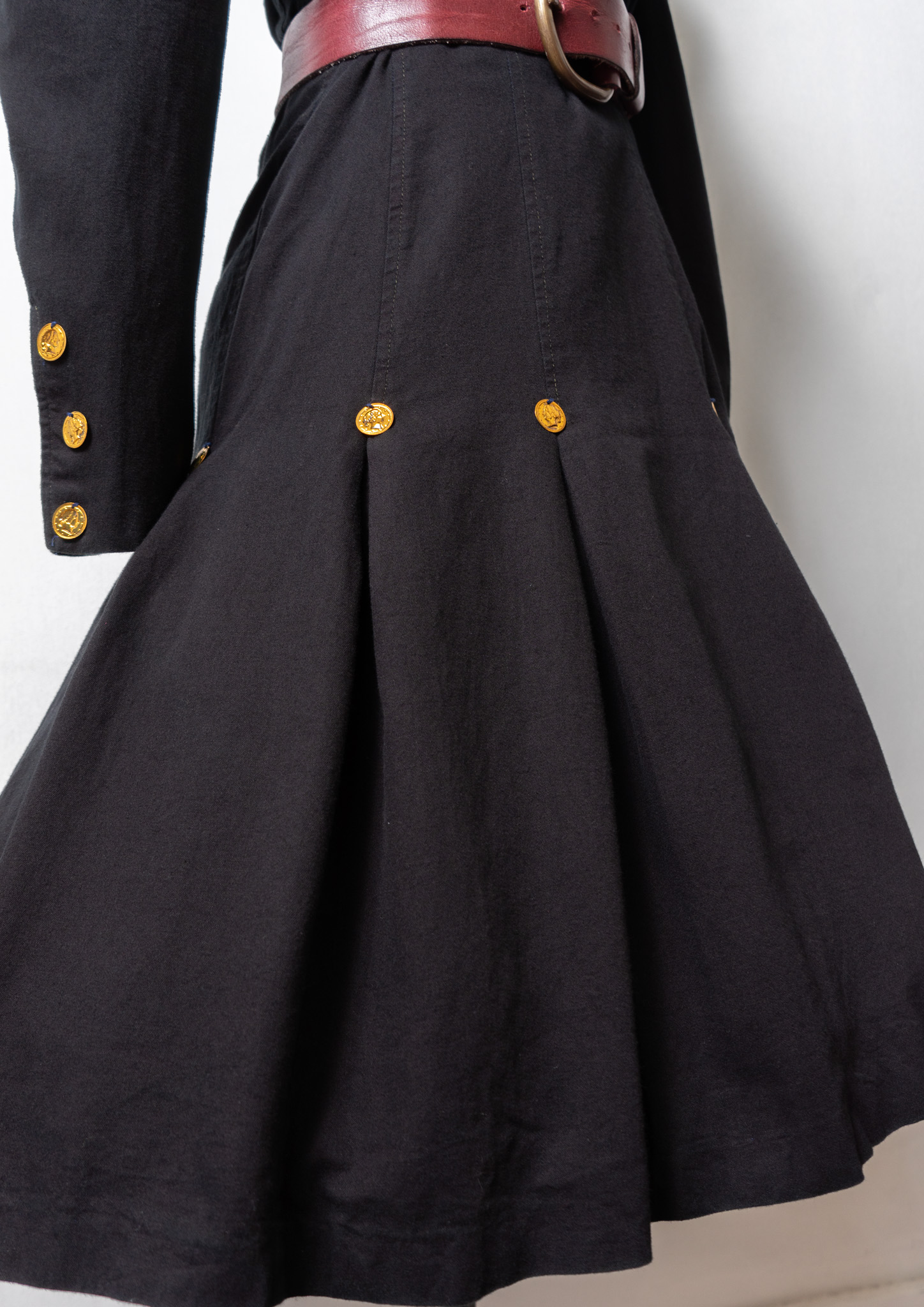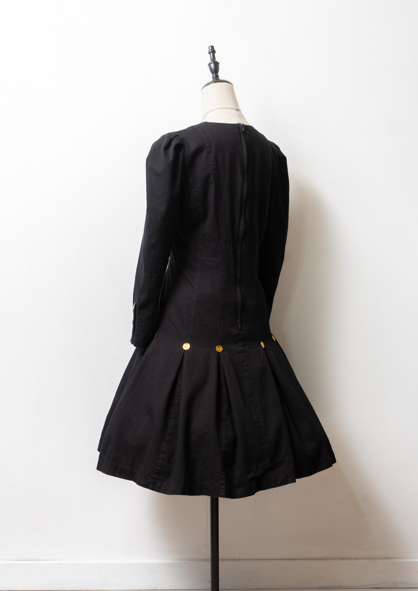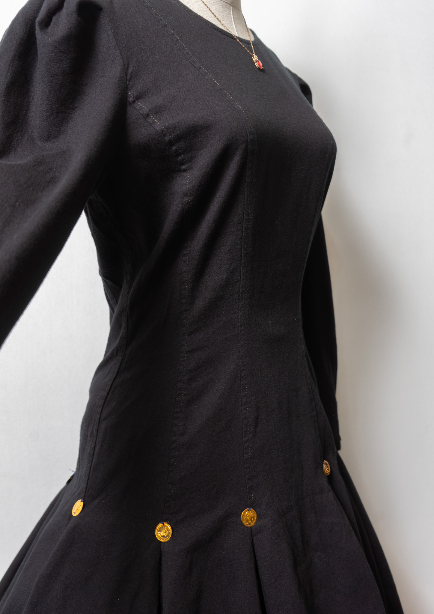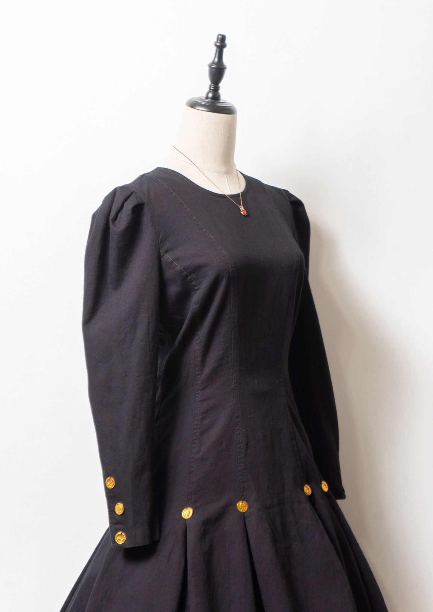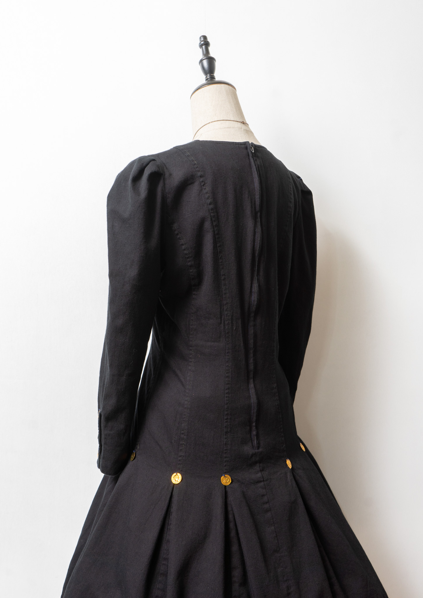 80's UK Laura Ashley Low Waist Design Flower Pattern Navy Corduroy Dress