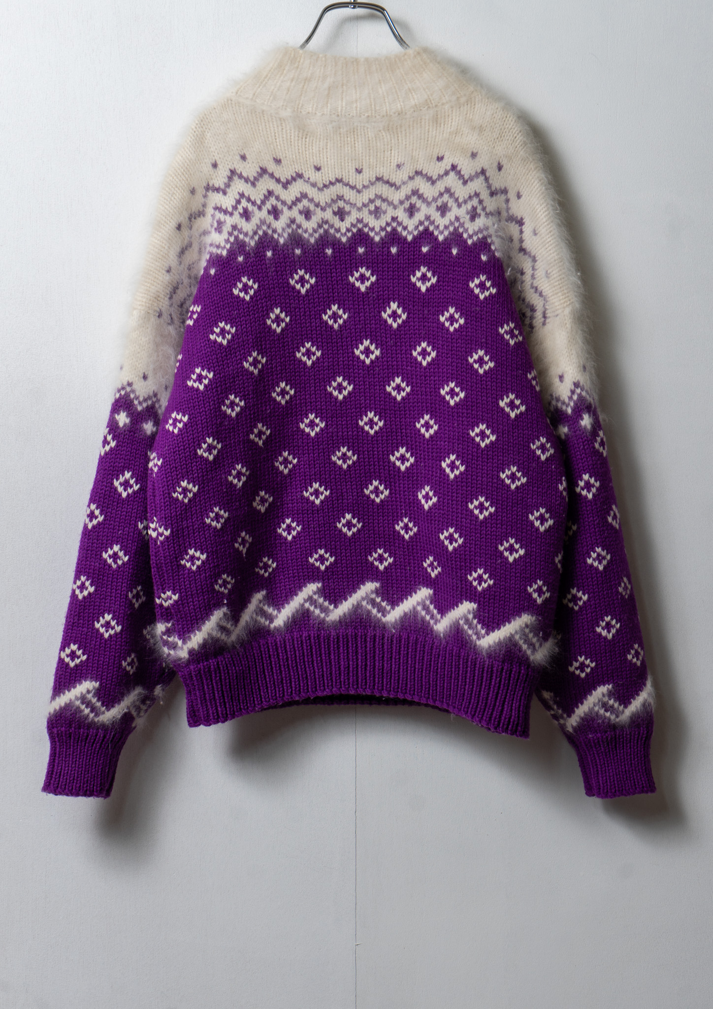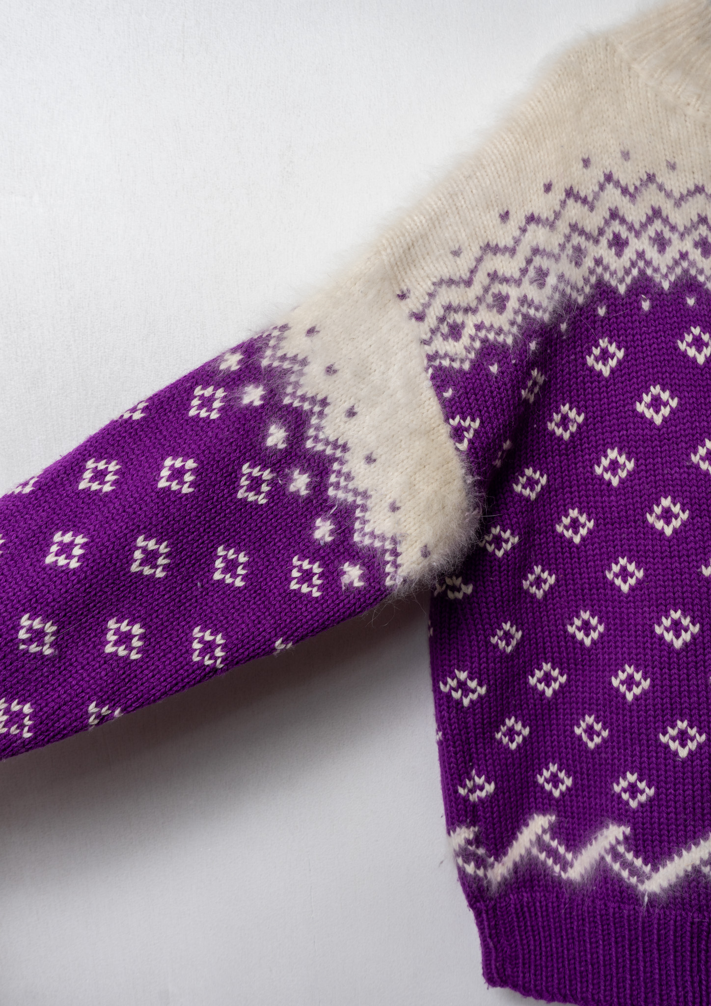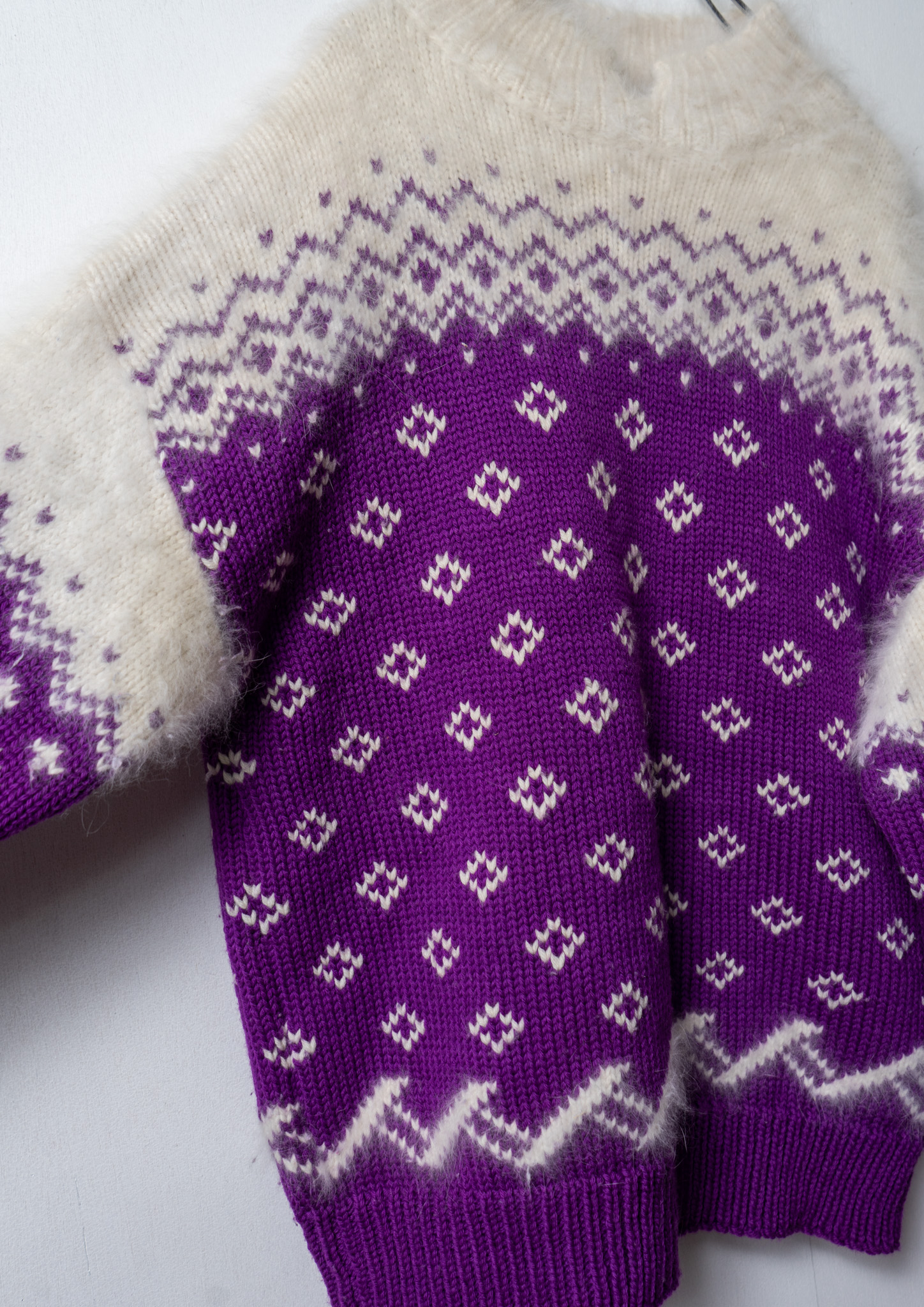 80's USA Diamond Pattern Purple Wool Knit Sweater