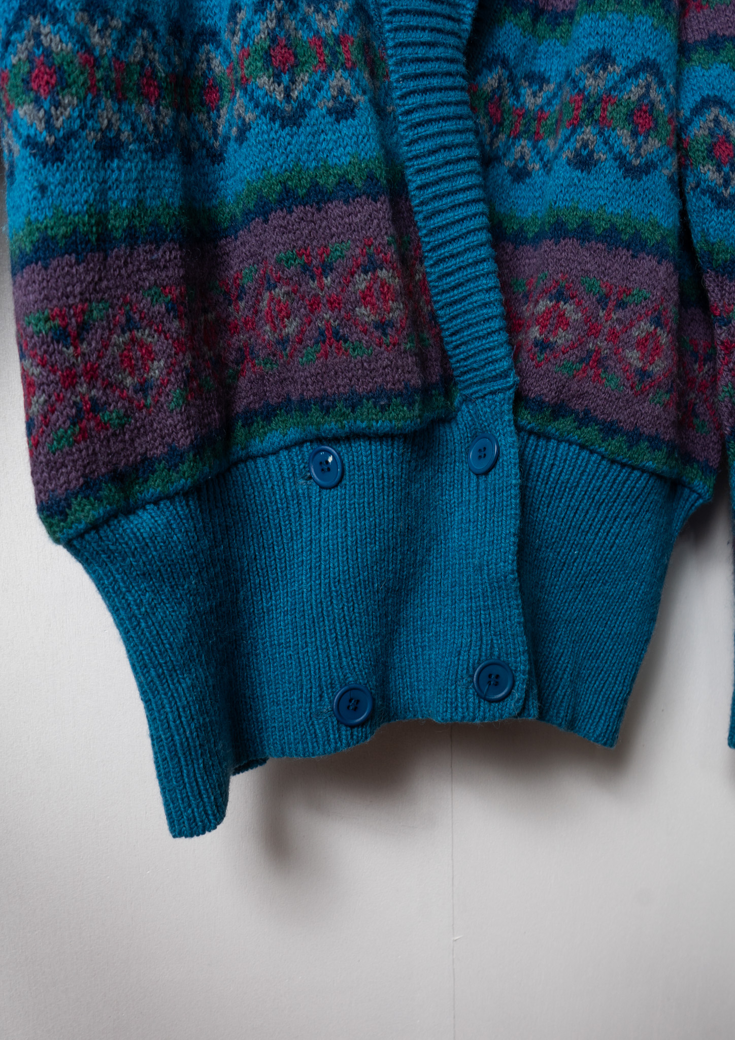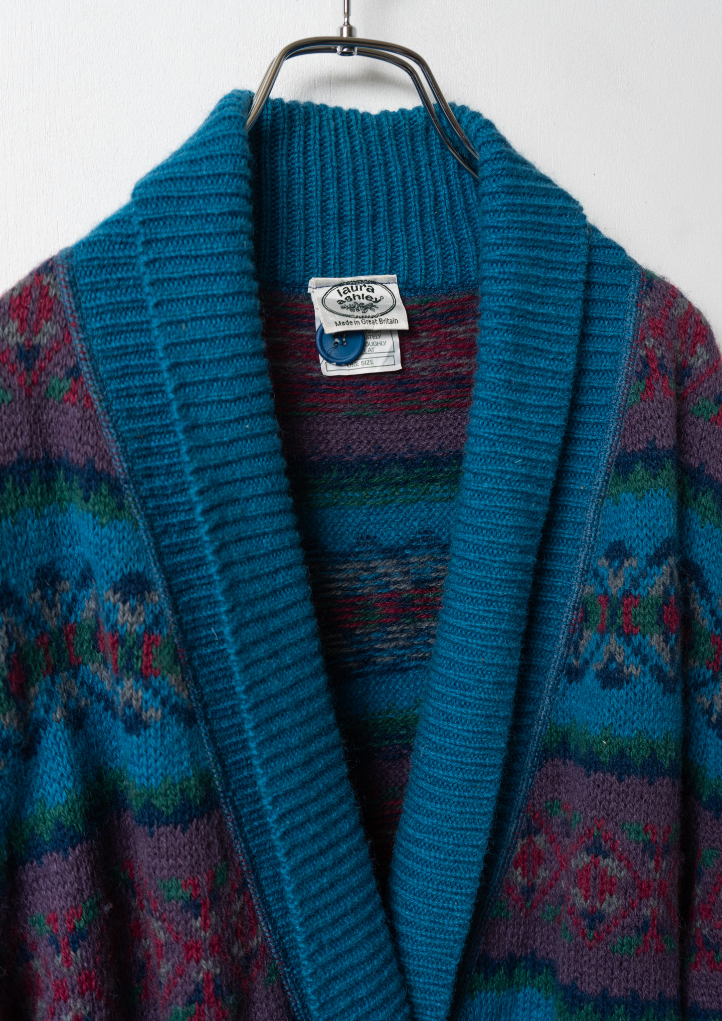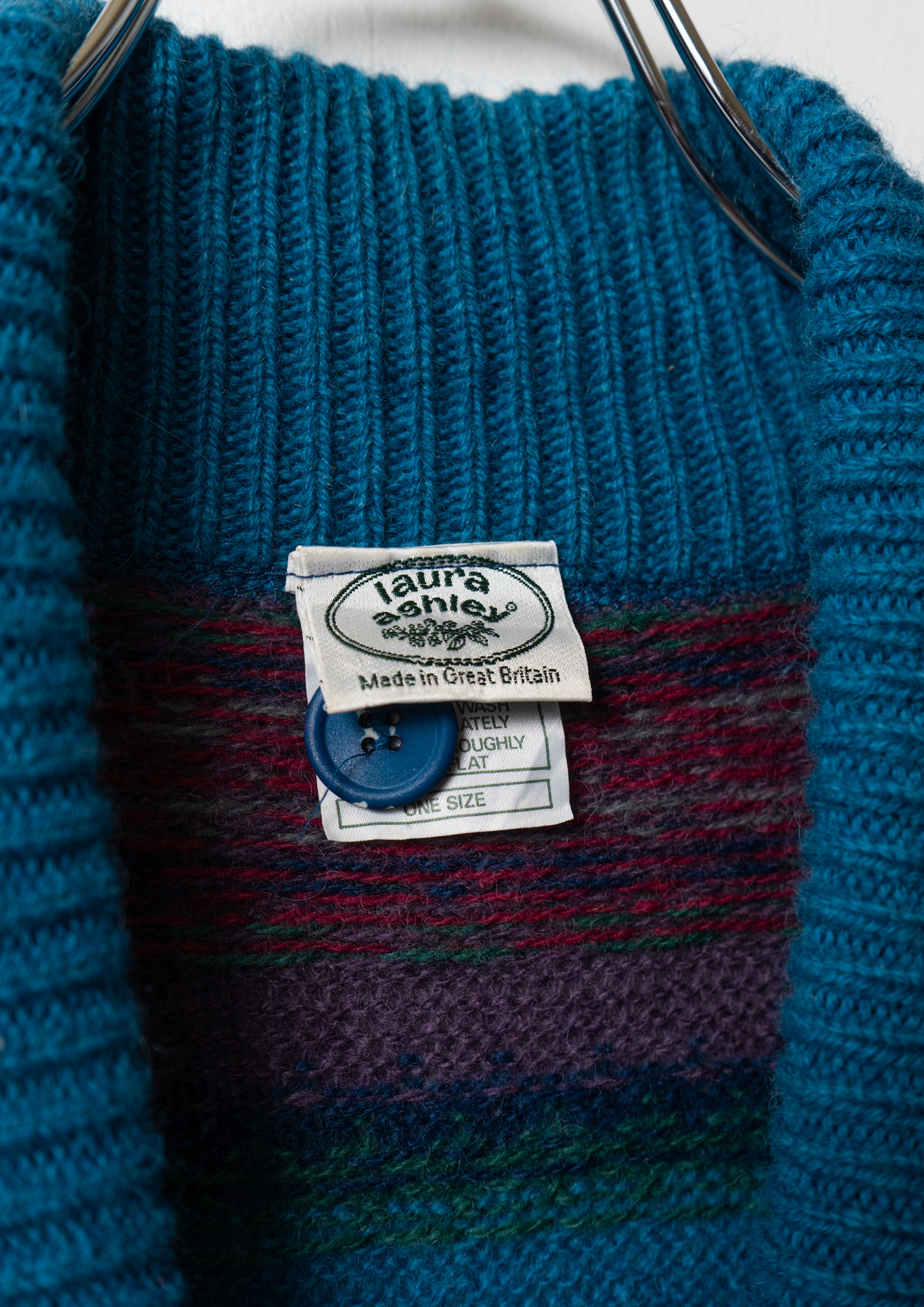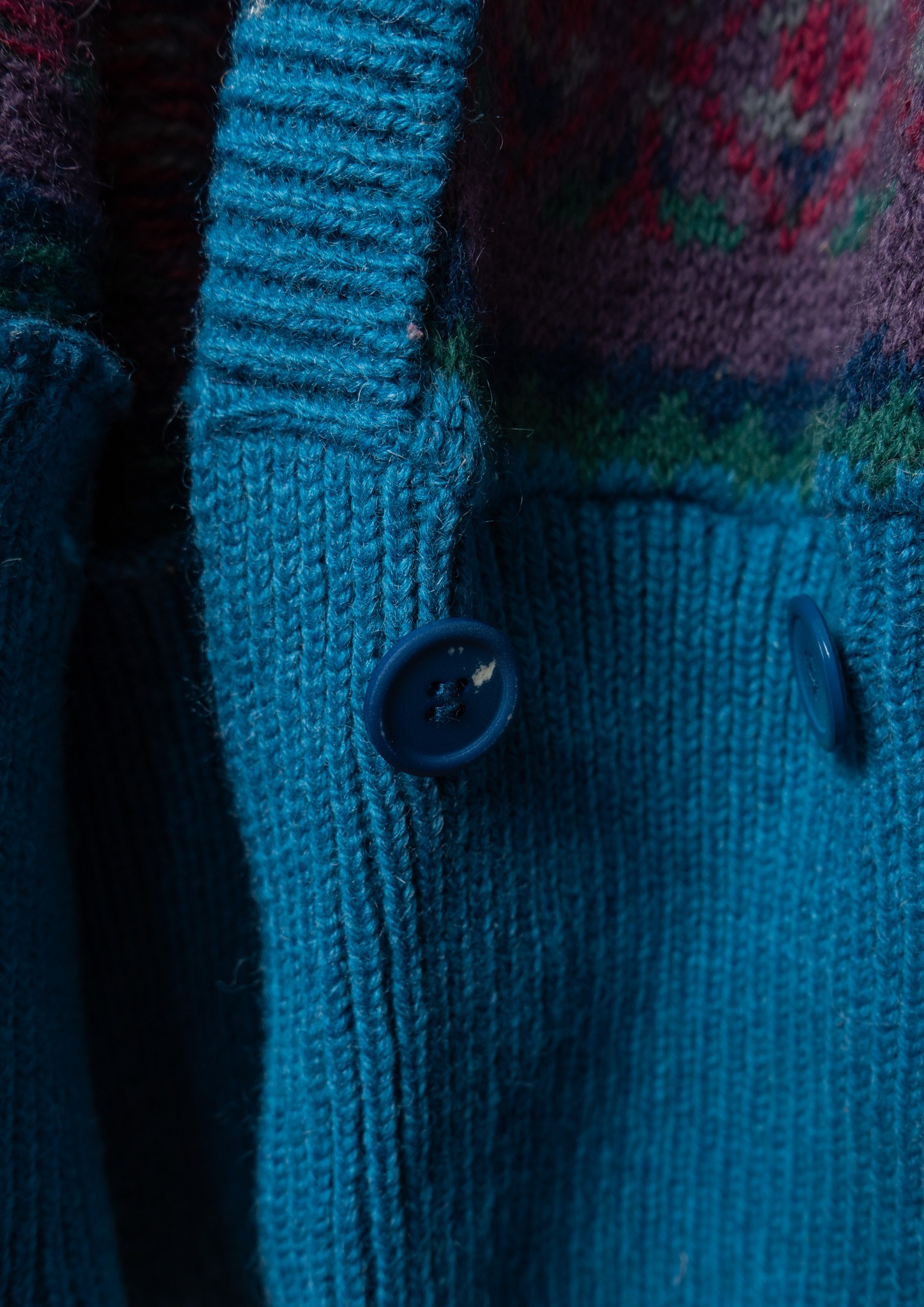 80's Laura Ashley Native Like Pattern Double Button Light Blue Knit Sweater