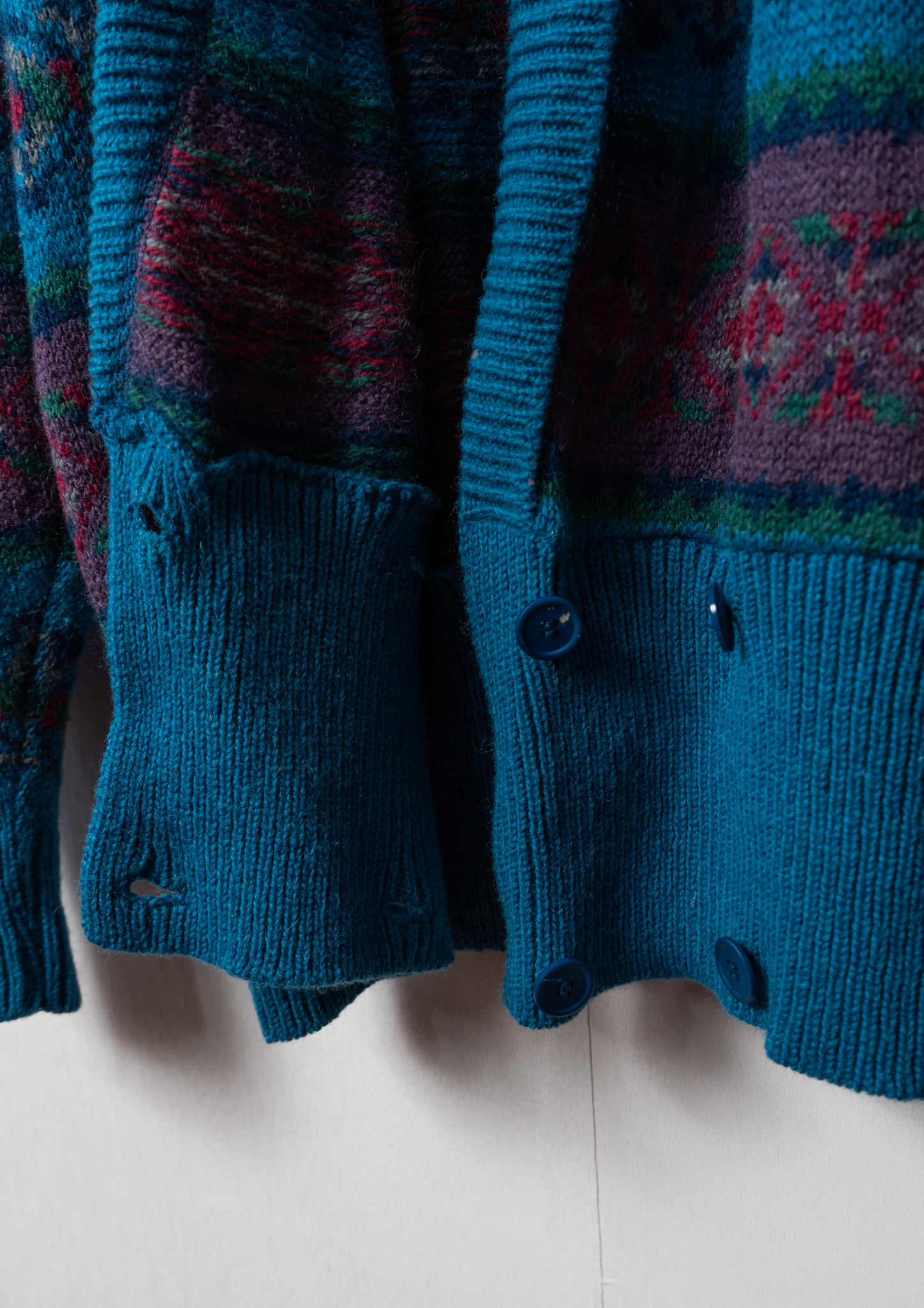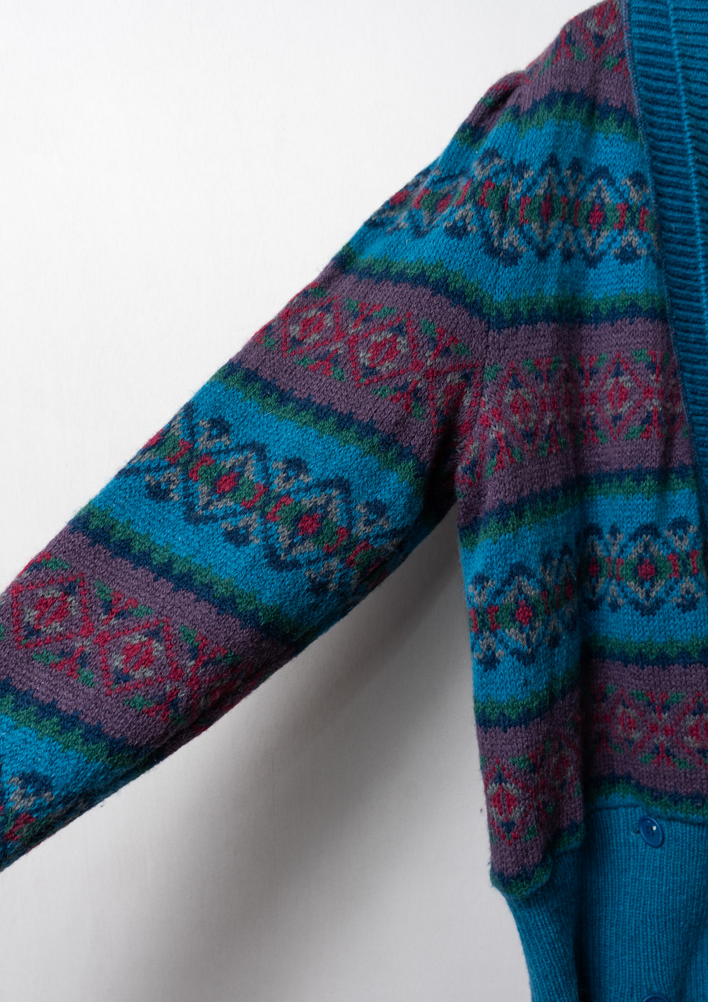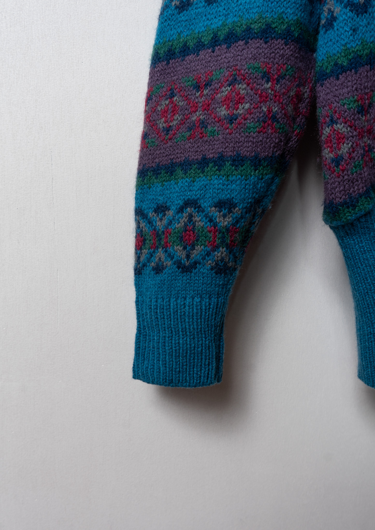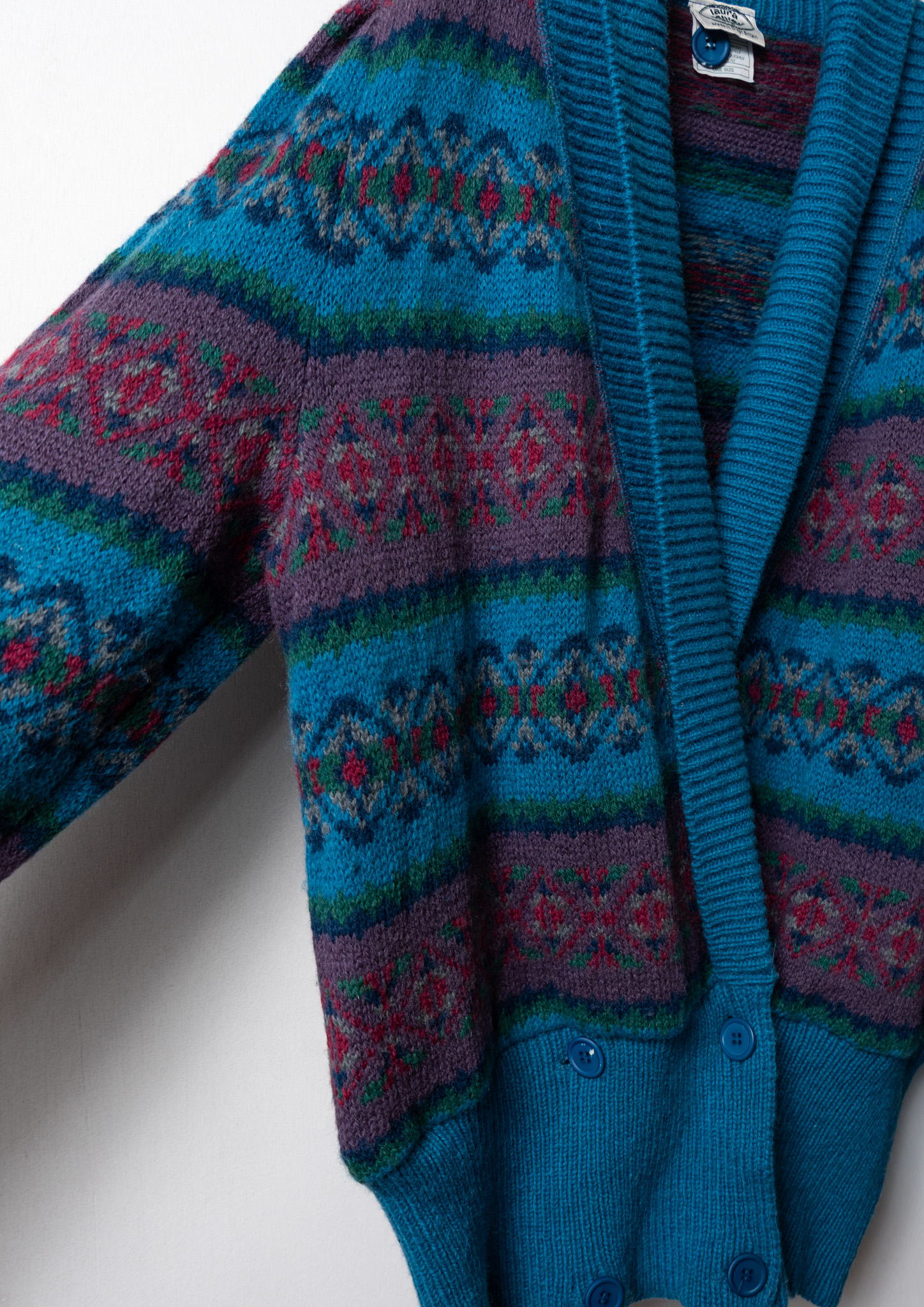 80's Laura Ashley Native Like Pattern Double Button Light Blue Knit Sweater